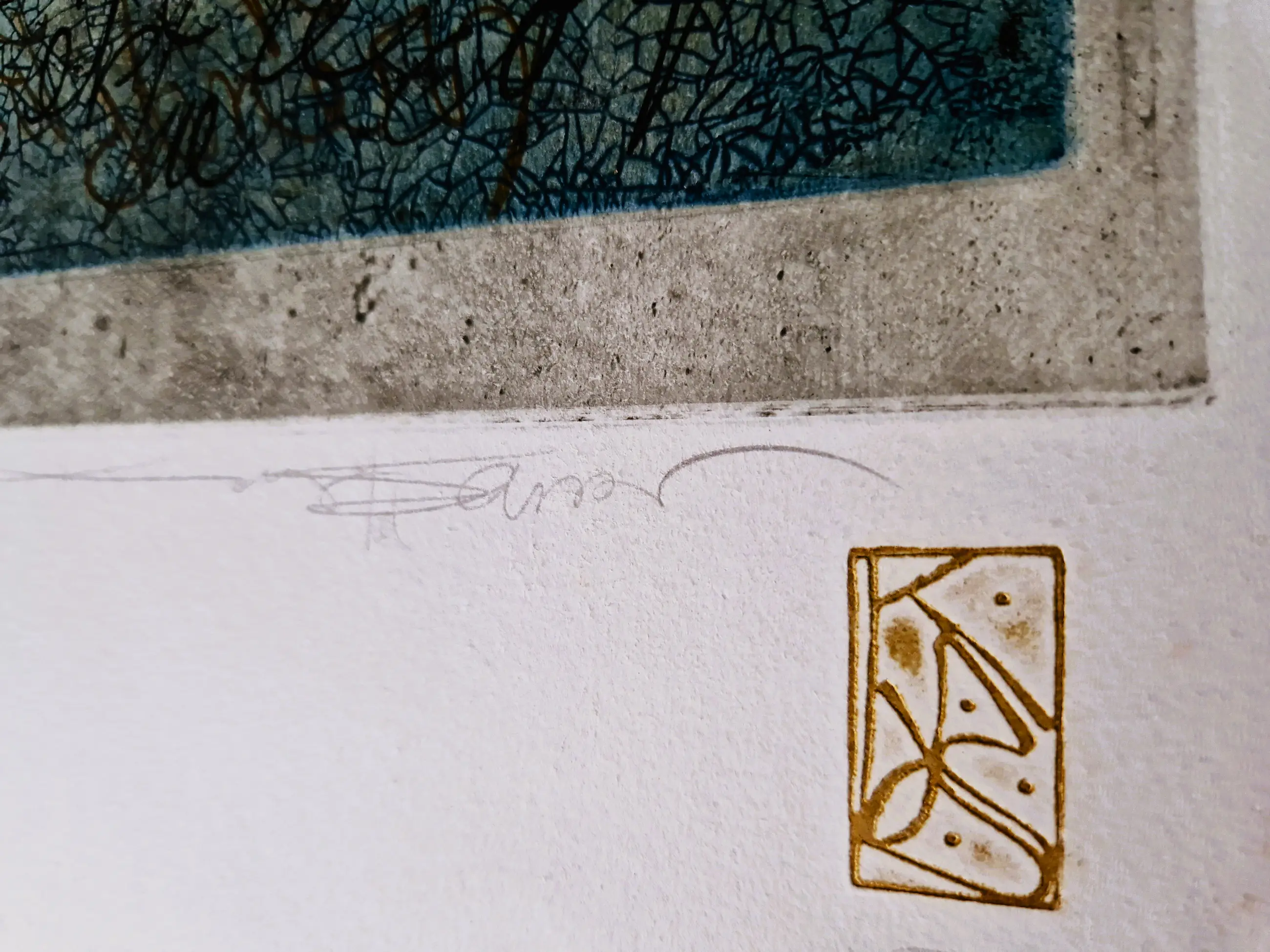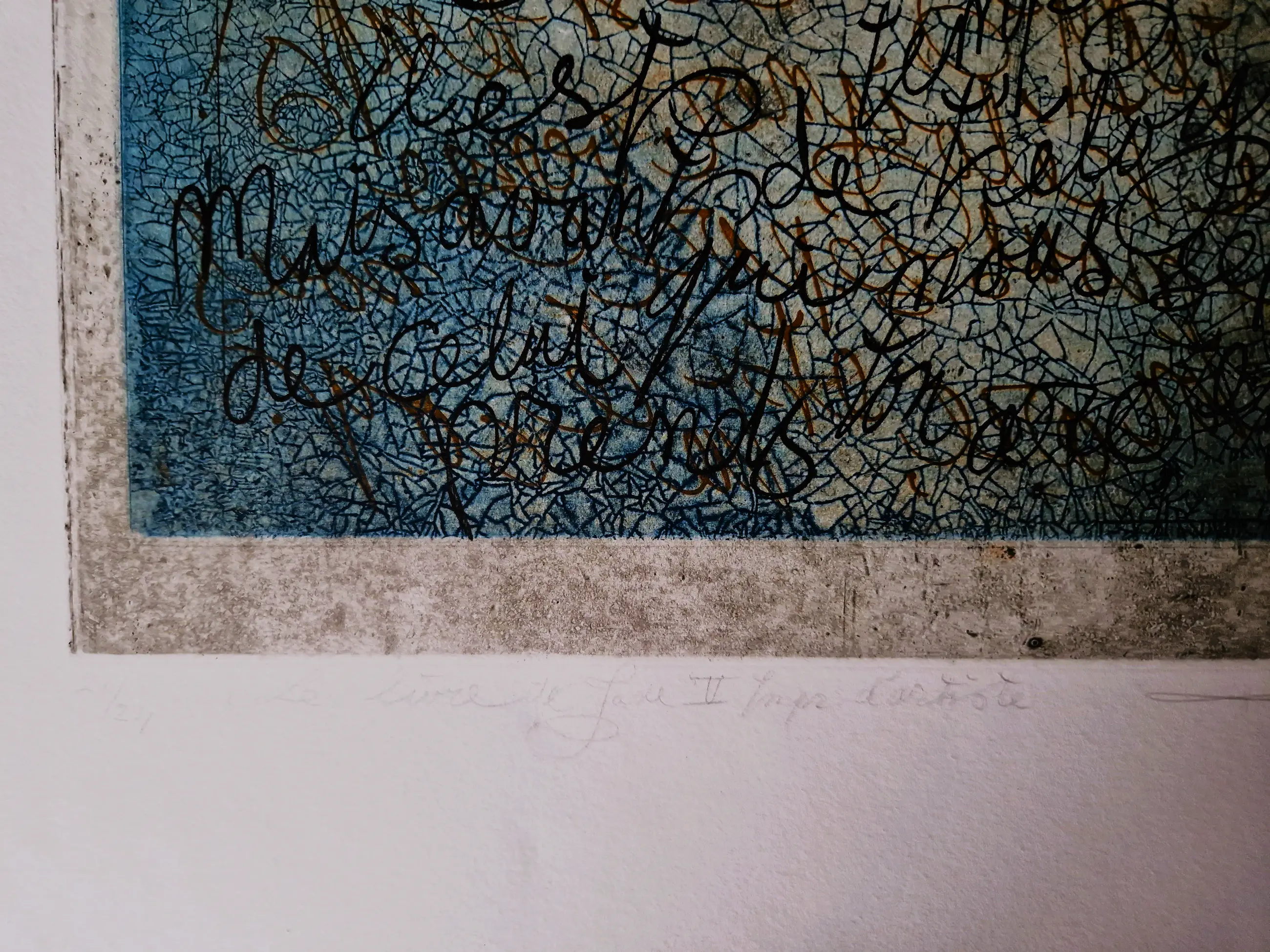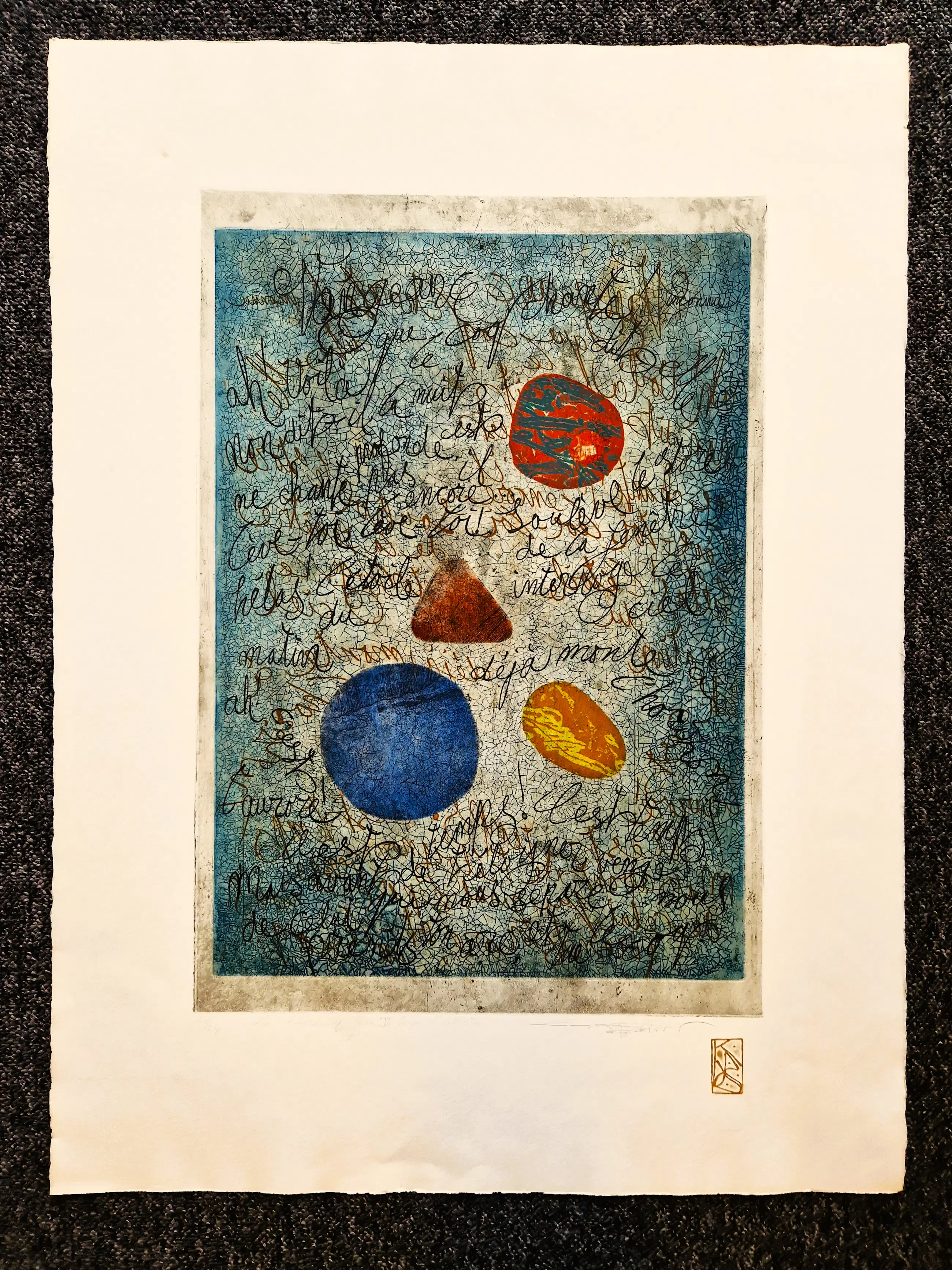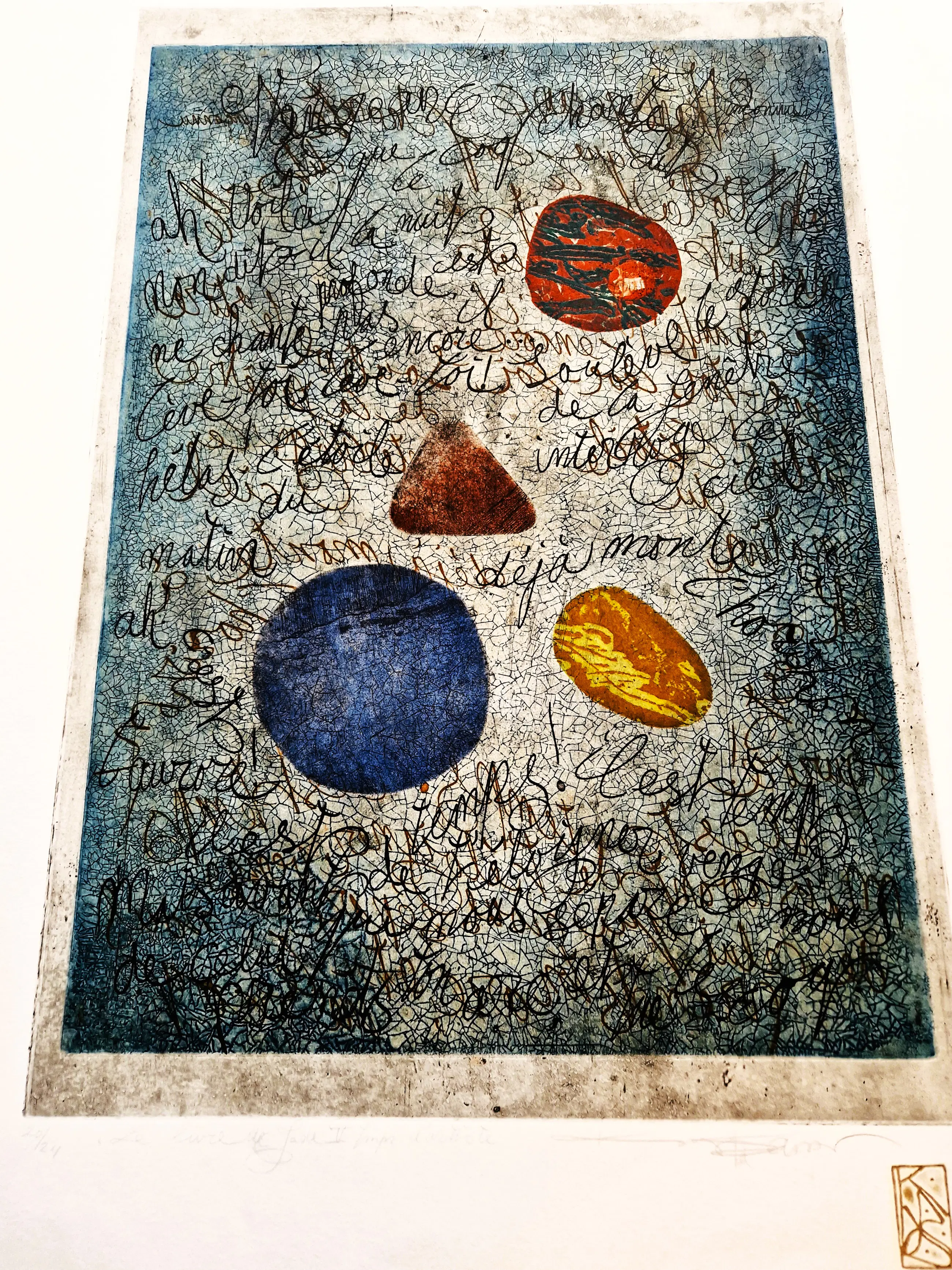 - Grote en in zeer kleine oplage (20/24) door marion Bloem gemaakte Ets & Aquatint "le livre de Jade V". een in zeer goede conditie verkerend "impr. d'Artiste" exemplaar, zowel met potlood als met goudstift (monogram) gesigneerd. Beeldmaat 55x38cm.