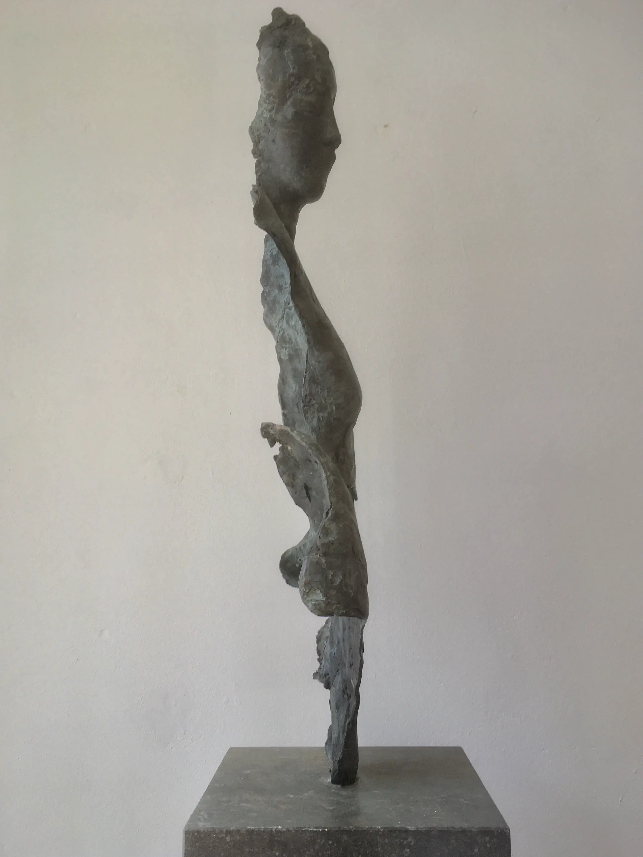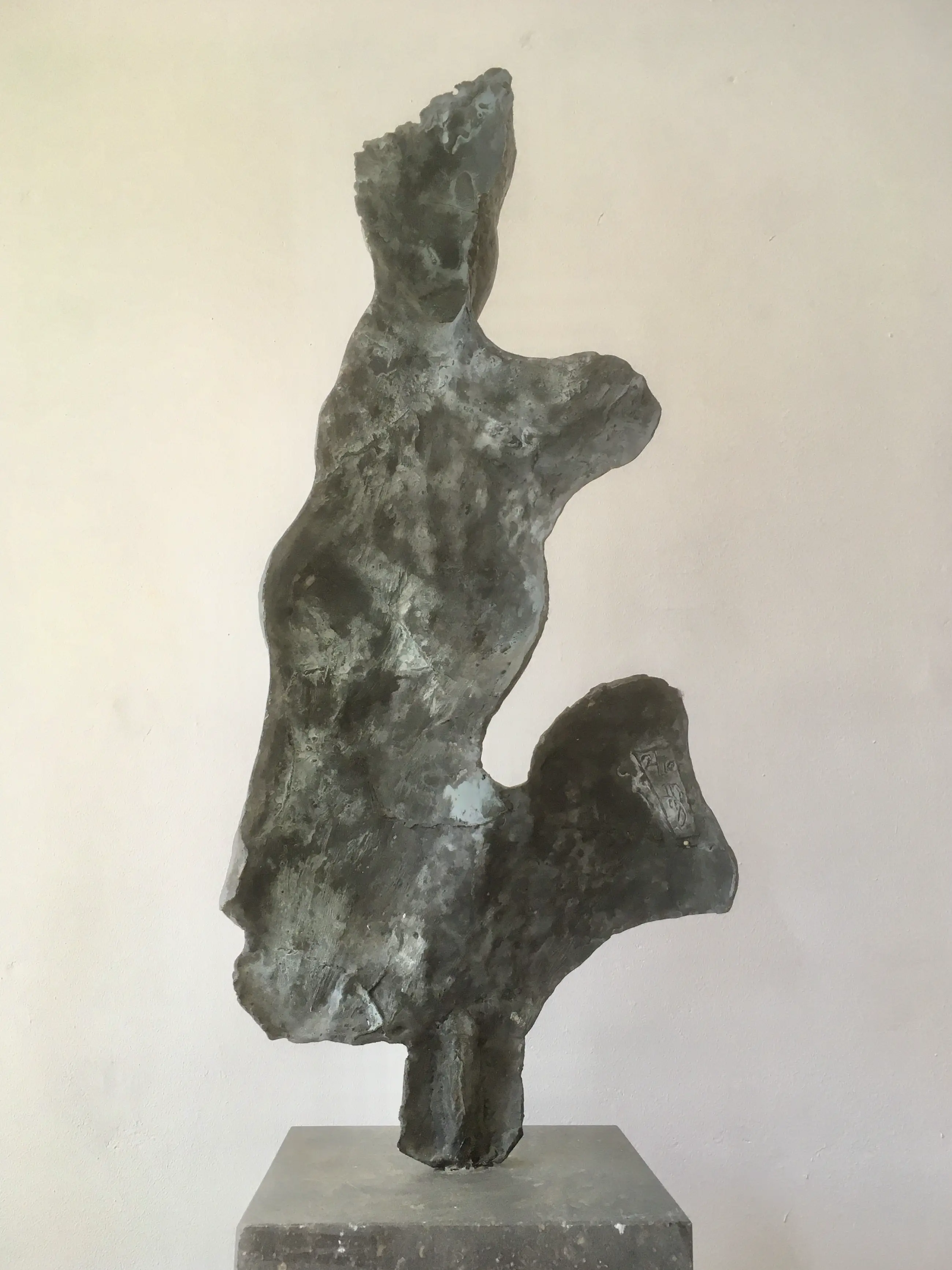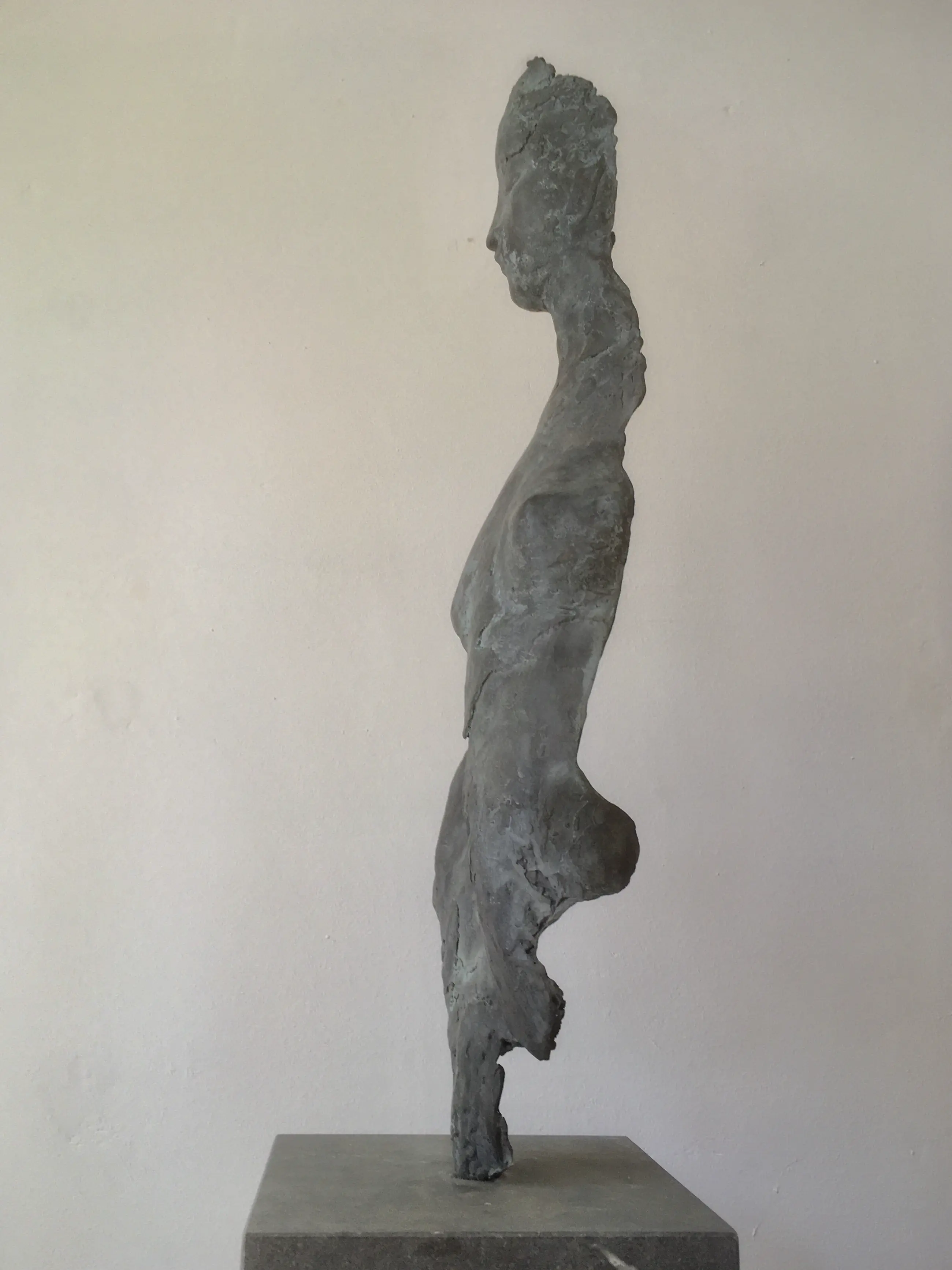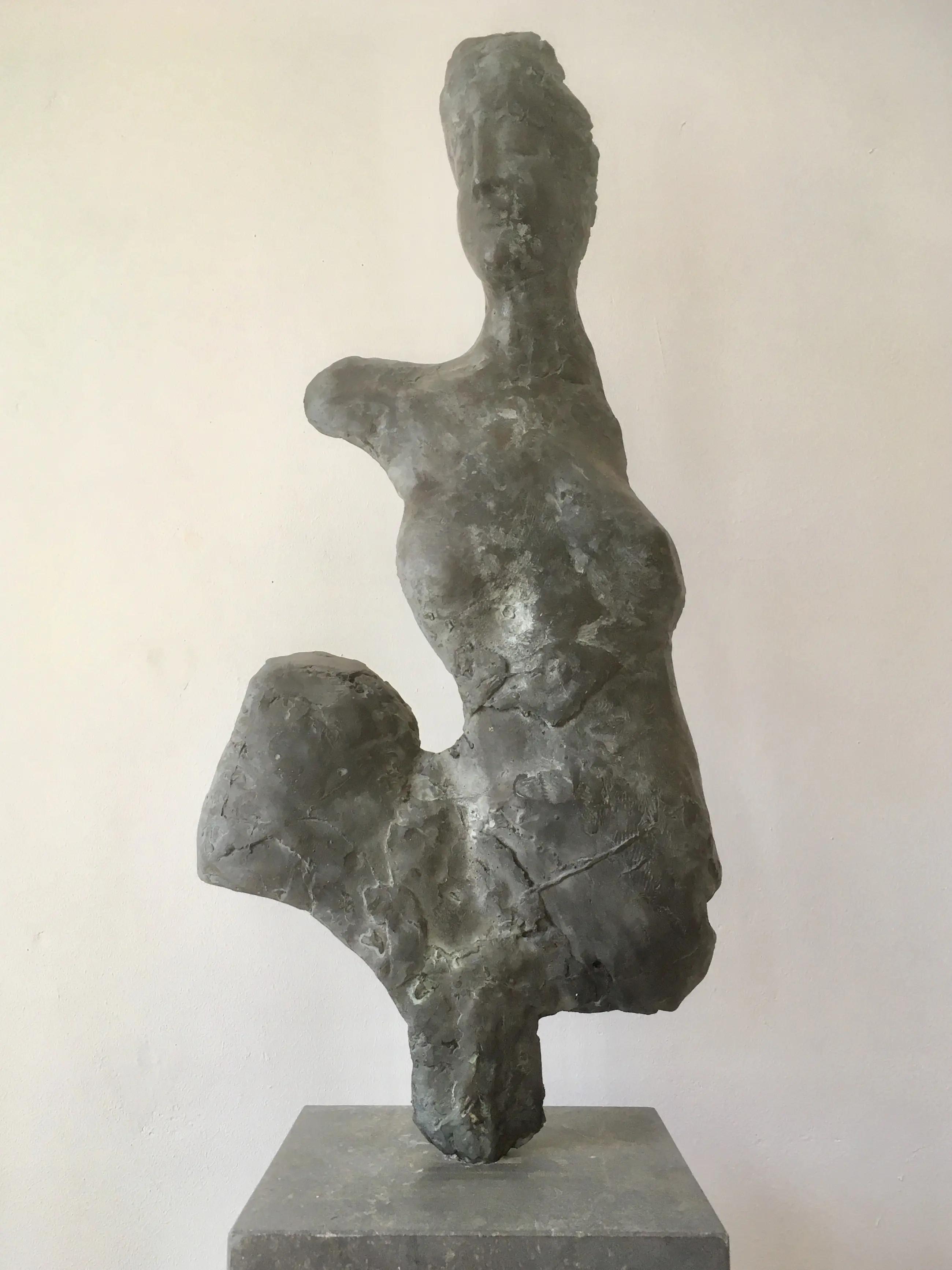 Bronzen sculptuur, gesigneerd, 2/10, in goede staat. Op Belgisch hardstenen sokkel. Afmetingen sokkel: 20x20x5, enigszins beschadigd