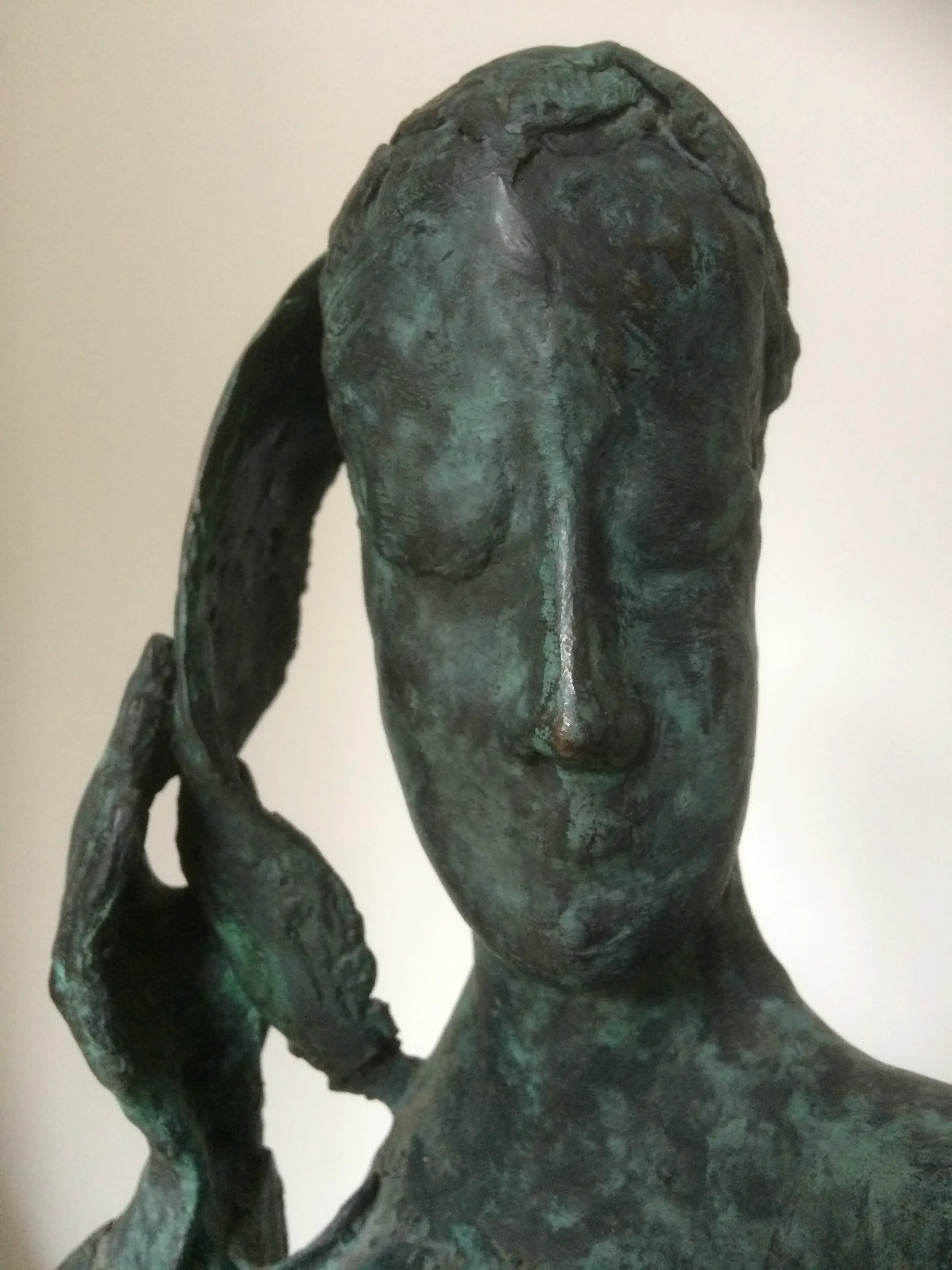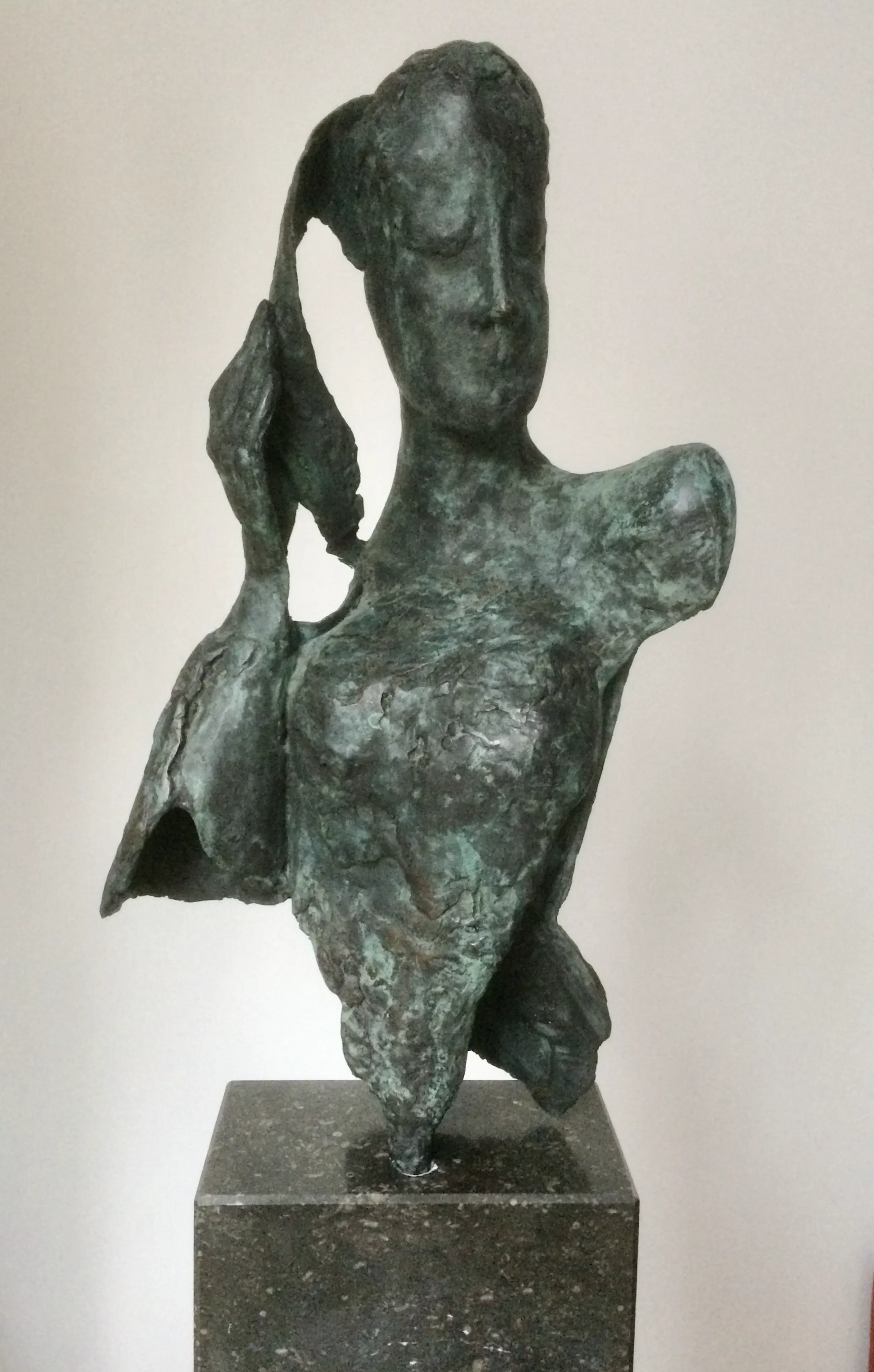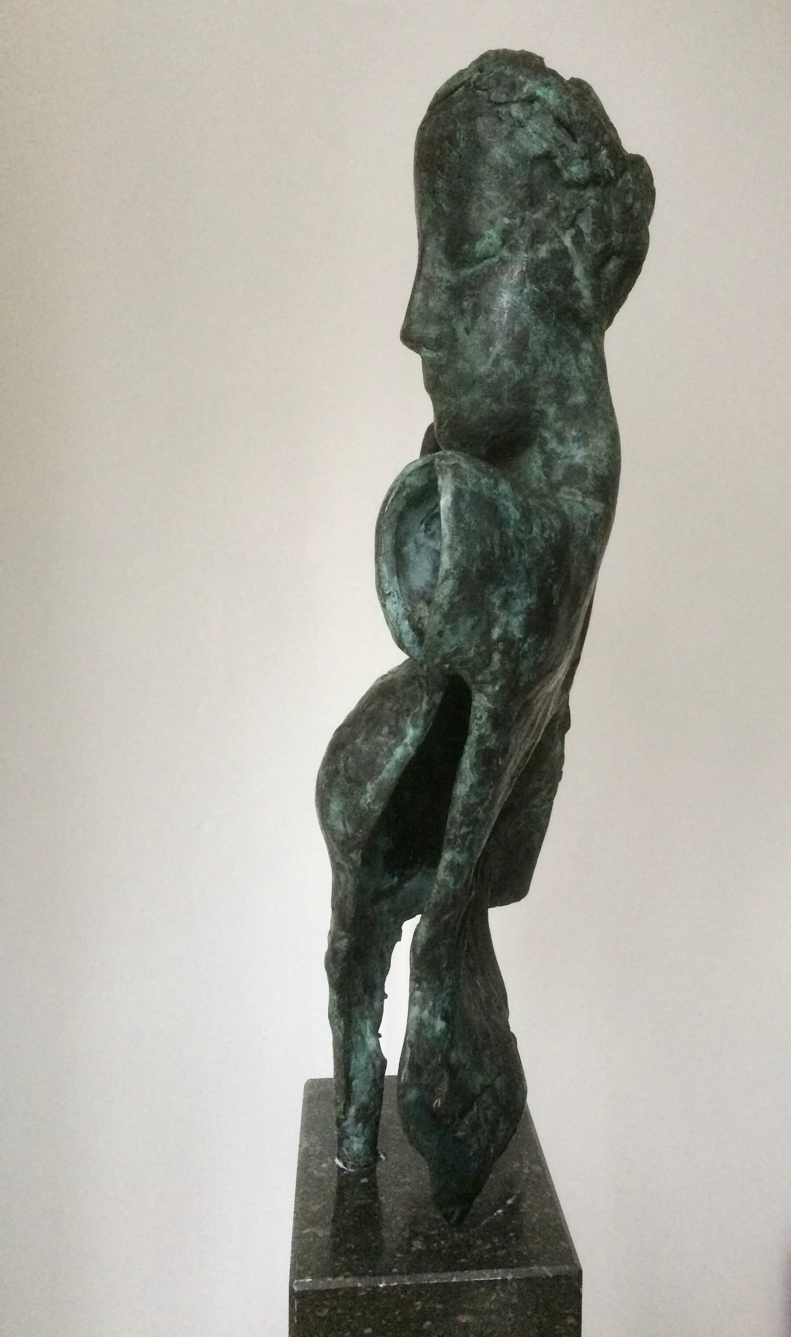 Vroeg werk van Marion Visione in brons in zeer goede staat, gesigneerd, oplagenummer 2/12. Hoogte inclusief sokkel in Belgisch hardsteen 61 cm. Maten van de sokkel: hoogte 18 cm, breedte 16 cm en diepte 10 cm.