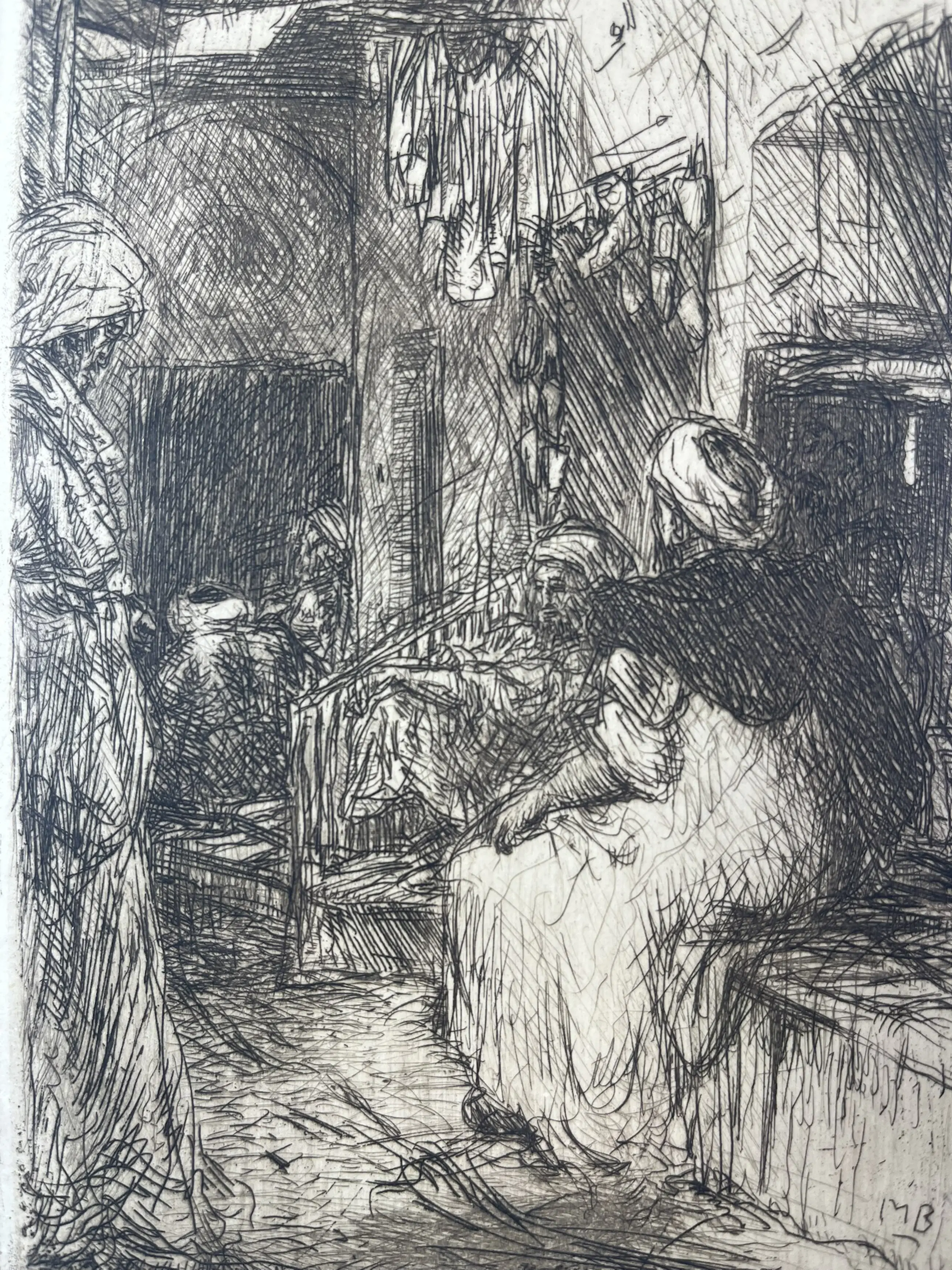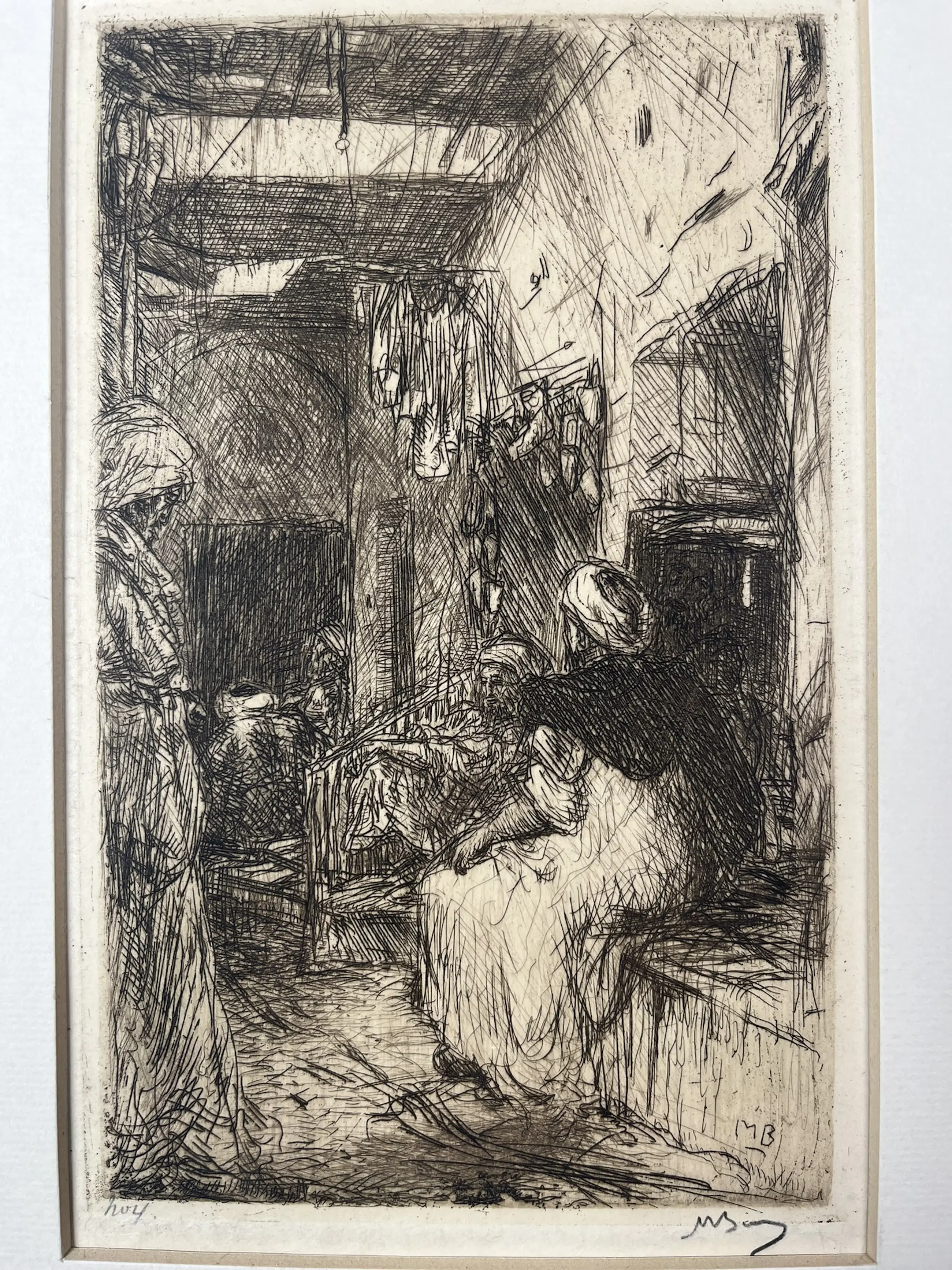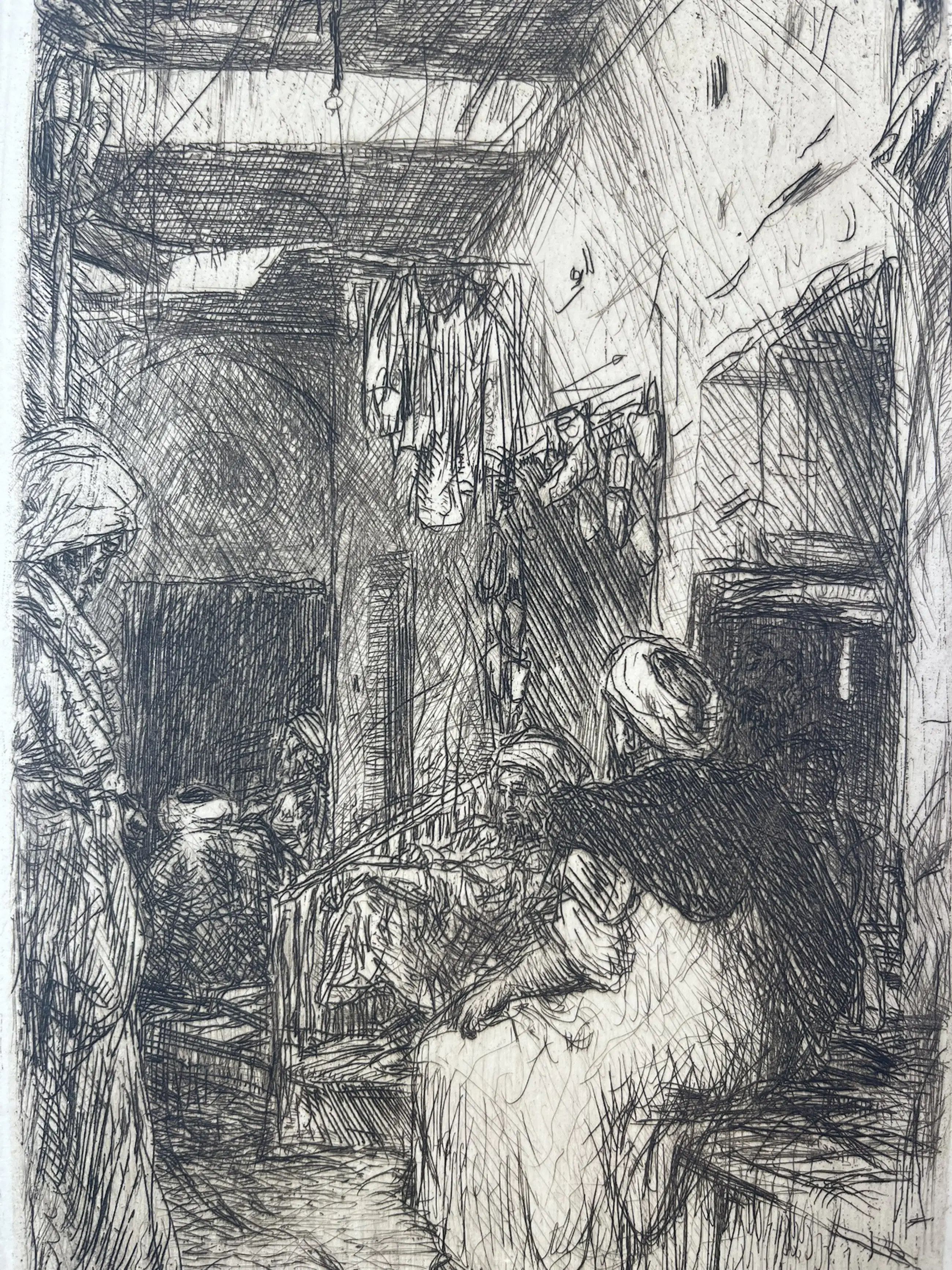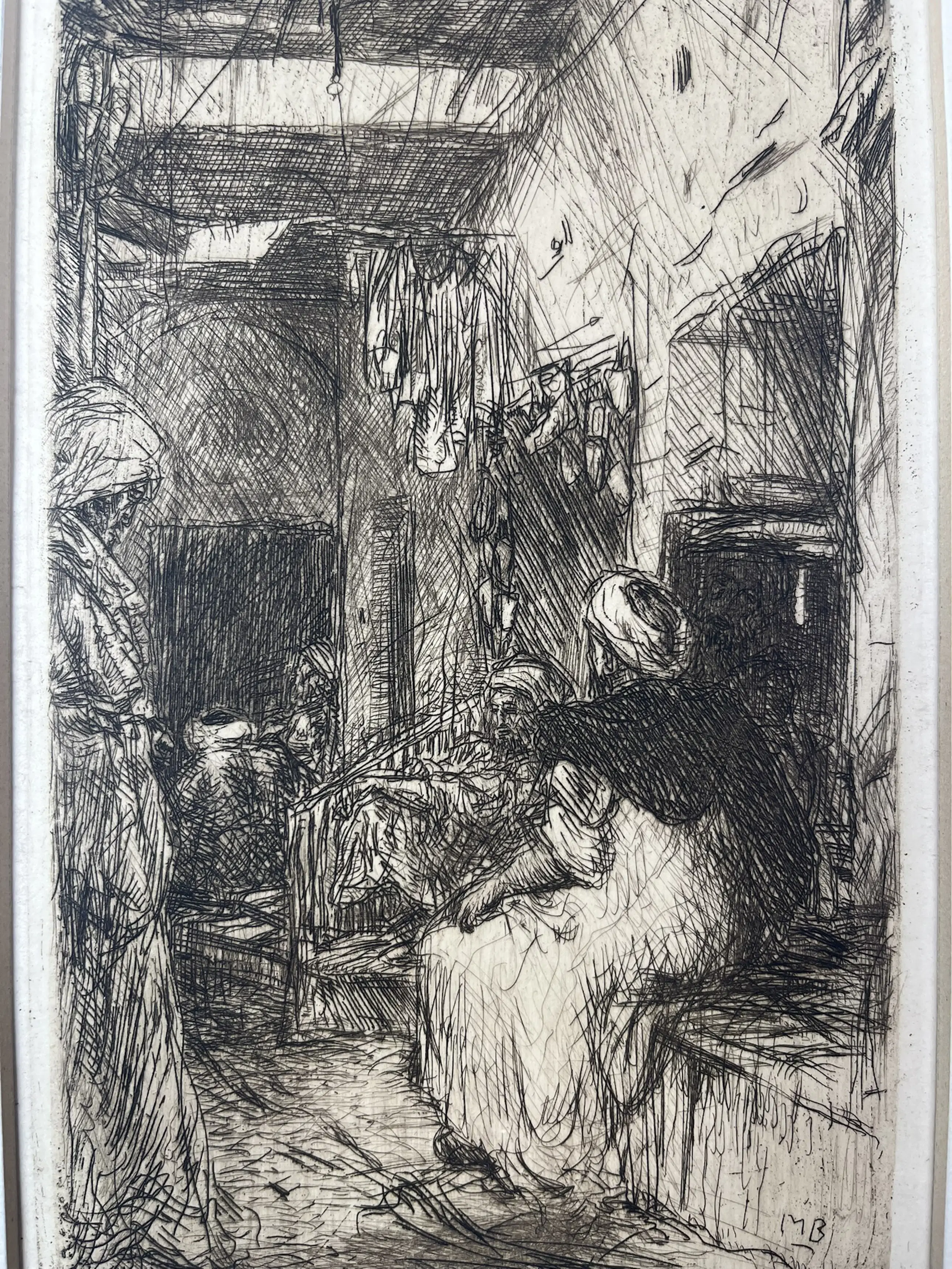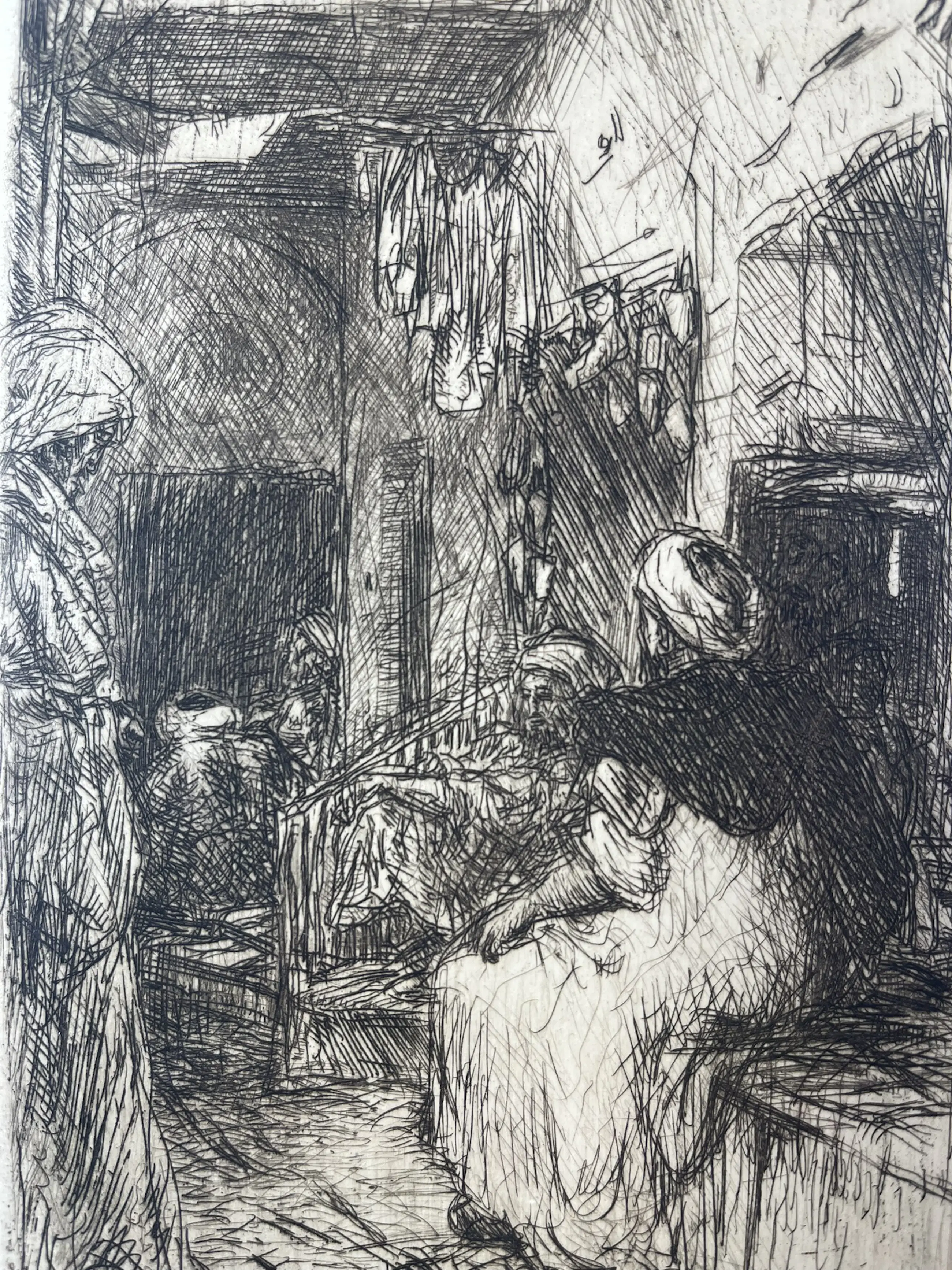 Zijn etsen tonen markten, moskeeën, karavanen en oosterse stadsgezichten vol licht en beweging.