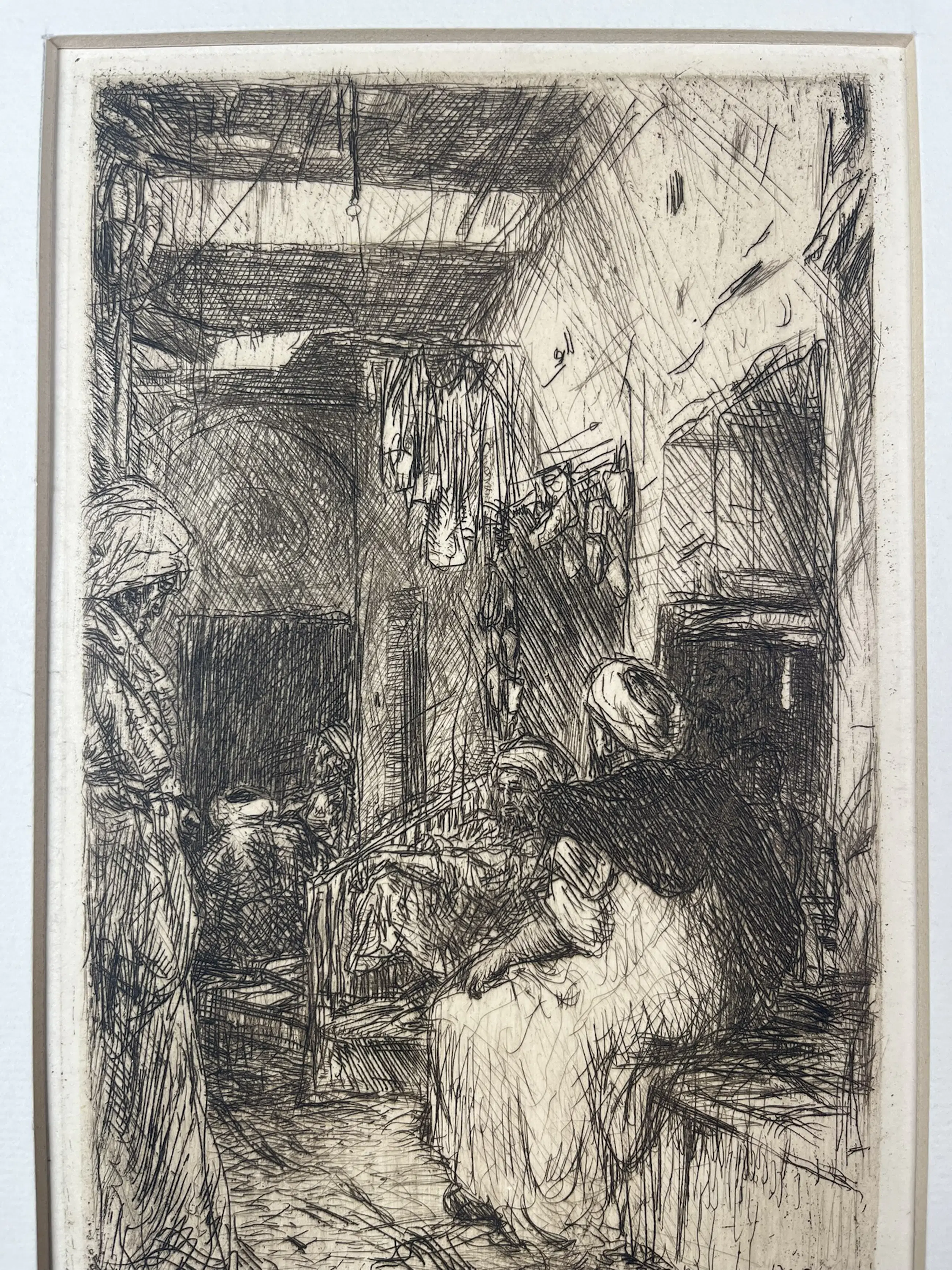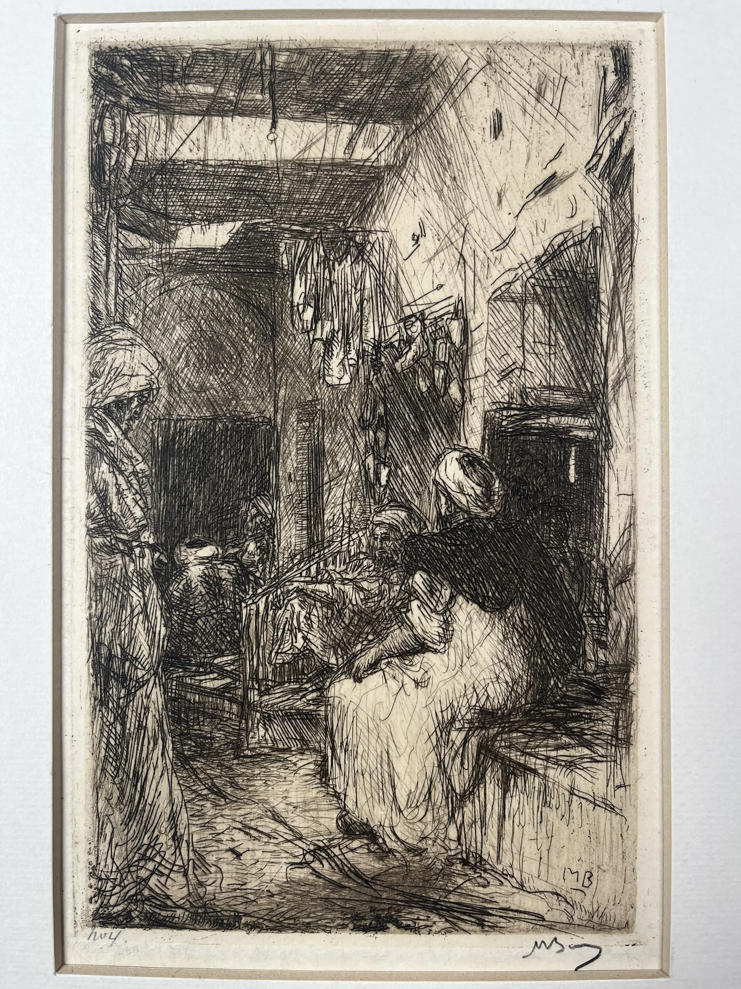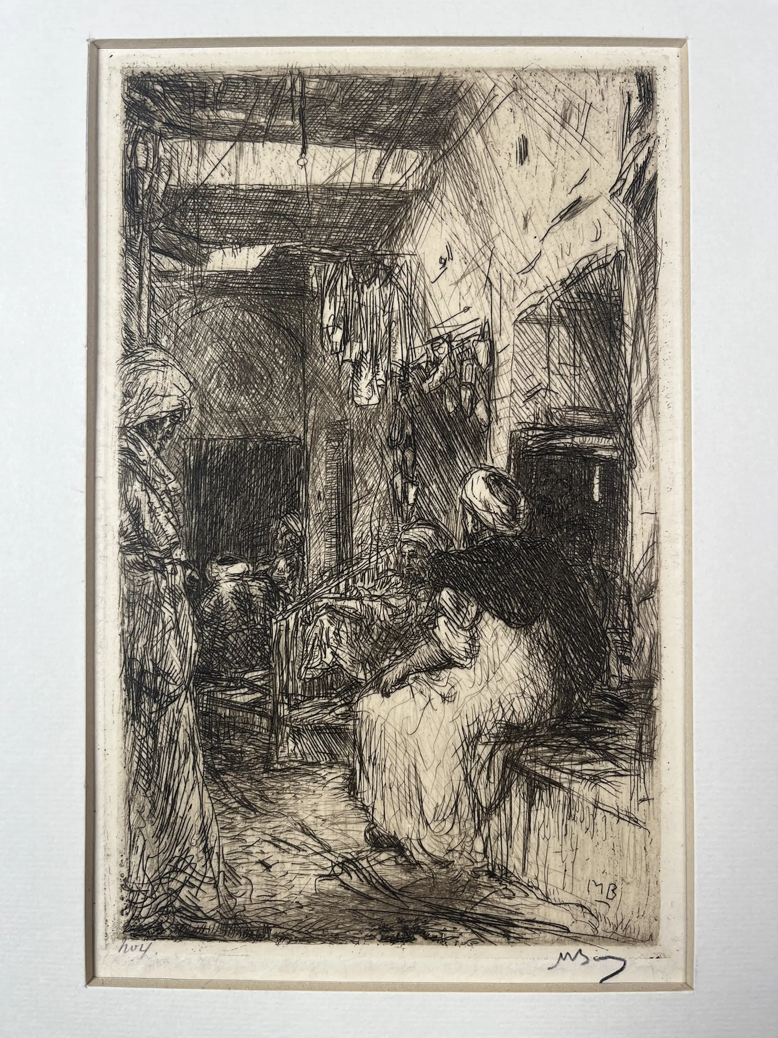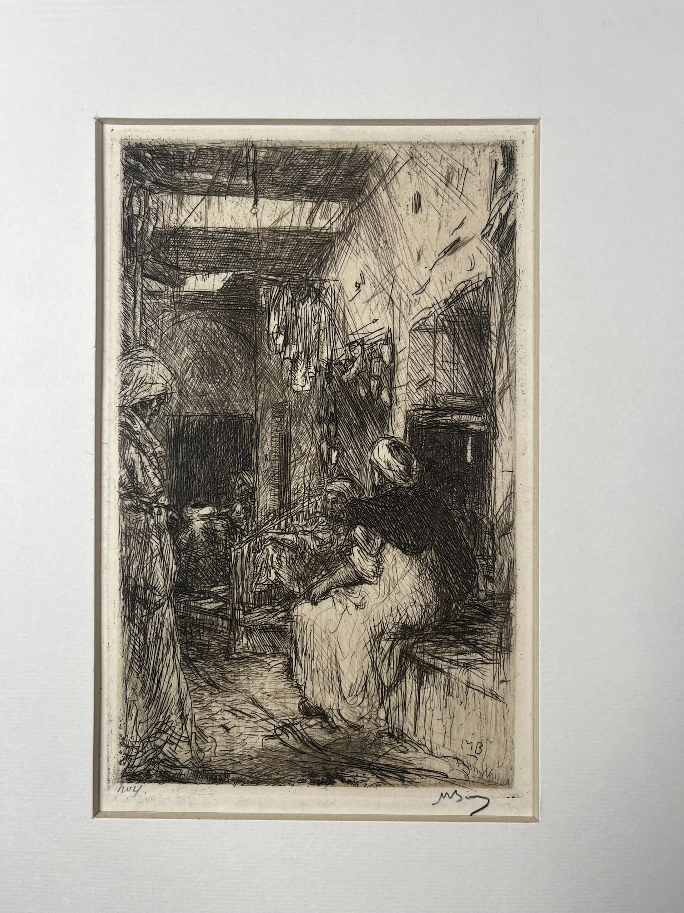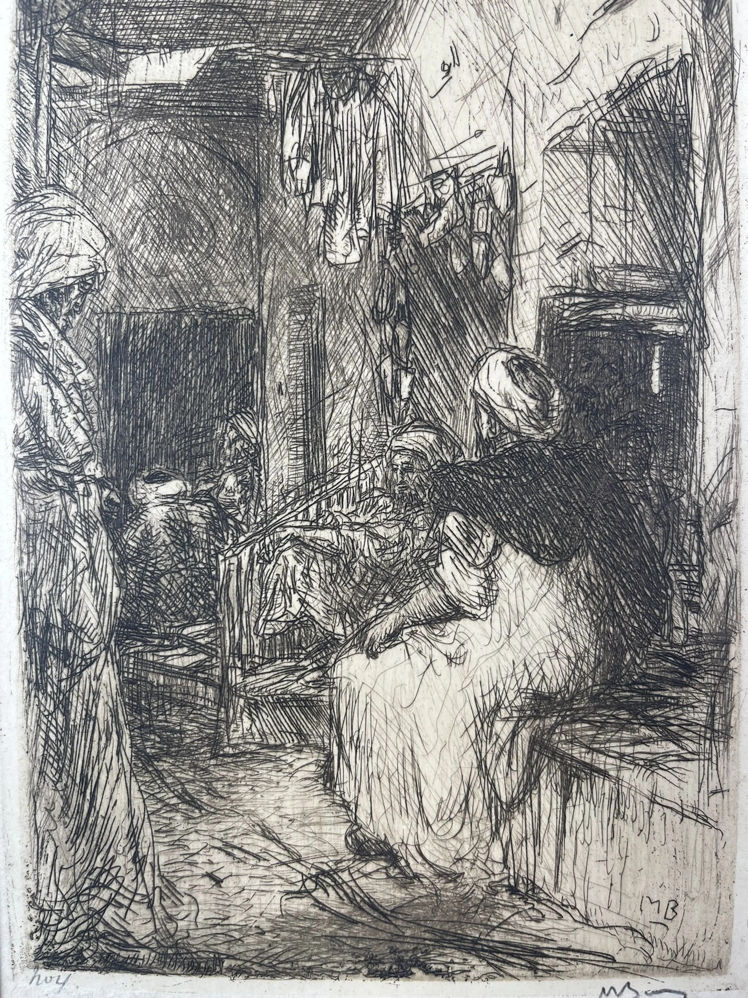 Zijn etsen tonen markten, moskeeën, karavanen en oosterse stadsgezichten vol licht en beweging.