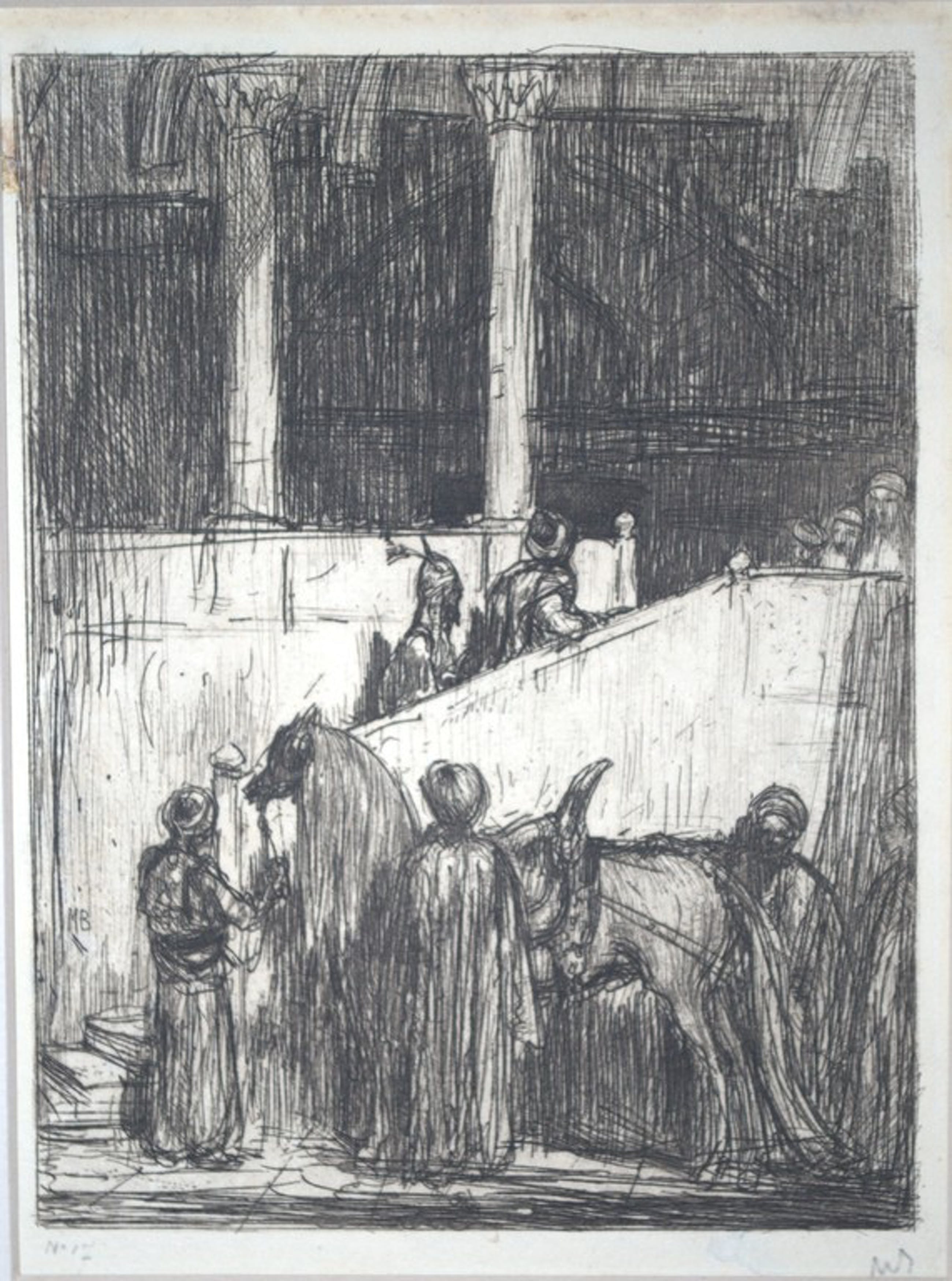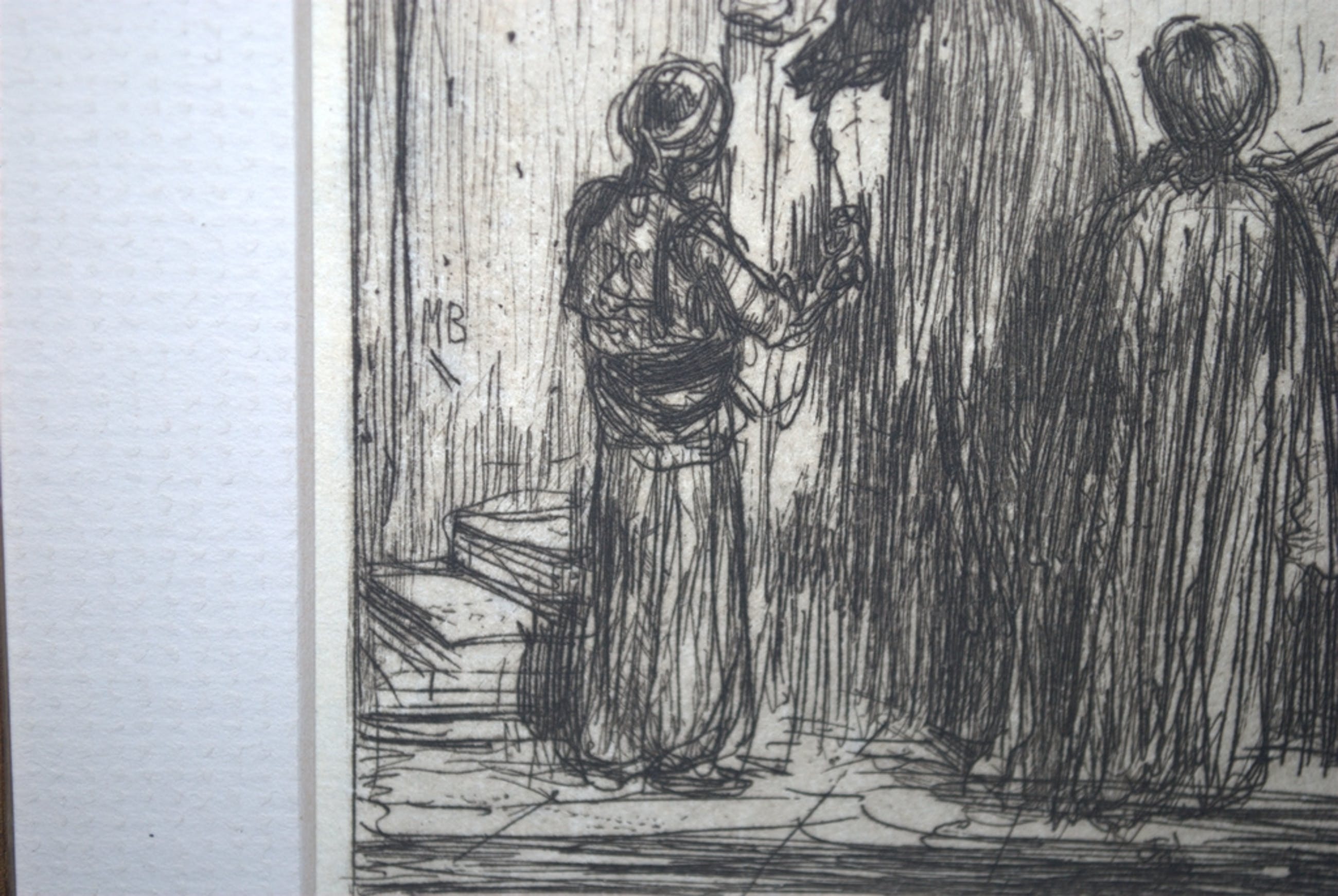 Monogram in potlood en genummerd 17 in potlood. Tevens initialen MB in de plaat linkerzijde.