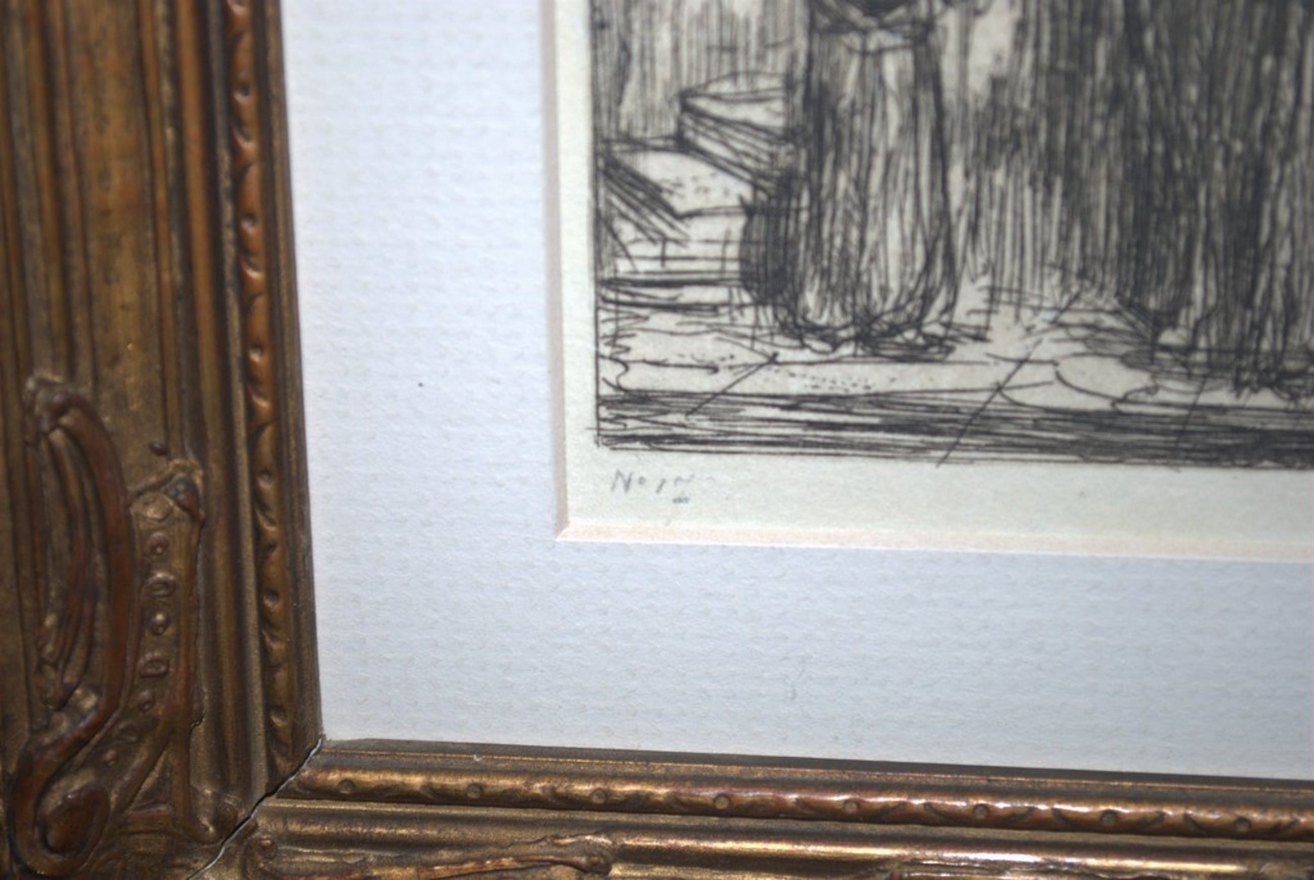 Afgezien van een licht vlekje linkerrand en een onopvallend scheurtje uiterste onderrand is de ets in perfecte conditie.