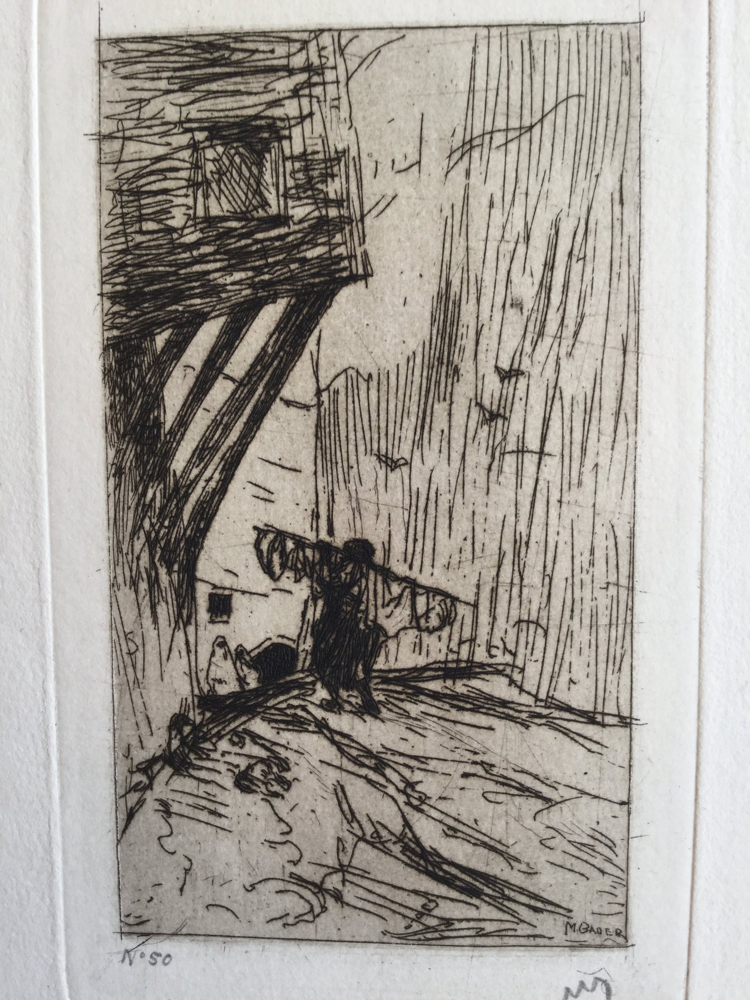 De ets is in goede staat. Aan de onderrand van het passe partout zijn wat vlekjes.