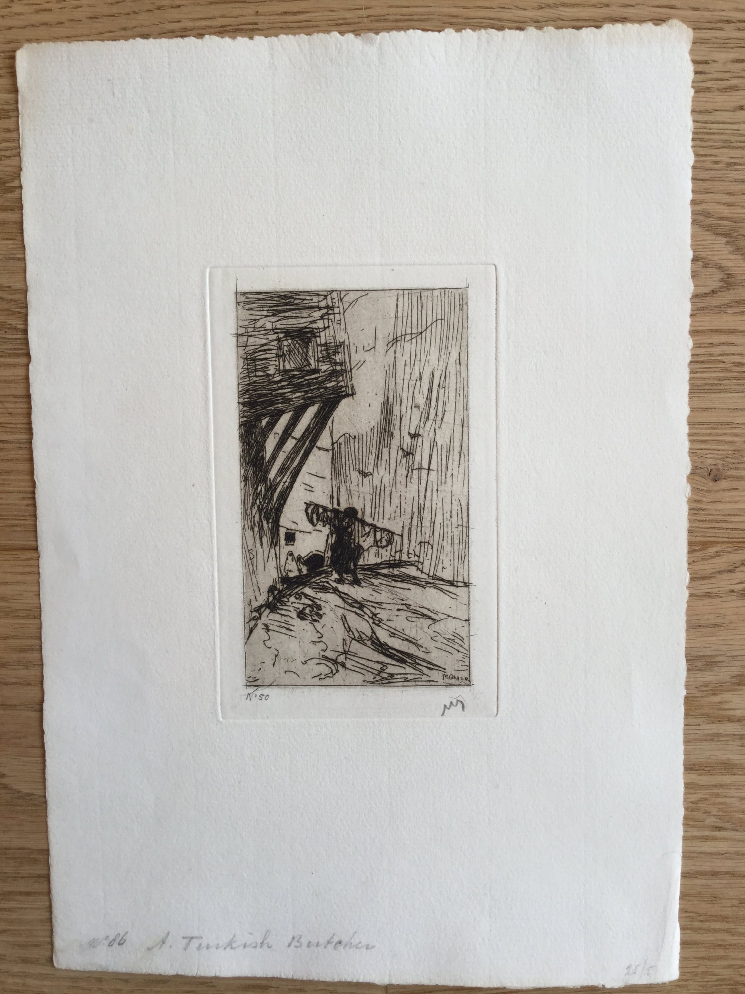 Fraaie ets van een Turkse slager van Marius Bauer, gemaakt tijdens een van zijn reizen naar het oosten. Hand gesigneerd.