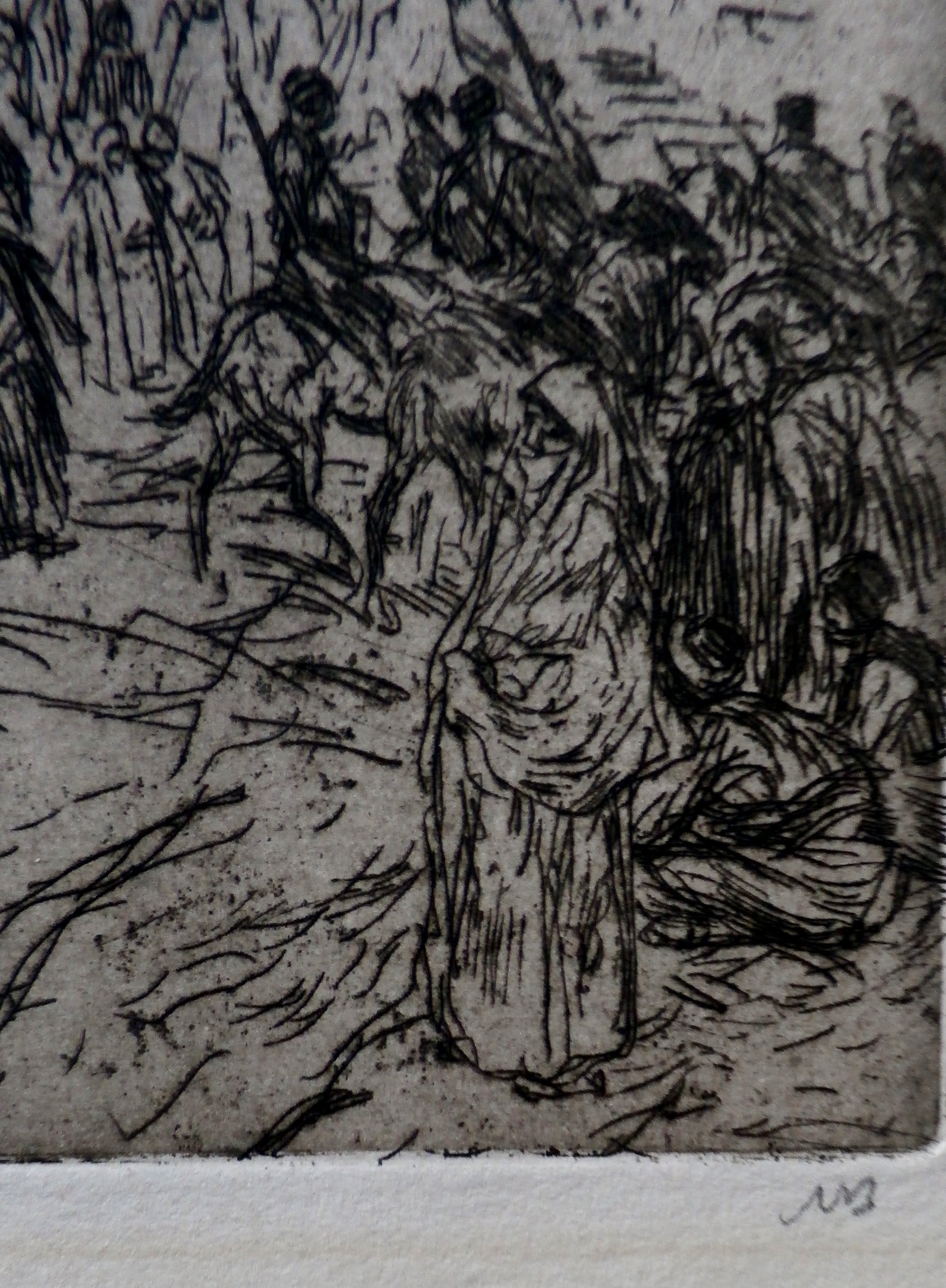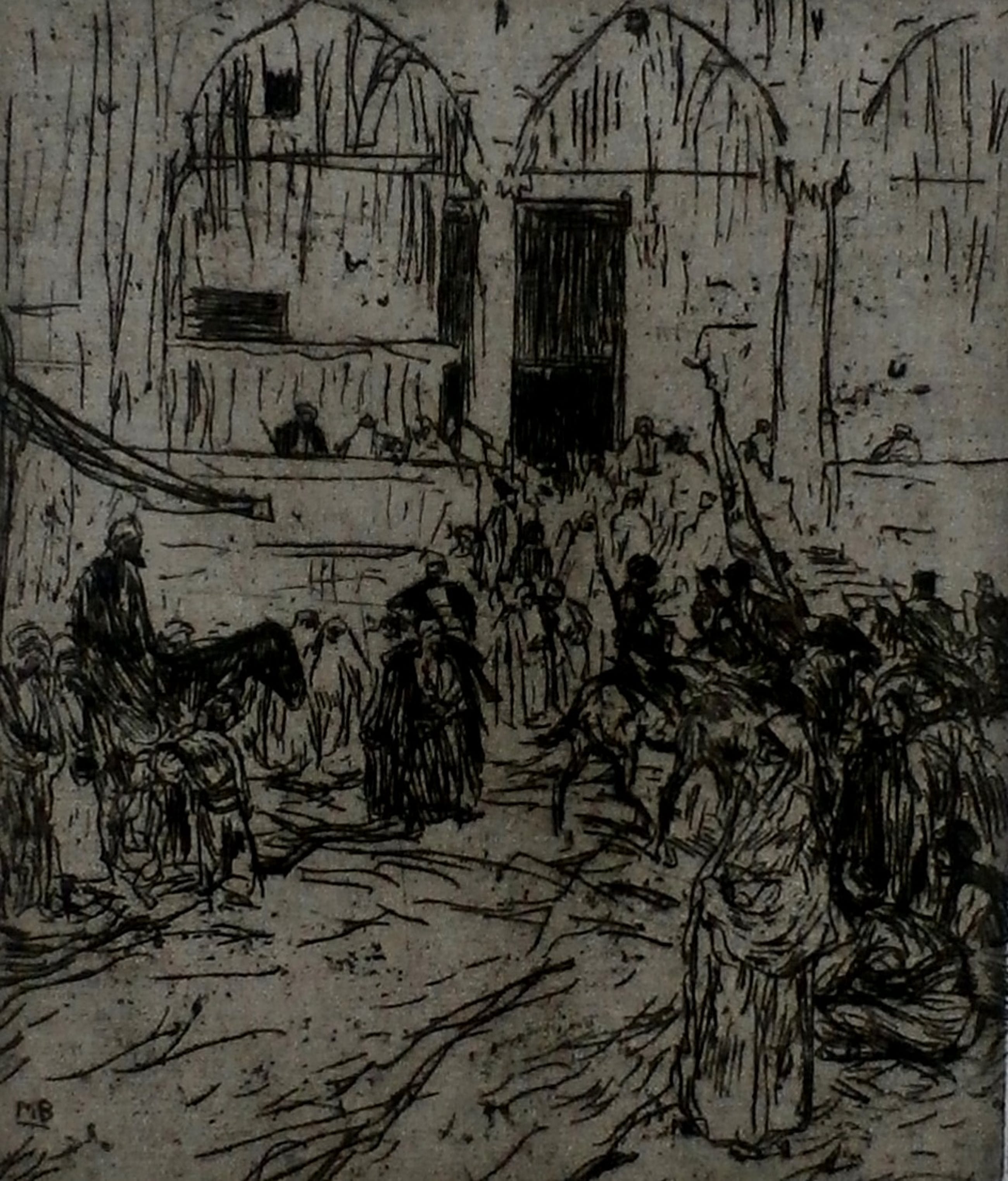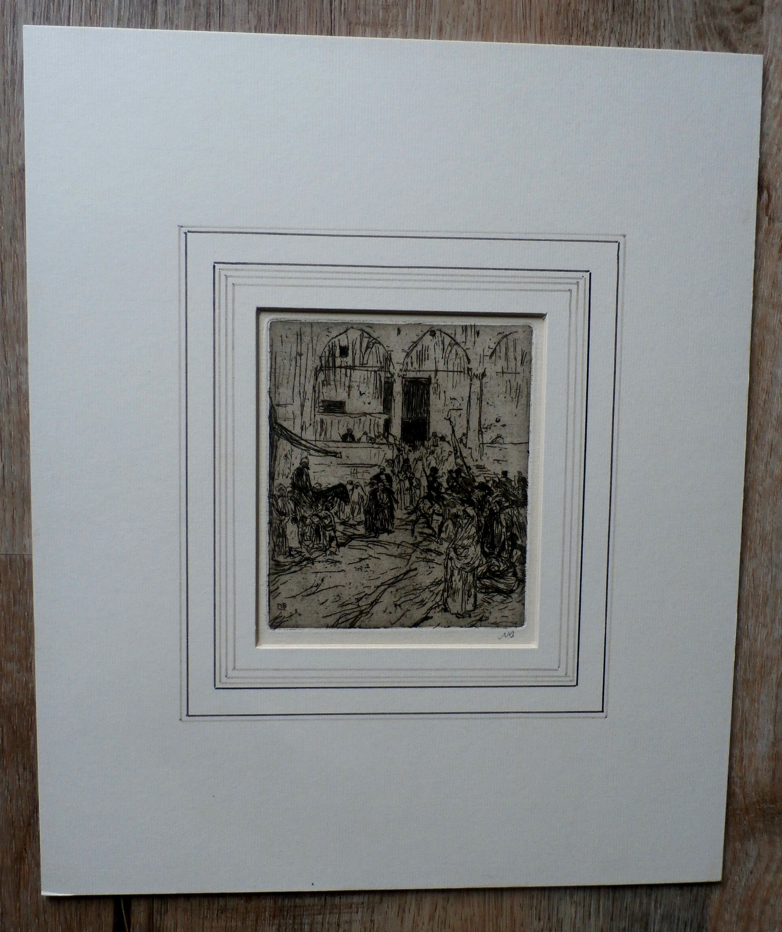Ets van Marius Bauer uit 1888. Het werk is rechtsonder, met potlood, gemonografeerd. Met het "label" van E.J. van Wisselingh & Co. Literatuur: Van Wisseling & Co, Zijn etswerk, nummer: 107.