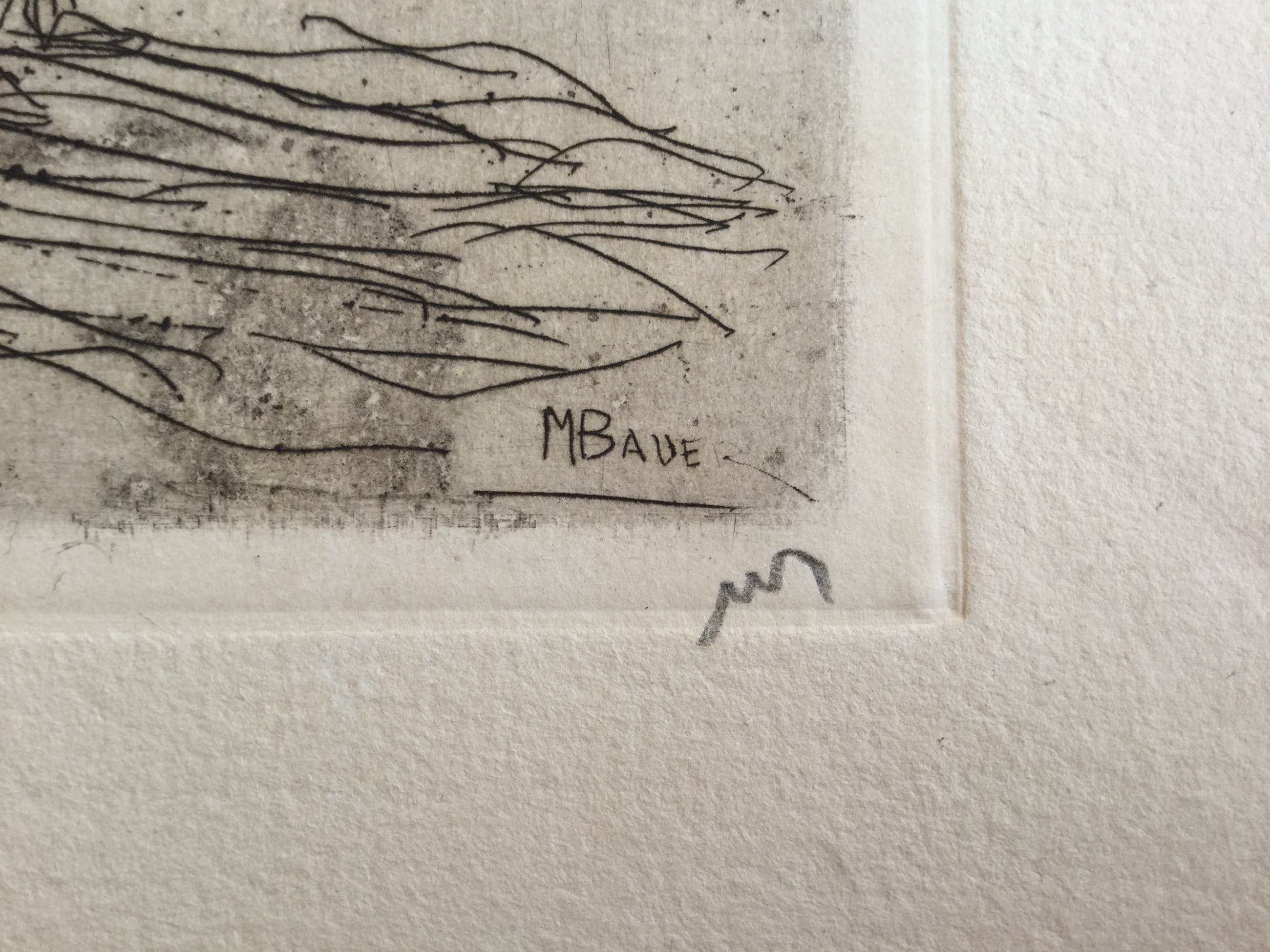 De ets is in goede staat. De witte rand om de ets is deels verkleurd.