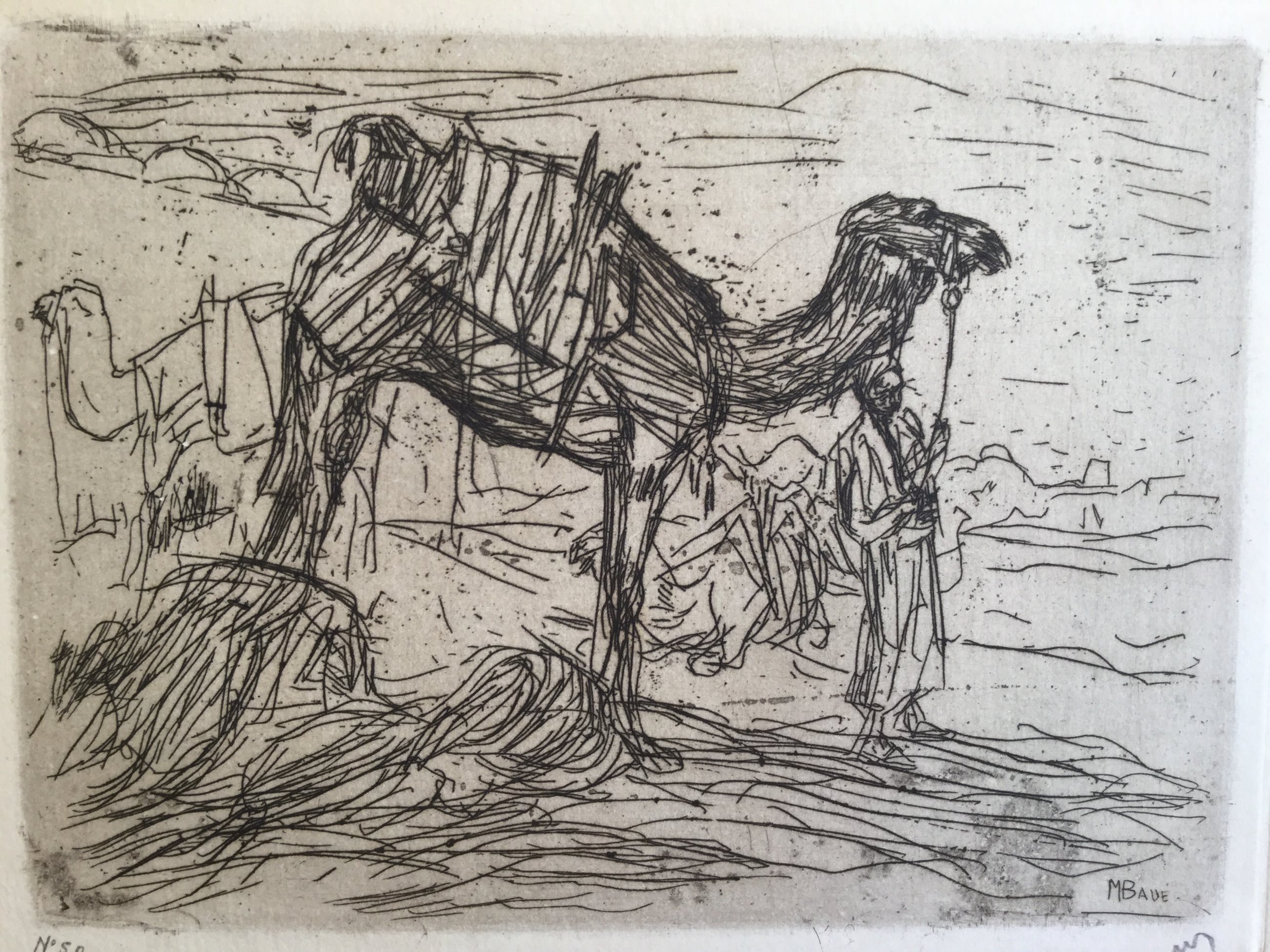 Leuke ets van man met kameel van Marius Bauer, gemaakt tijdens een van zijn reizen naar het oosten. Hand gesigneerd.