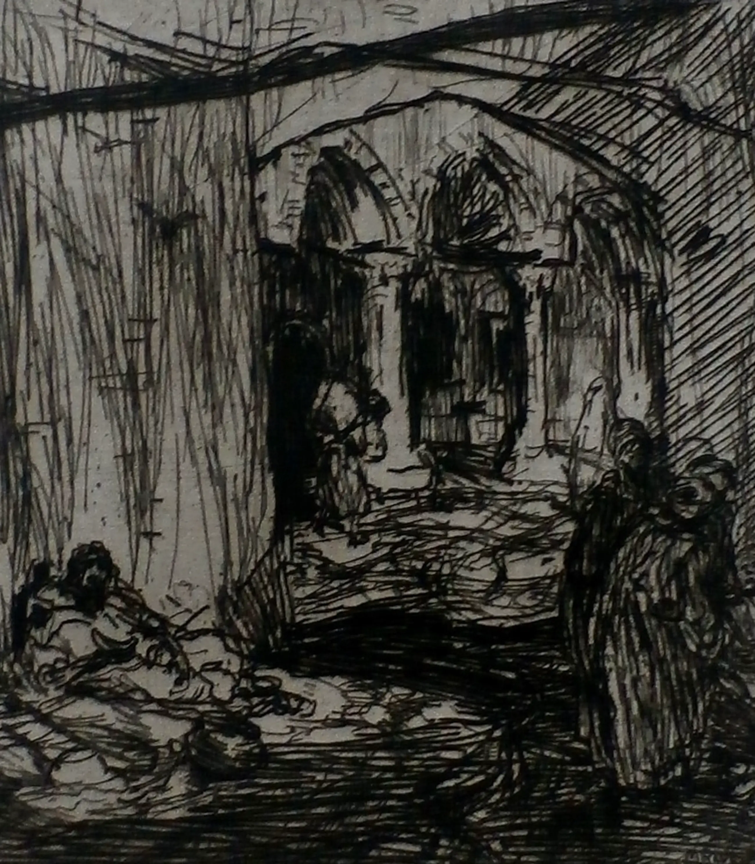 Ets van Marius Bauer. Titel: Voddenrapers. Nummer: 75. Afmetingen blad incl passepartout: H32.5 x b27.5 cm; Afmetingen voorstelling: H12.5 x b11cm. Literatuur: E.J van Wisselingh&Co - W108. Het werk is rechts onderaan, met potlood, gesigneerd door de kunstenaar. De authenticiteit van dit werk wordt volledig gegarandeerd. Een certificaat van echtheid kan, op aanvraag, worden gemaild.