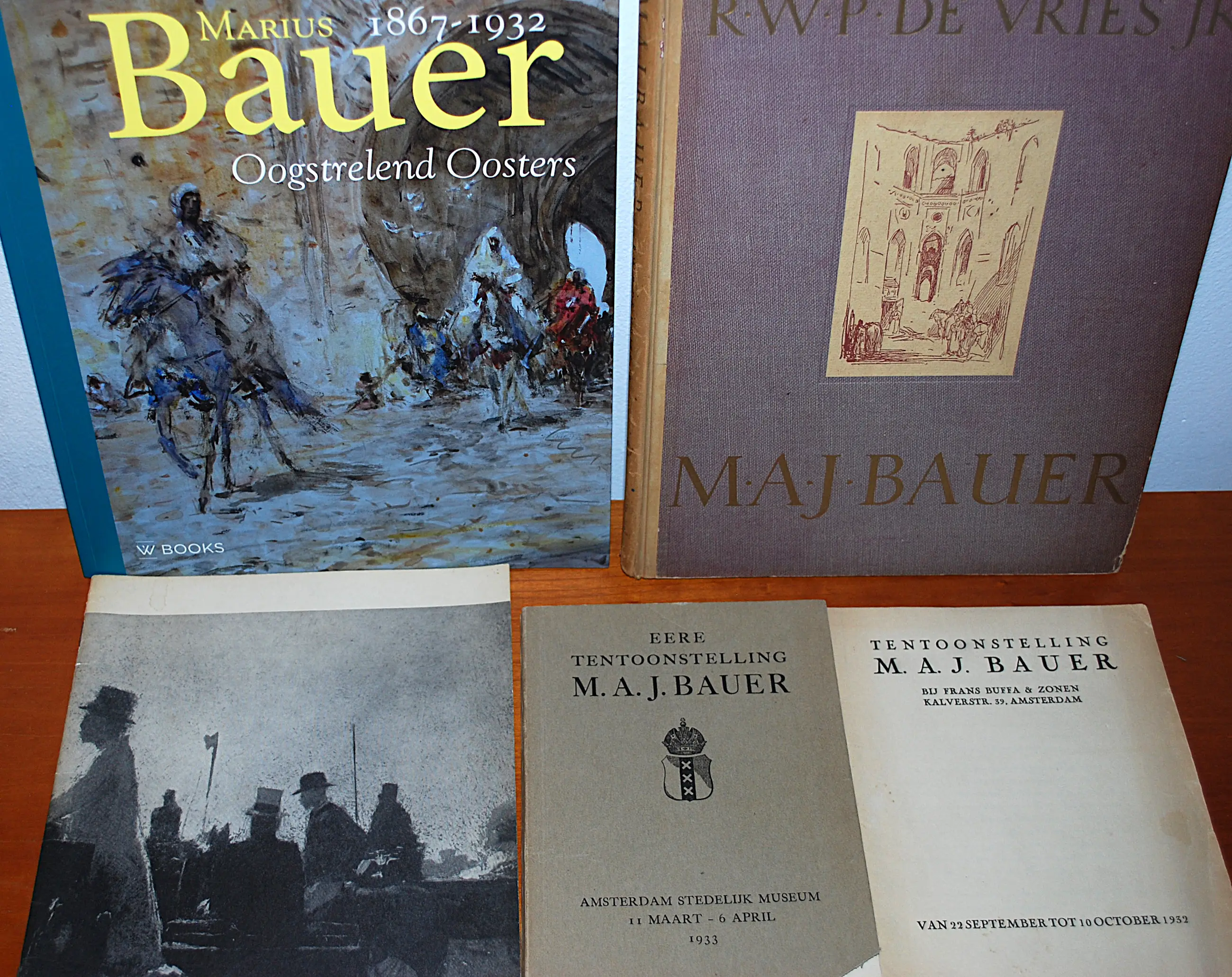 Hardcover: gesigneerd voormalig ex. van de kunstenaar Ger Langeweg. Boek door RWP de Vries jr. Daarbij: -Oogstrelend Oosters (2007), uitgave W-books. 208 pag. In vrijwel nieuwstaat. -De onbekende Bauer, Boymans 1957. 22 pag. -Eere tentoonstelling Stedelijk Museum 1933. -Tentoonstelling Frans Buffa 1932, niet geïllustreerd, 4 pag.