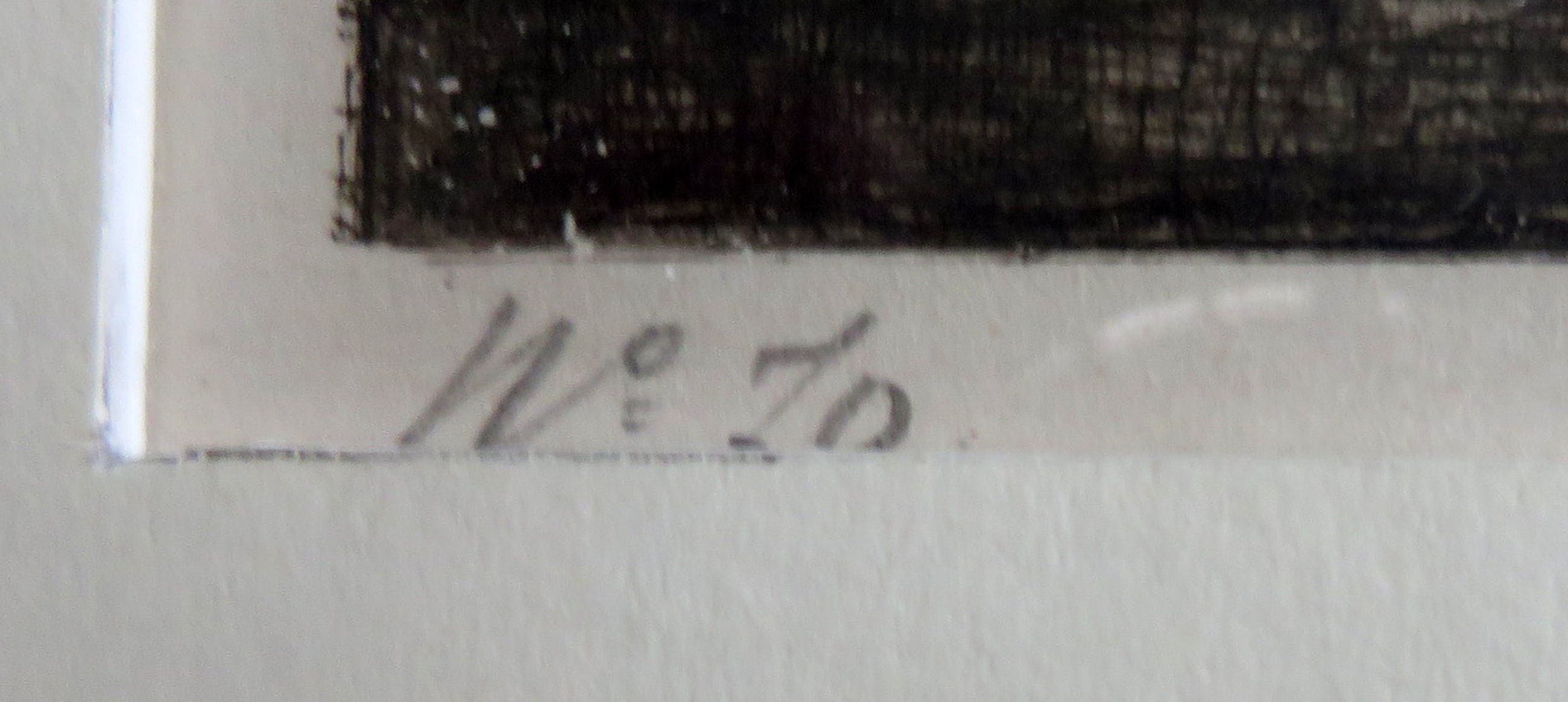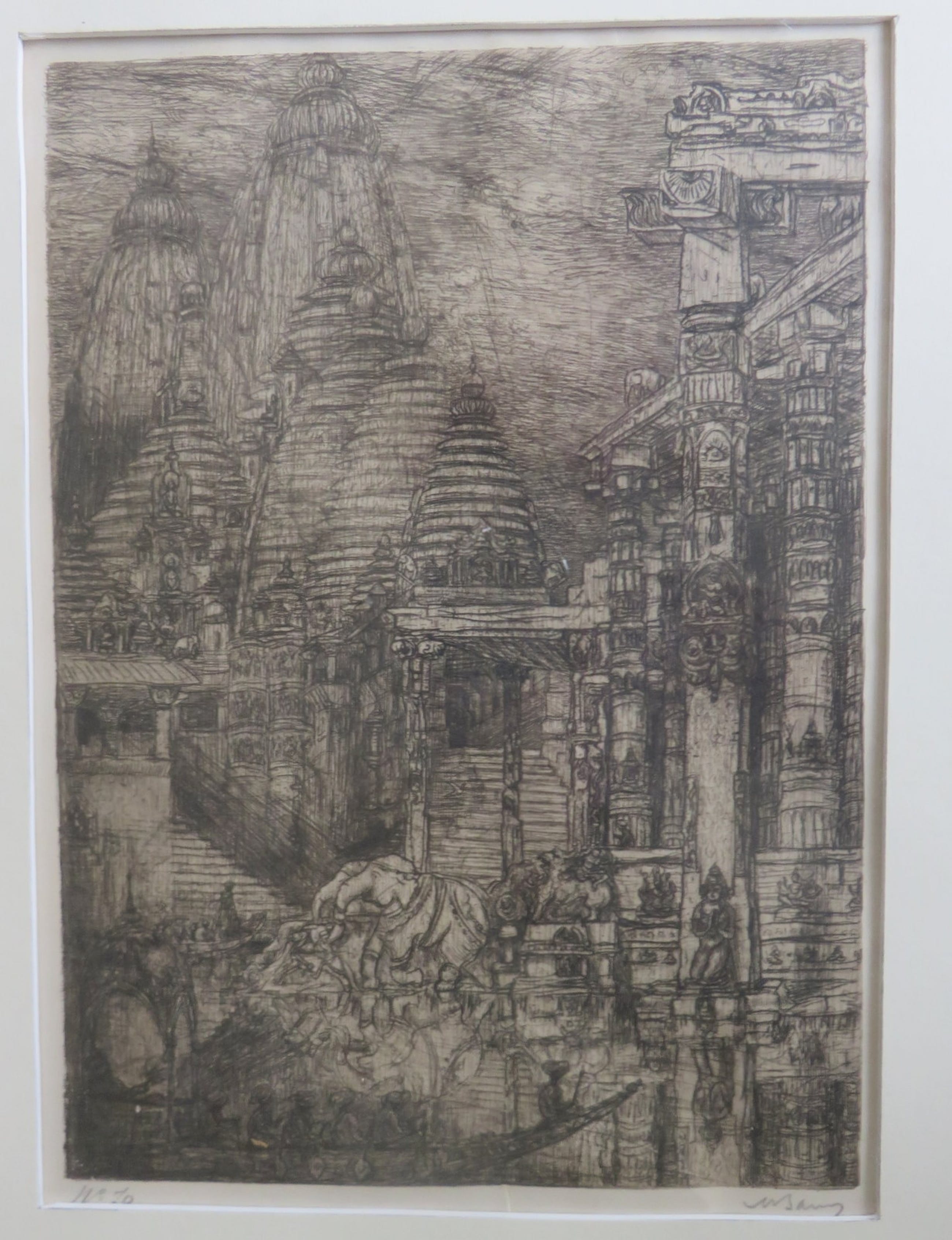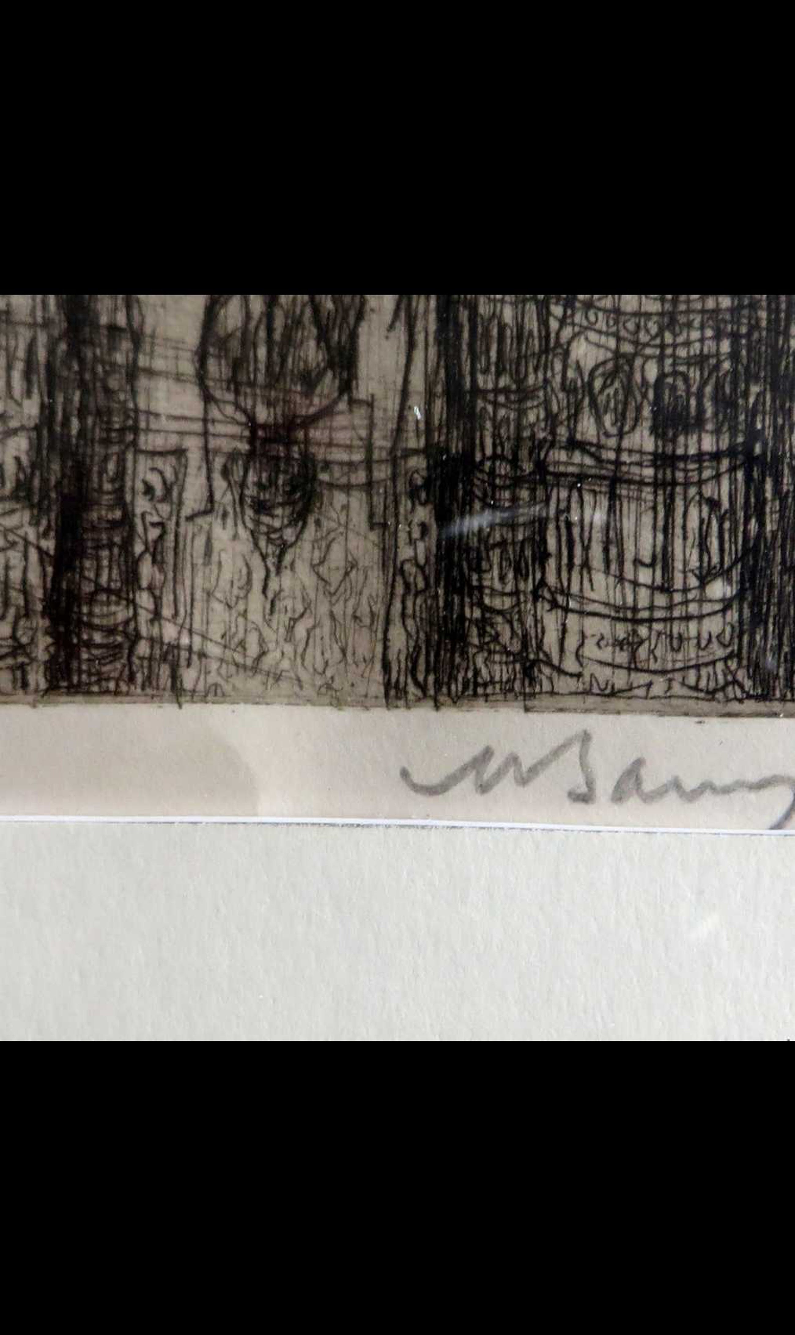 Fraaie ets van Marius Bauer,waar veel in gebeurd.Gesigneerd met potlood buiten de plaat, (r.o).