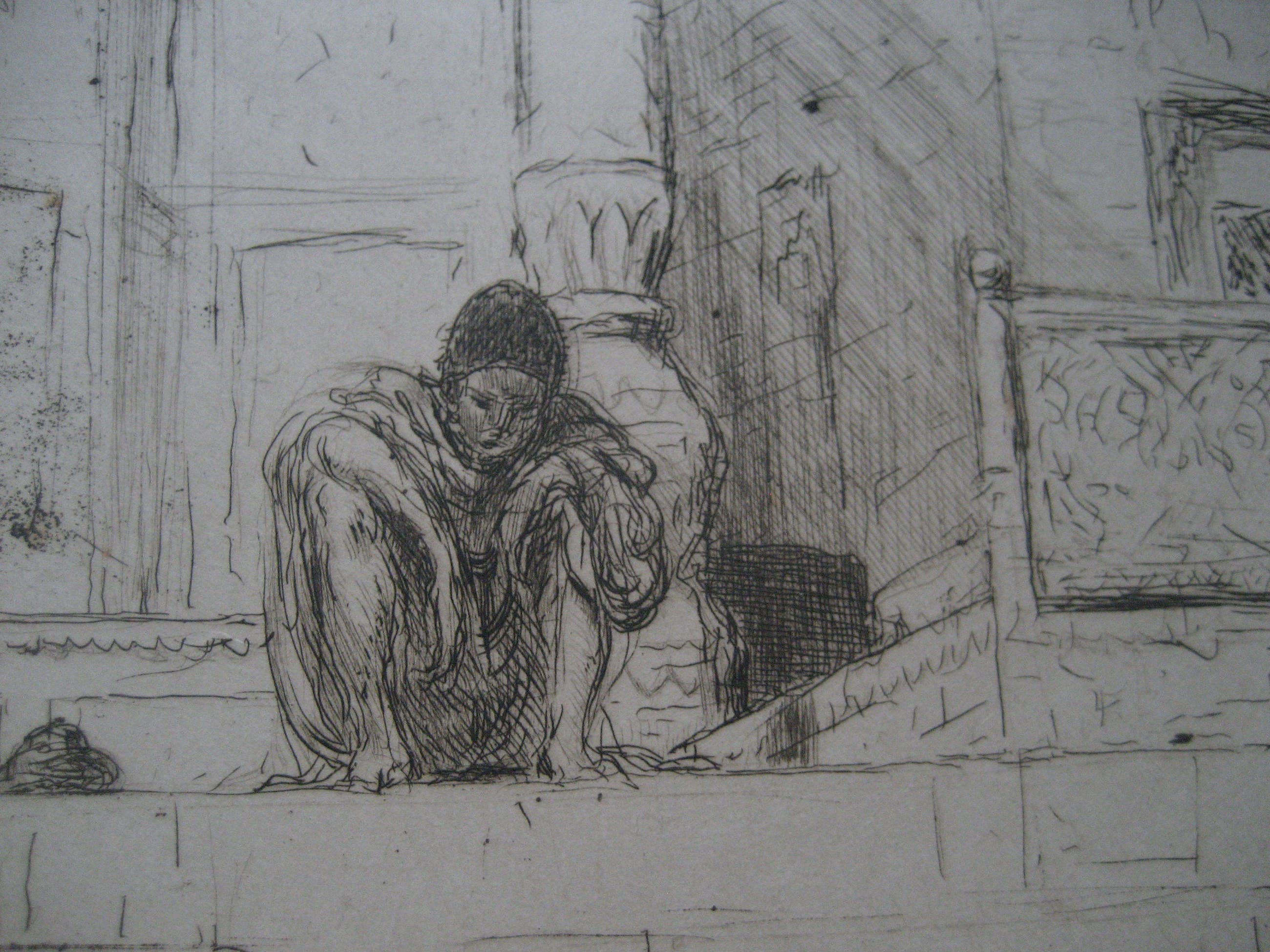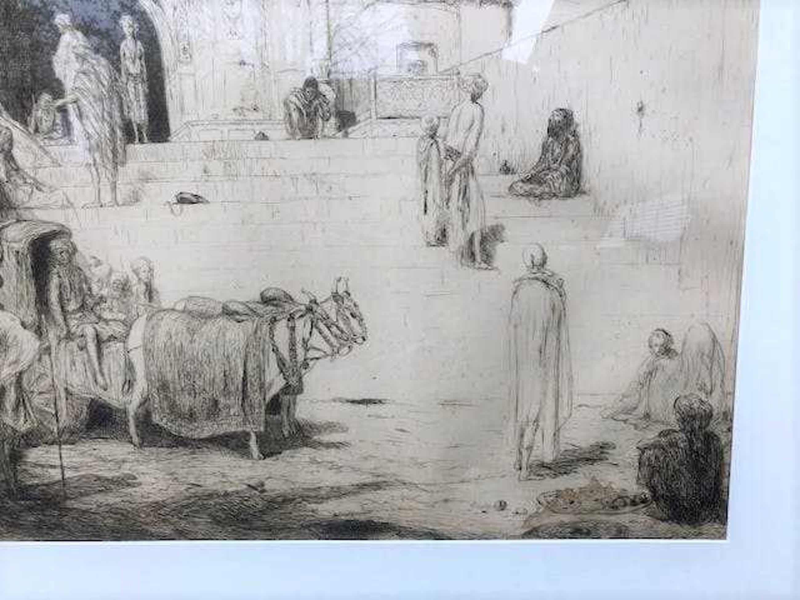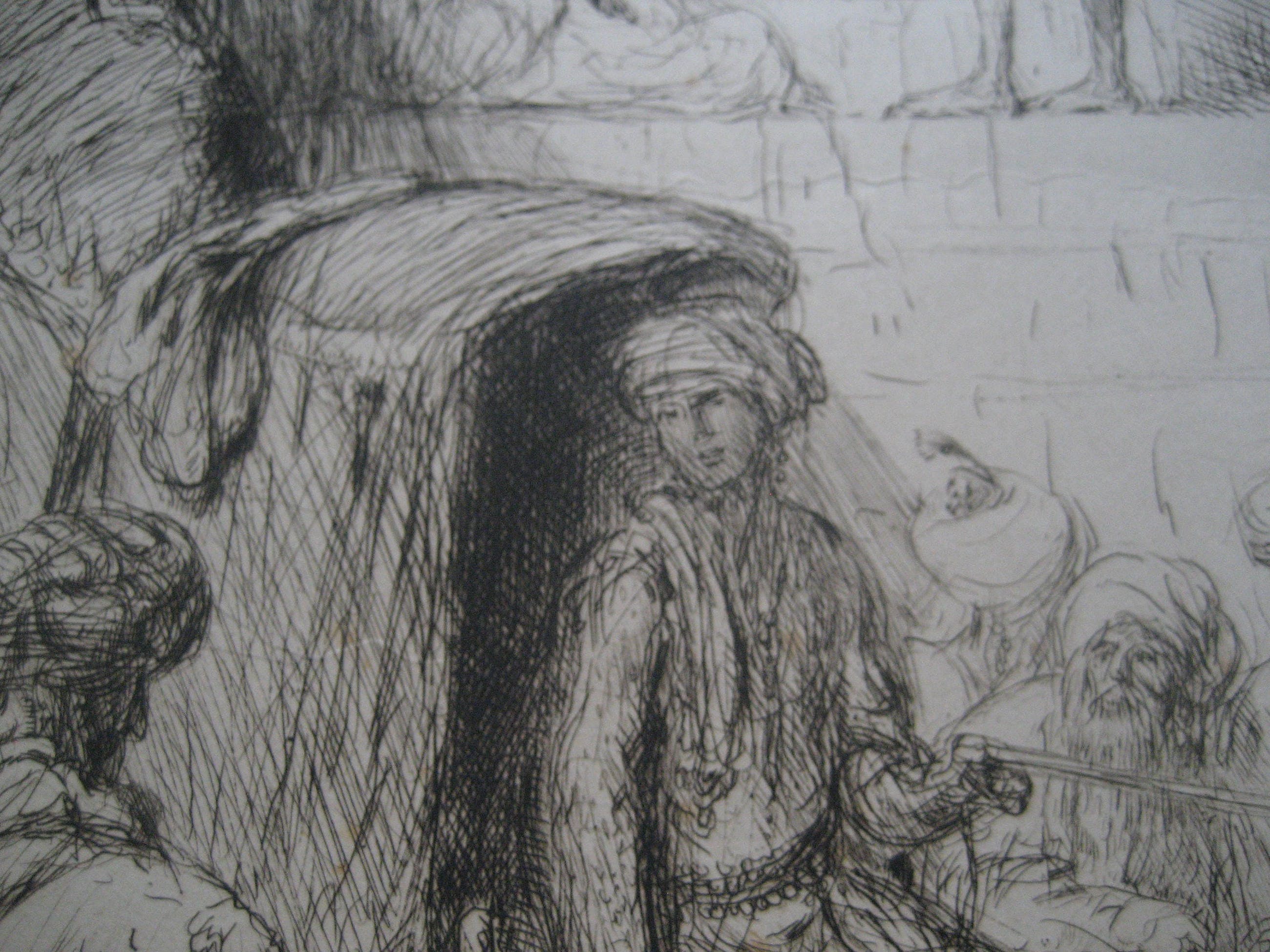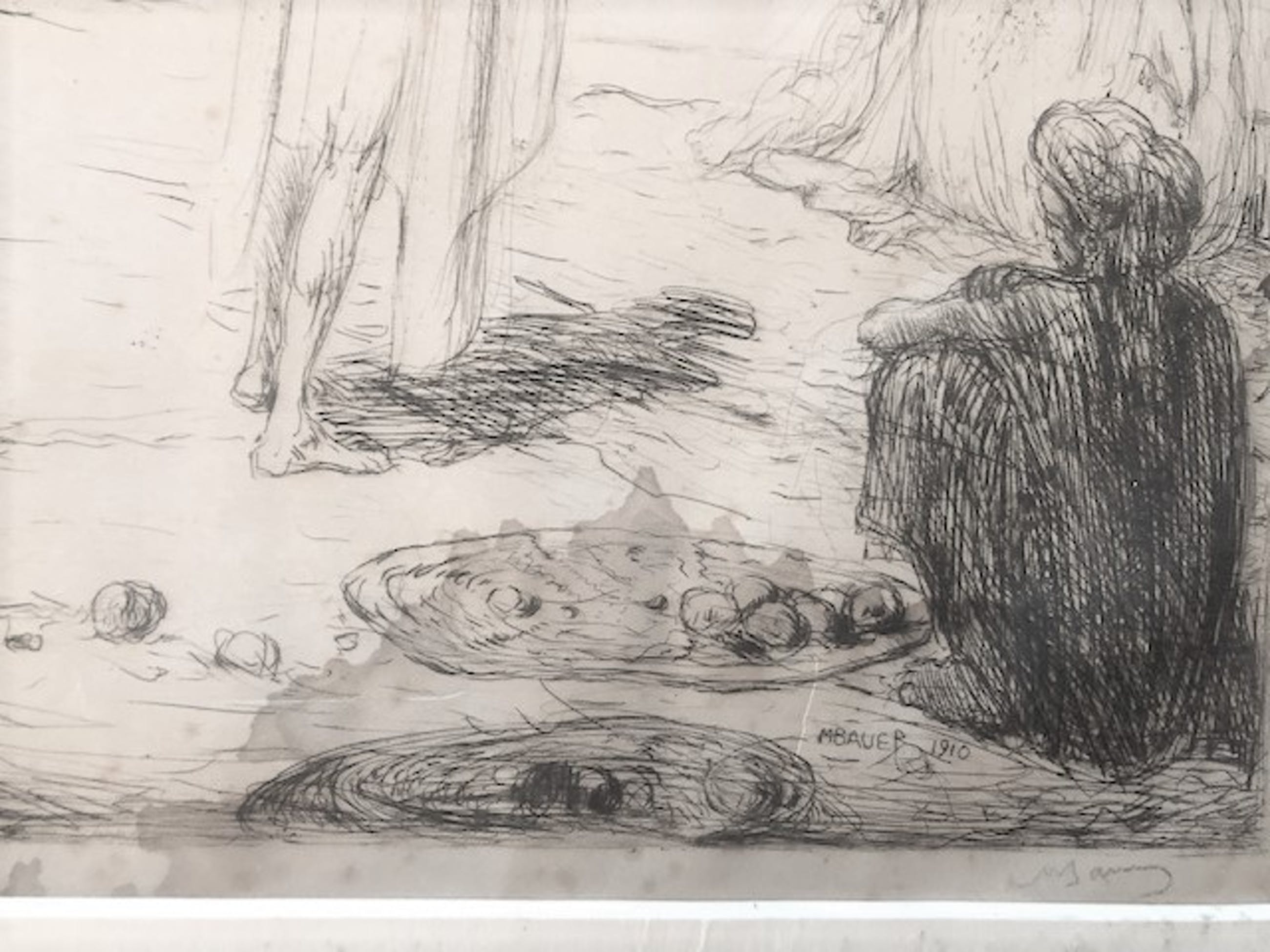 Marius Bauer Grote Ets uit 1910 Hyederabad Vermeld in de catalogus Wisselingh No 234 Gesigneerd Ingelijst Afmeting inclusief lijst 70 x 85 cm. Het werk is in goede staat Het werk heeft wat waterkring in de rechterbenedenhoek bij de zittende figuur .