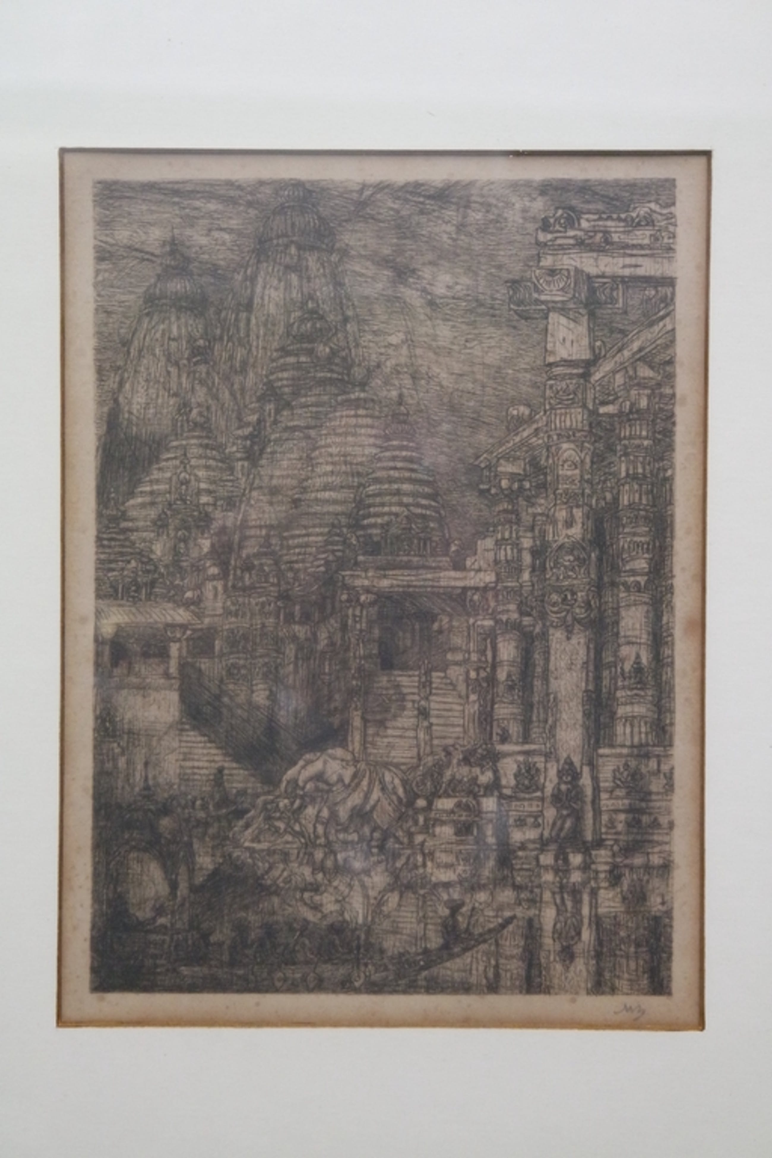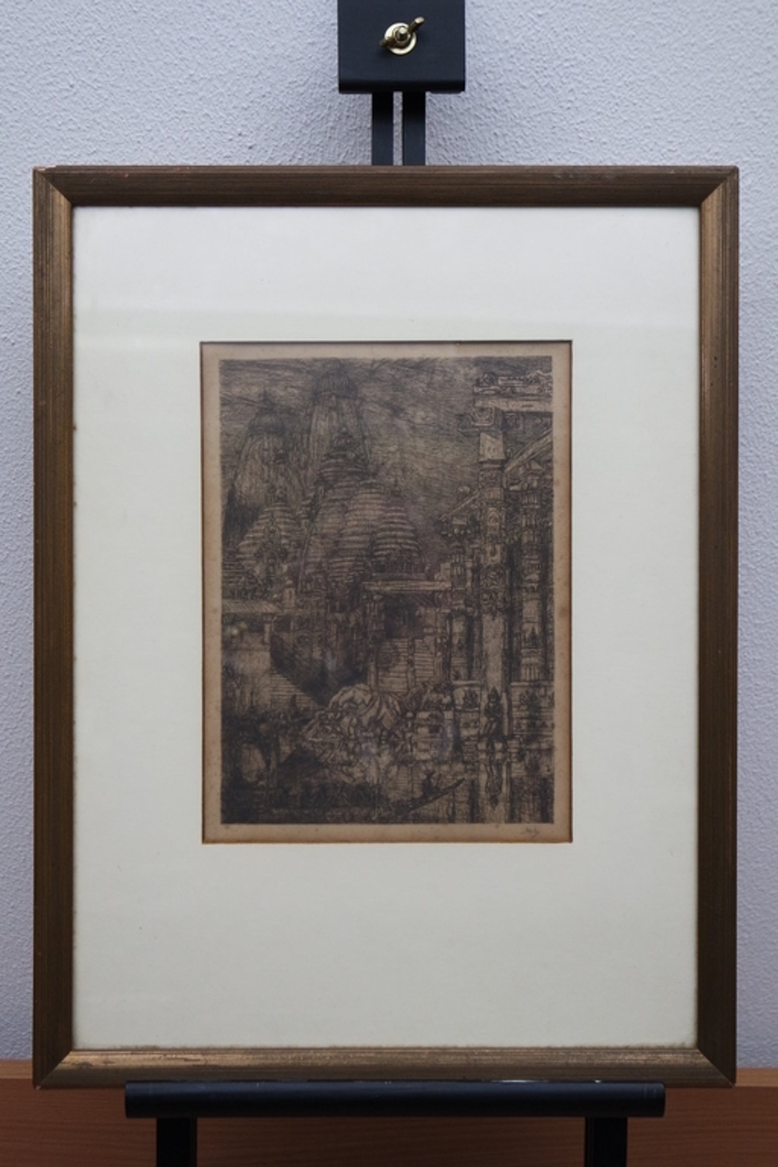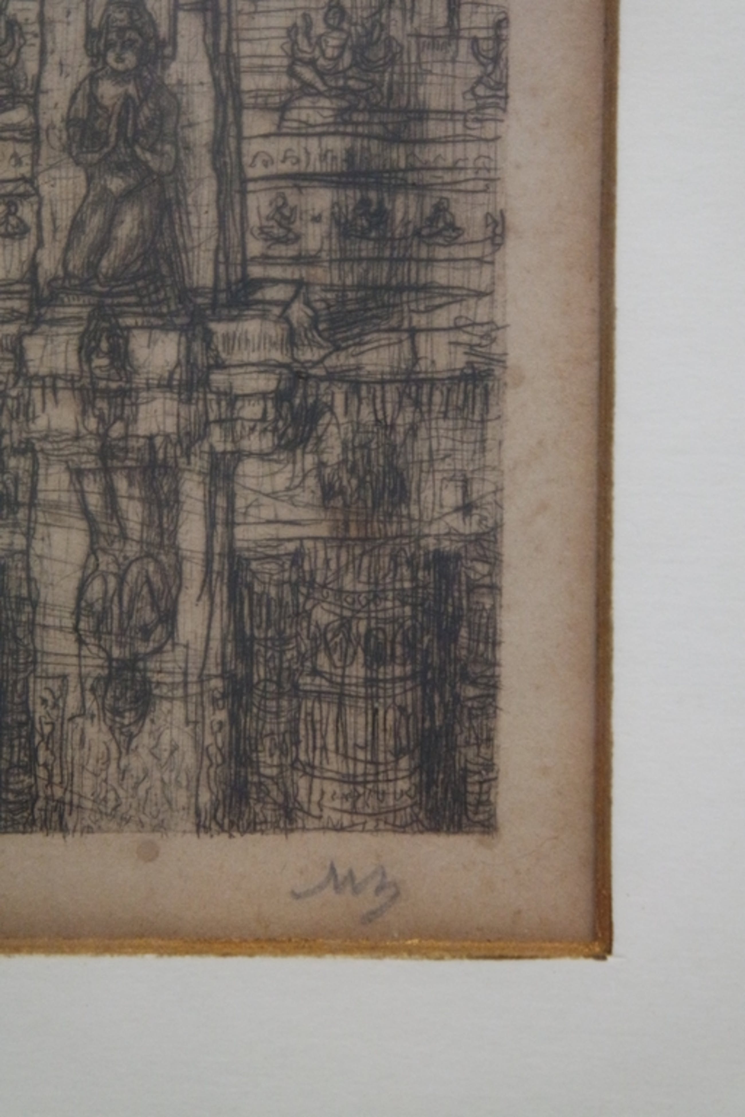 Een zeldzame handgemonogrammeerde ets van de bekende kunstenaar Marius Bauer (1867-1932). Met lijst. Afmetingen met lijst: 46 cm. x 35 cm. Afmeting ets: 25 cm. x 18,5 cm. Conditie: redelijk tot goed (gezien de ouderdom van de ets). De ets wordt goed gepakt en verzekerd verzonden. Afhalen is mogelijk. Info: www.rkd.nl/bauer.