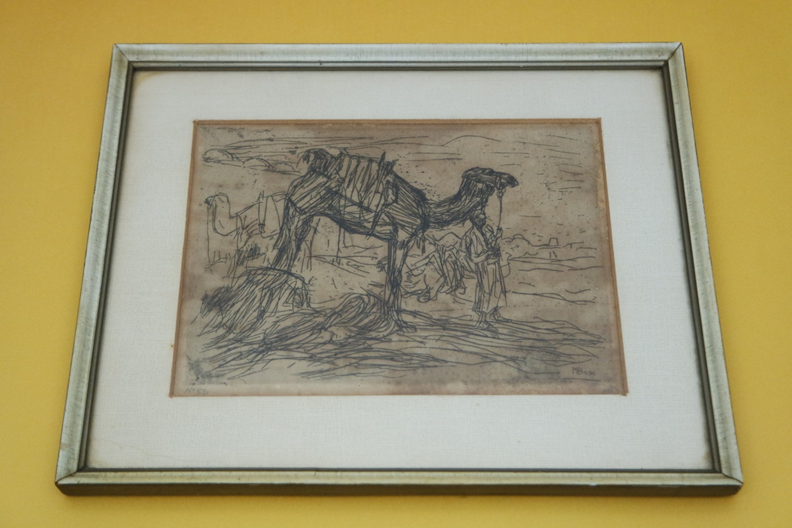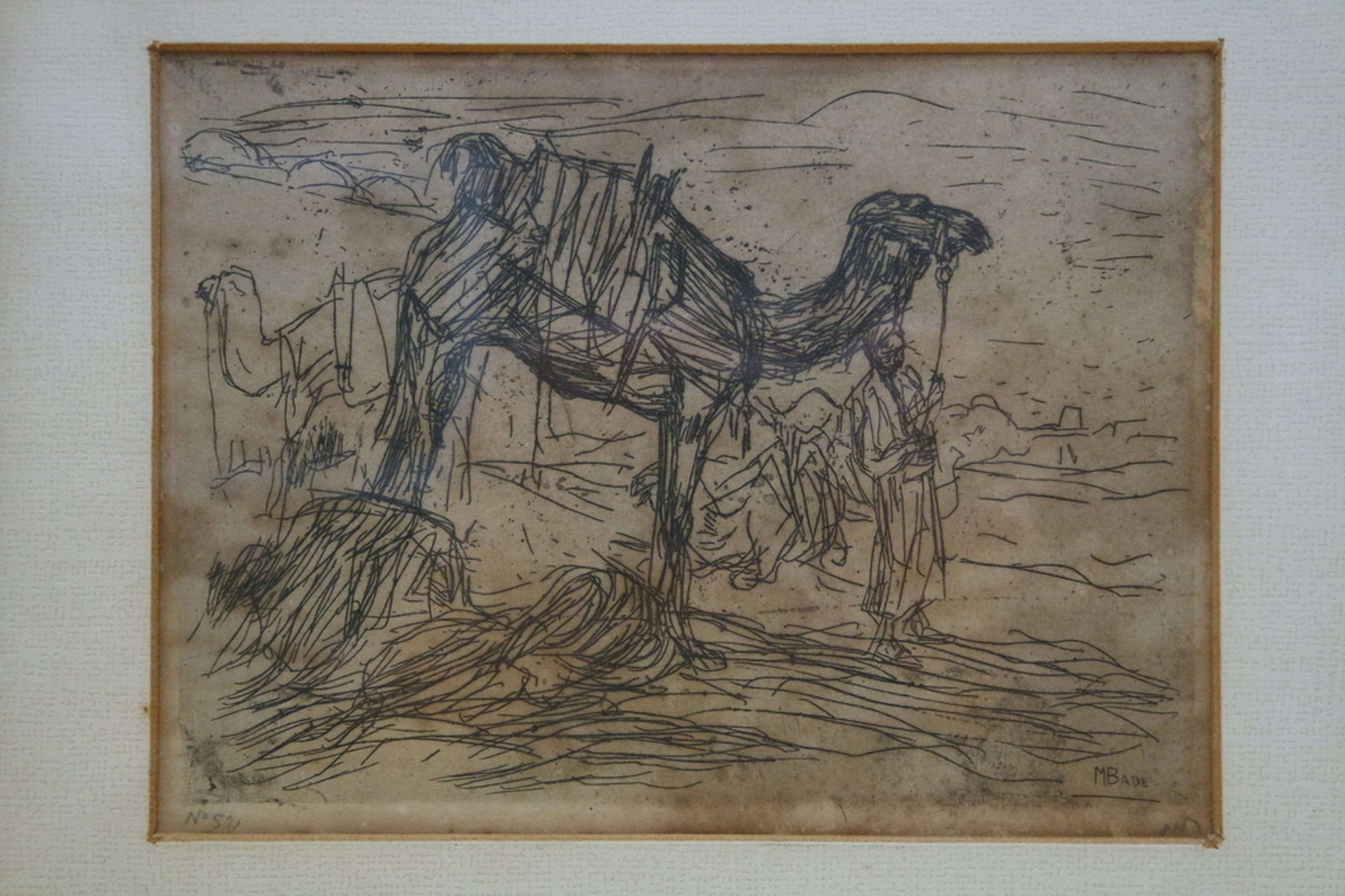 Een prachtige handgesigneerde ets (no. 52 / dromedaris) van de Nederlandse kunstenaar Marius Bauer (1867-1932). Mooi achter glas ingelijst. Gemonogrammeerd rechts onder. Afmetingen met lijst: 27,5 cm. x 23 cm. Beeldmaat: 19,5 cm. x 14,5 cm. Conditie ets: heel goed. De lijst heeft ouderdomssporen (zie foto's). Het kunstwerk wordt GRATIS (binnen Nederland) verzonden. Afhalen is ook mogelijk.