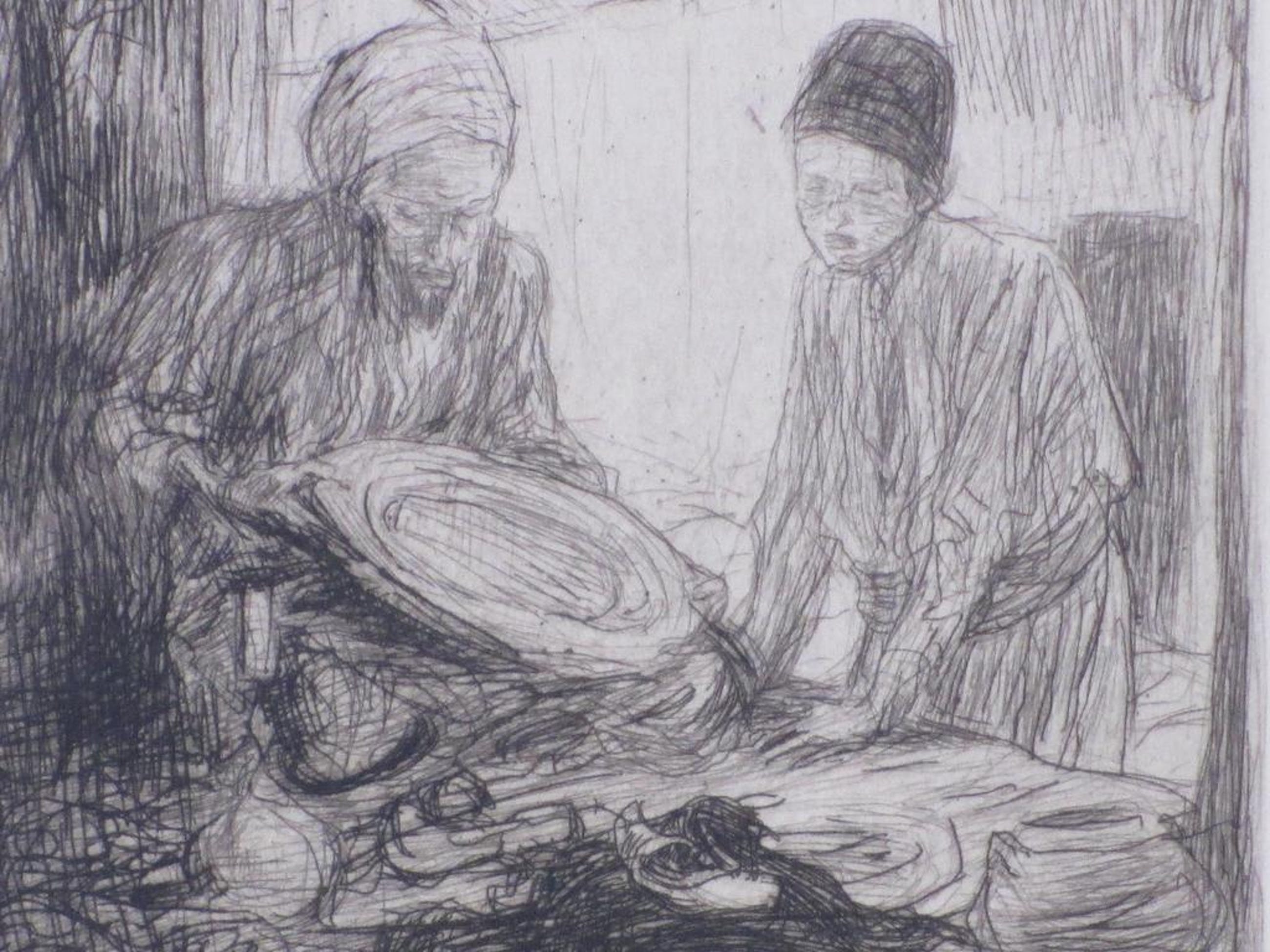 Fraaie, kenmerkende Orientaalse ets door Marius Bauer.