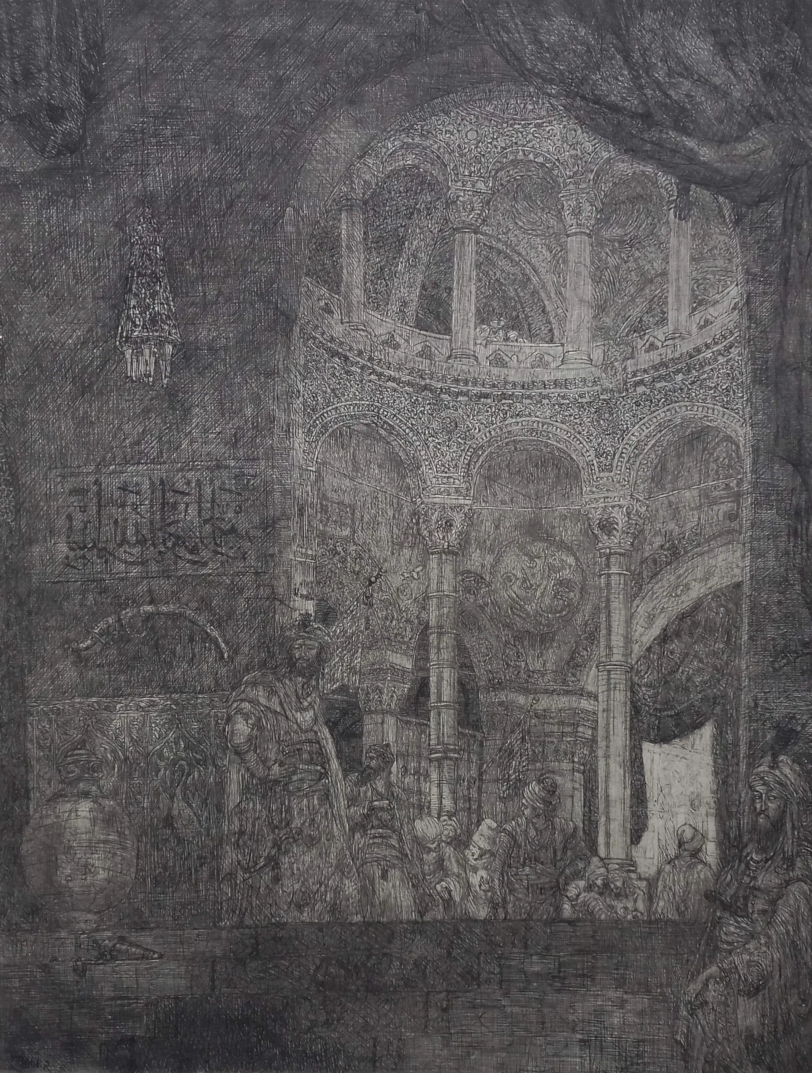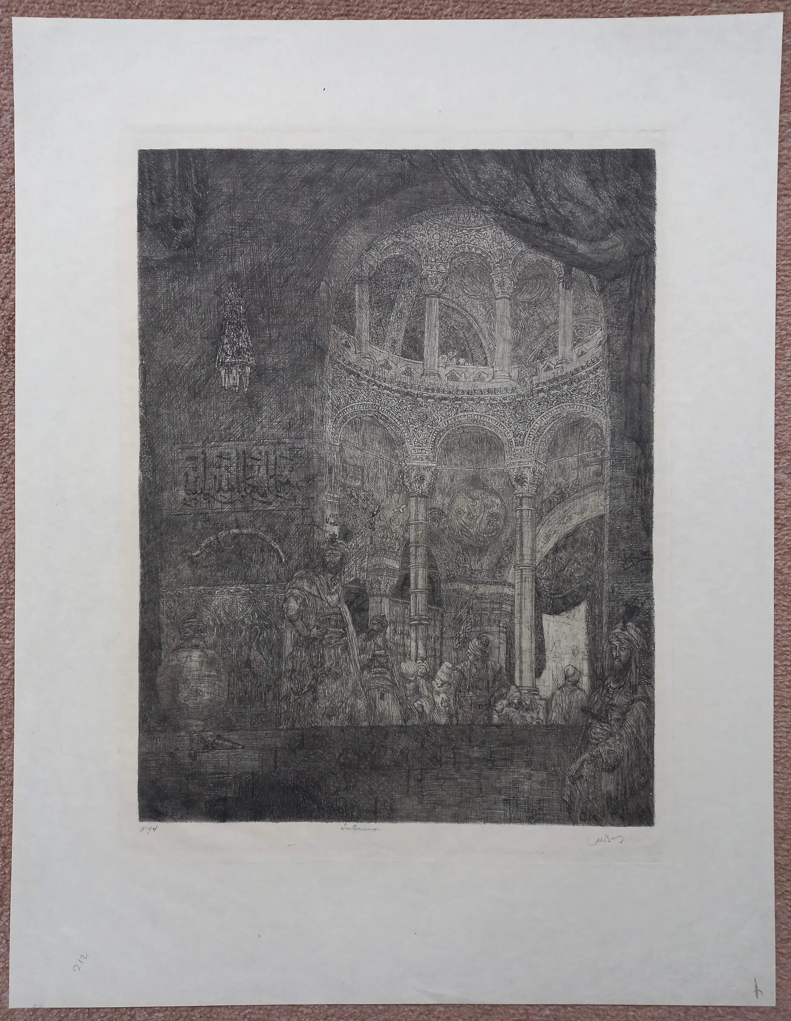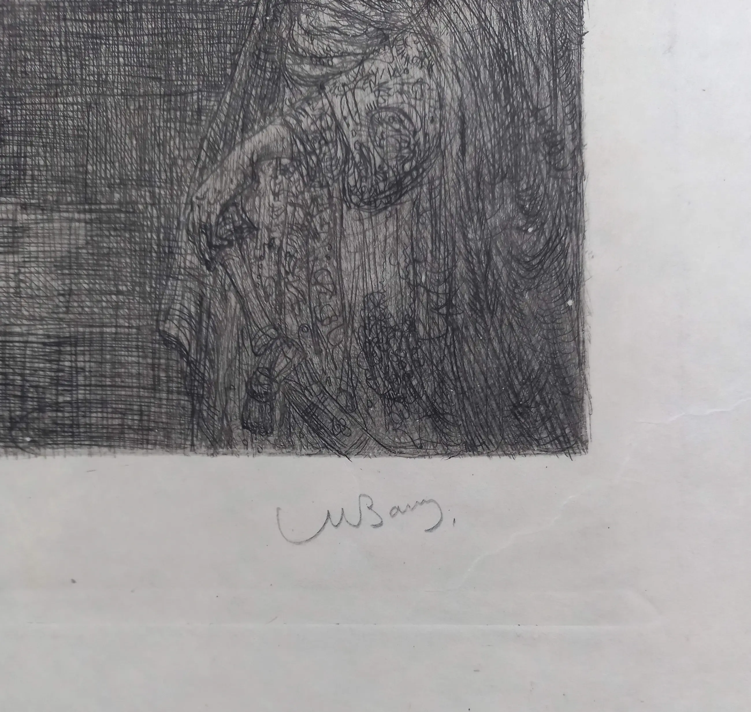 Zeer mooi, bekend werk van Marius Bauer uit 1890. Ets op papier, met potlood gesigneerd, getiteld (“Interieur”) en genummerd (“No 94”, uit een oplage van 100), en ook gesigneerd linksonder in de plaat. In zeer goede conditie. Literatuur: Van Wisselingh 212.