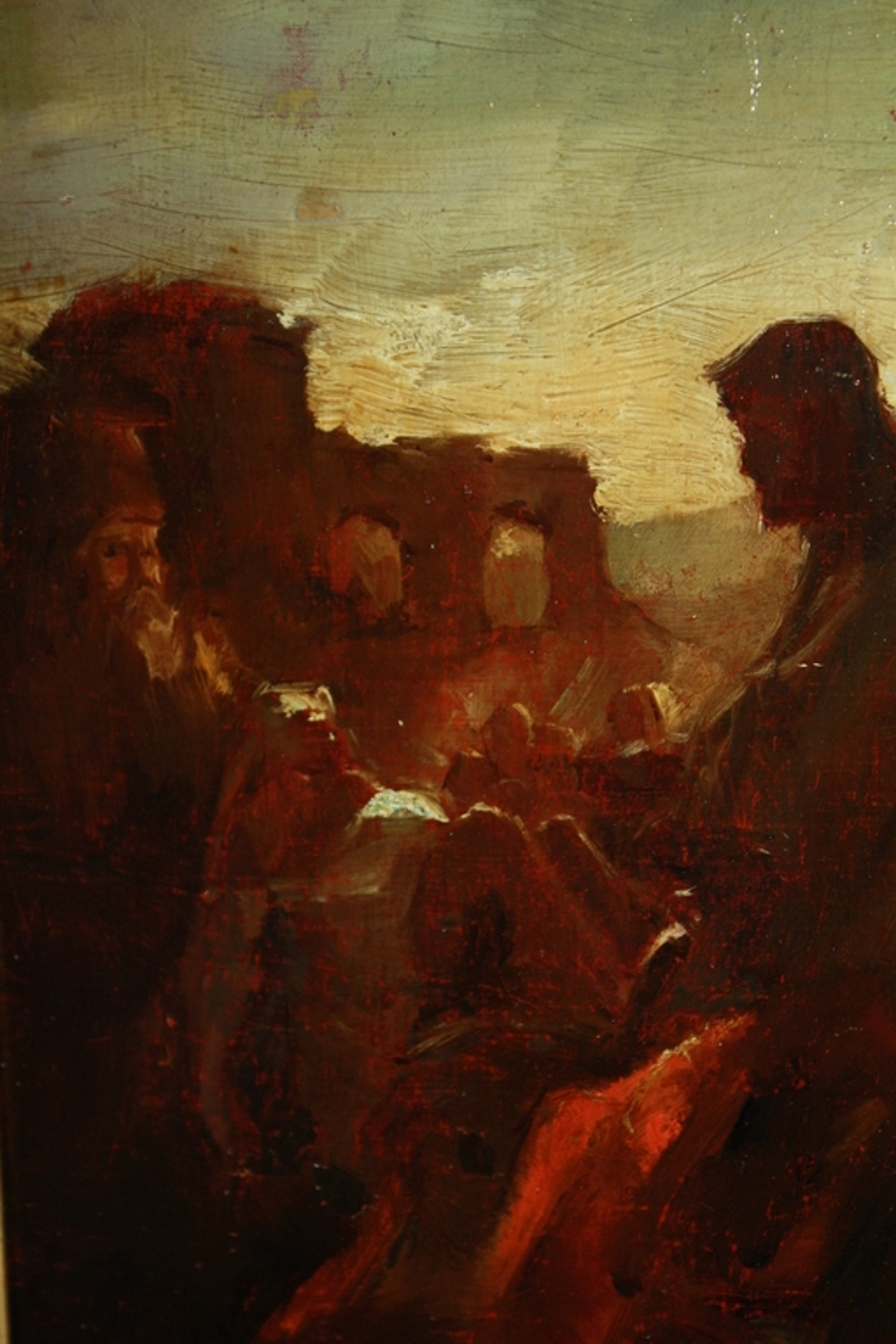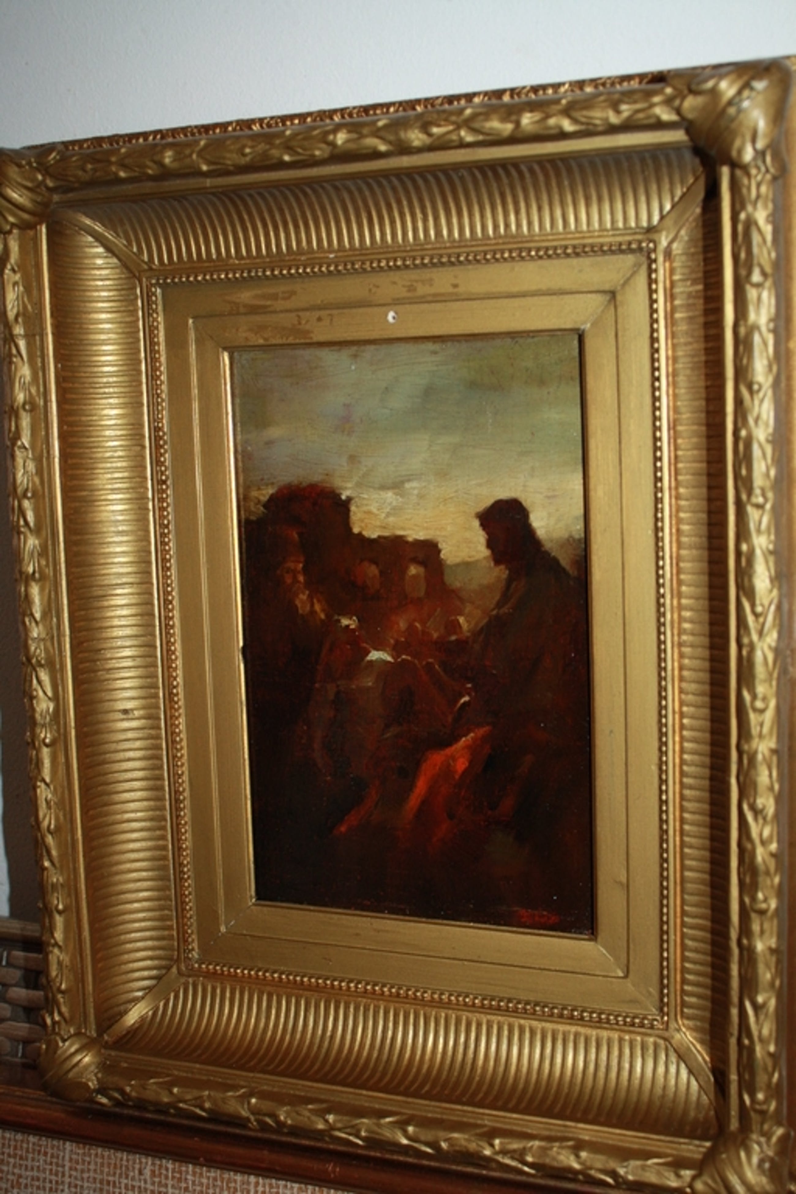 olieverf op antiek eiken paneel in de maat 16 x 25 cm
