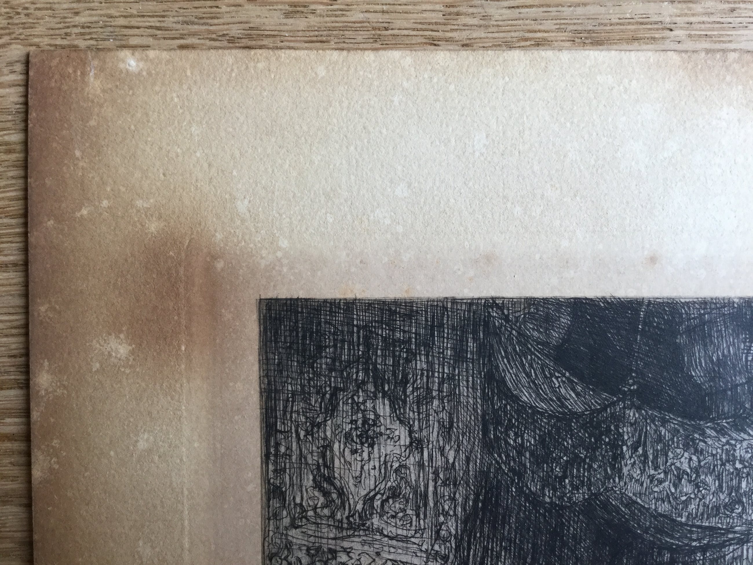 Met een nieuw passe-partout in een lijst zal de ets weer fraai tot zijn recht komen.