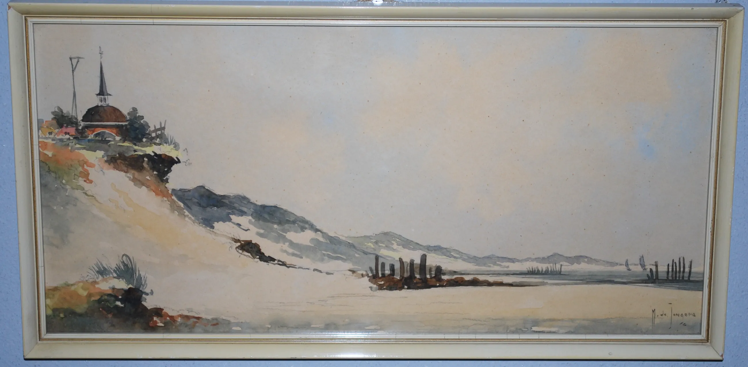 Het werk is ingelijst achter glas door de fa.Petri. De lijst heeft slijtschade.