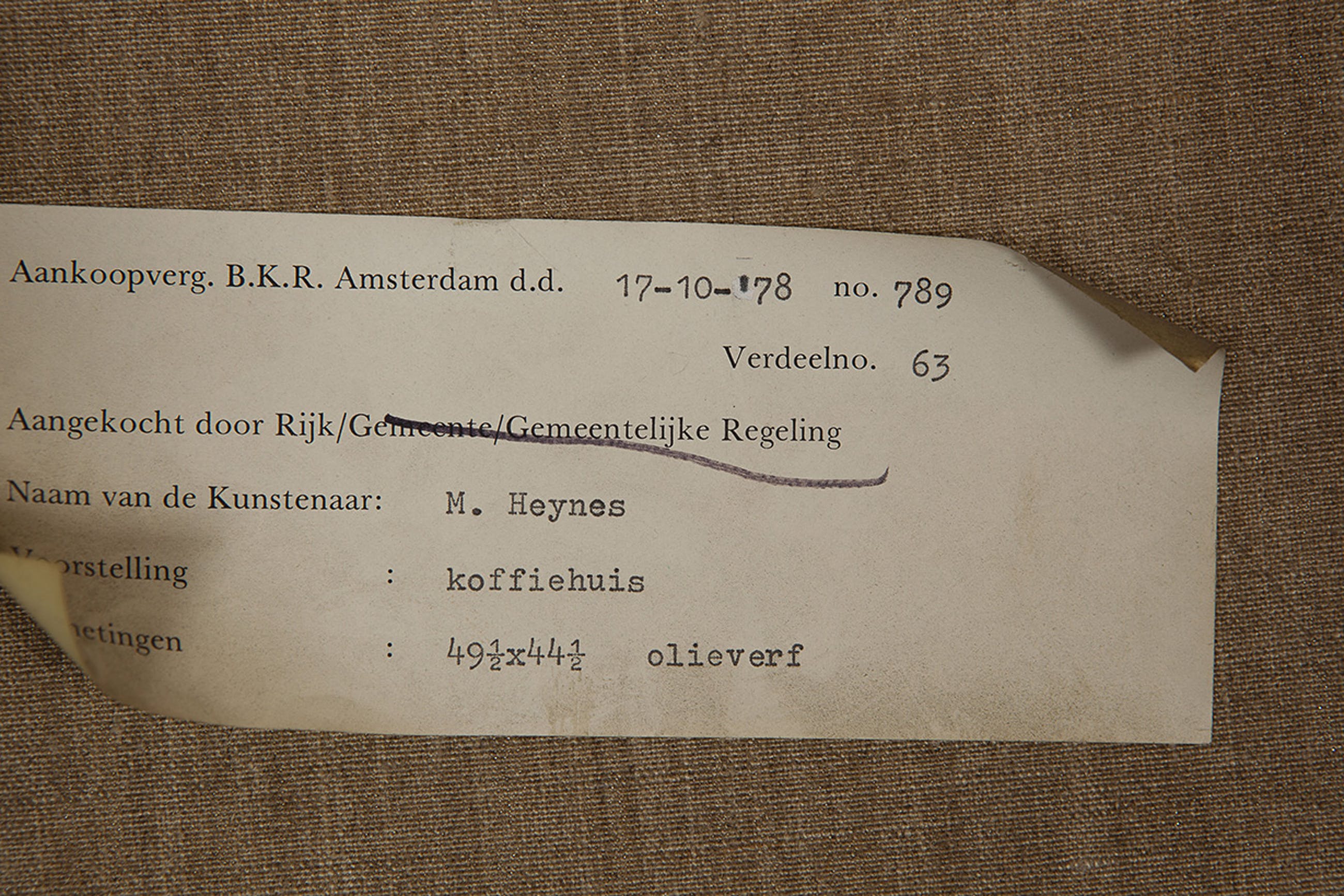 Herkomst: BKR Amsterdam (Het kunstwerk is afgevoerd uit de rijkscollectie in 2018)