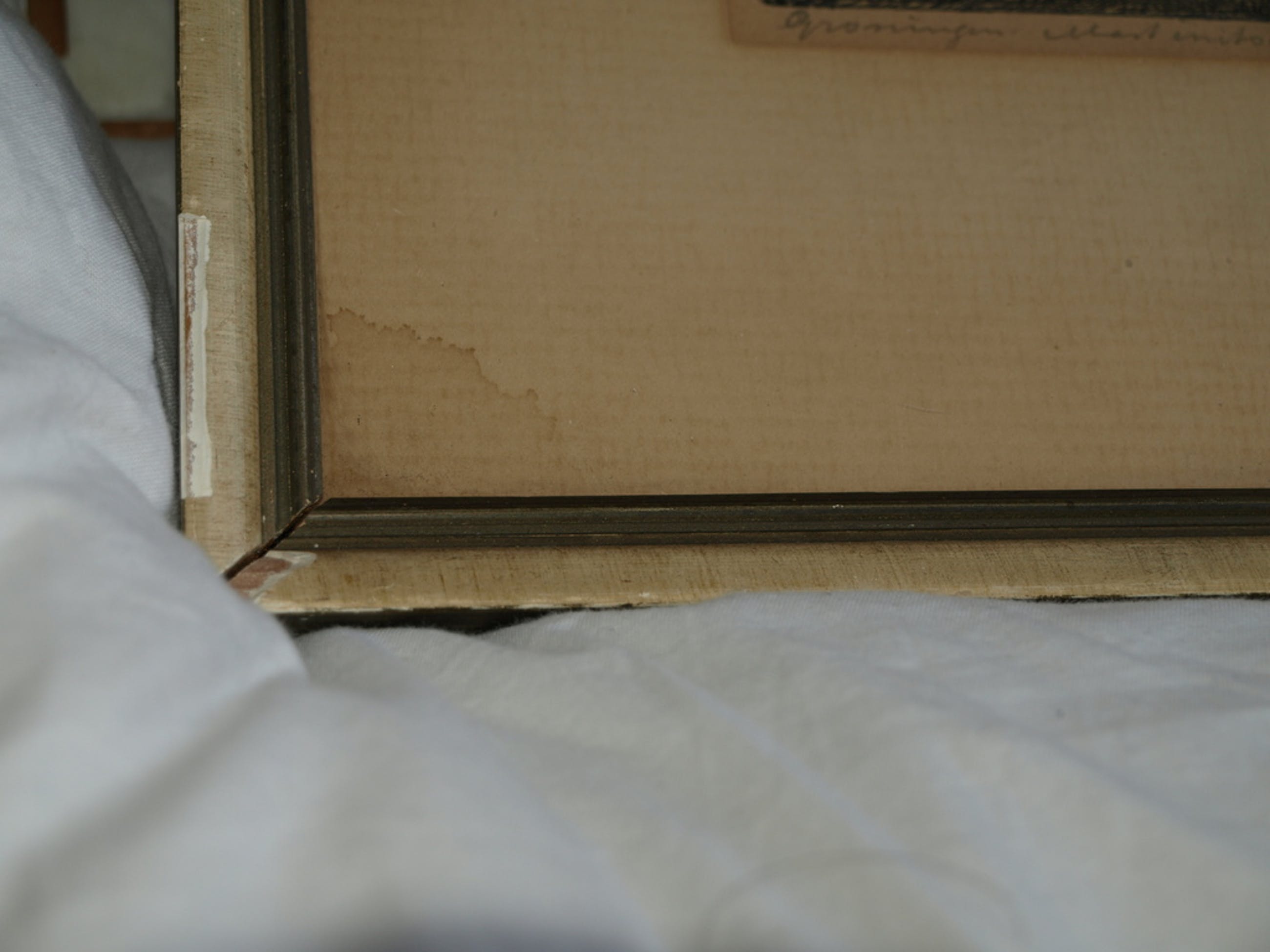 Conditie: Het papier van de ets en het passe-partout zijn ‘vergeeld’ door de tand des tijds. De lijst heeft slijtplekken en beschadigingen.