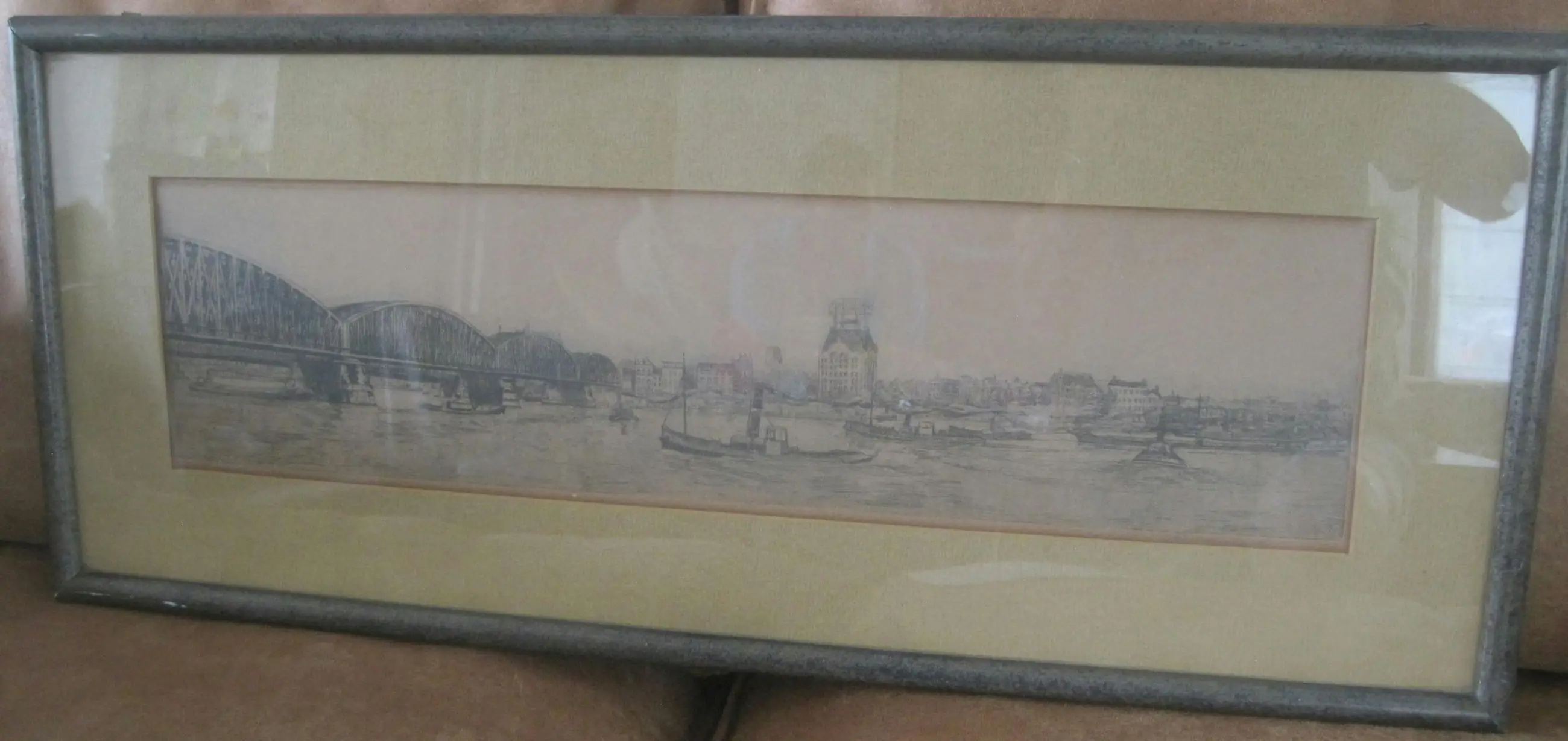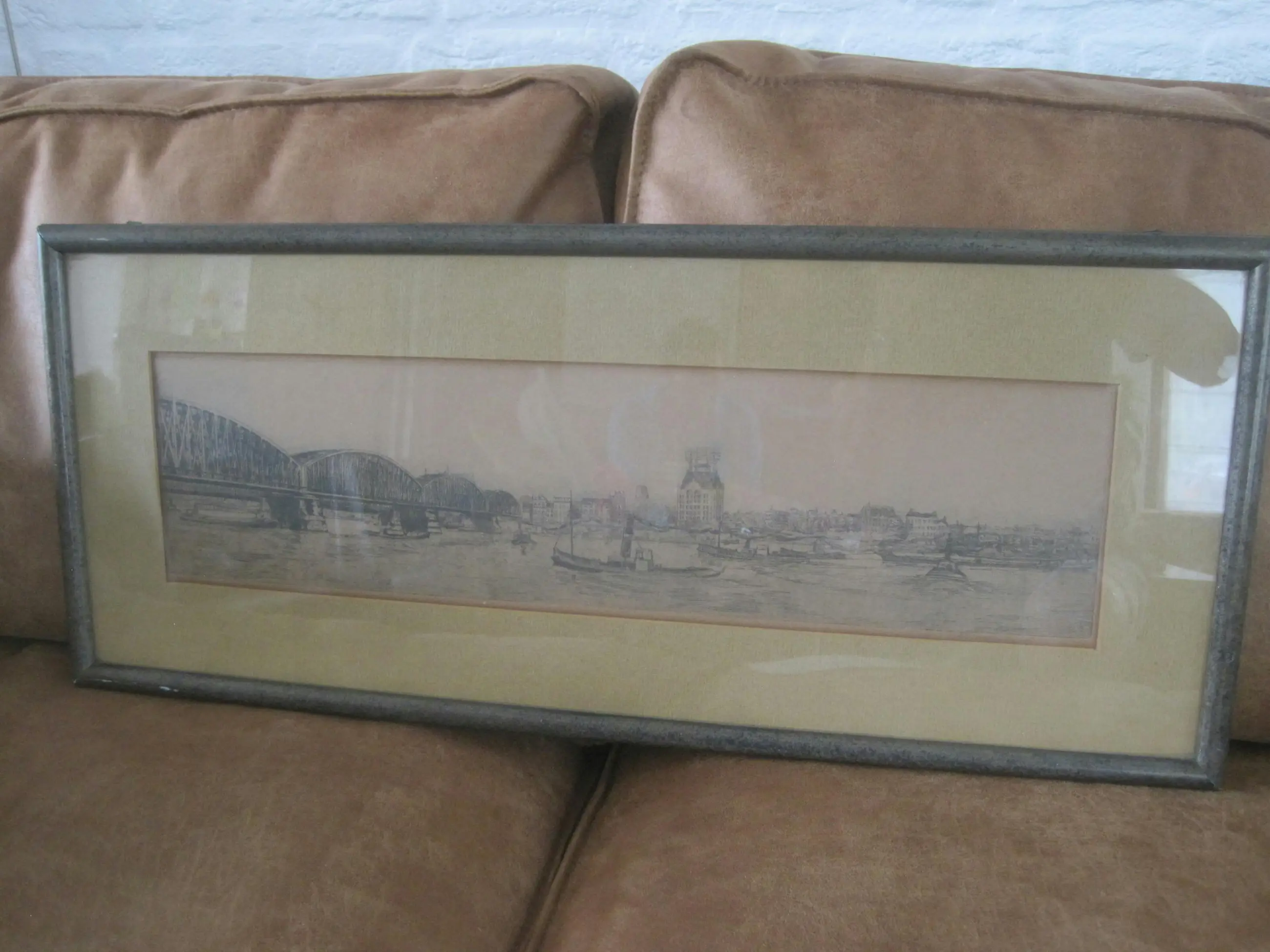 Fraaie en levendige ets met bootjes en de Maasbruggen en het Witte Huis als herkenbare punten. Het geheel verkeert in een originele goede staat. De ets is licht verkleurd. In overleg kan de ets ook gebracht worden.