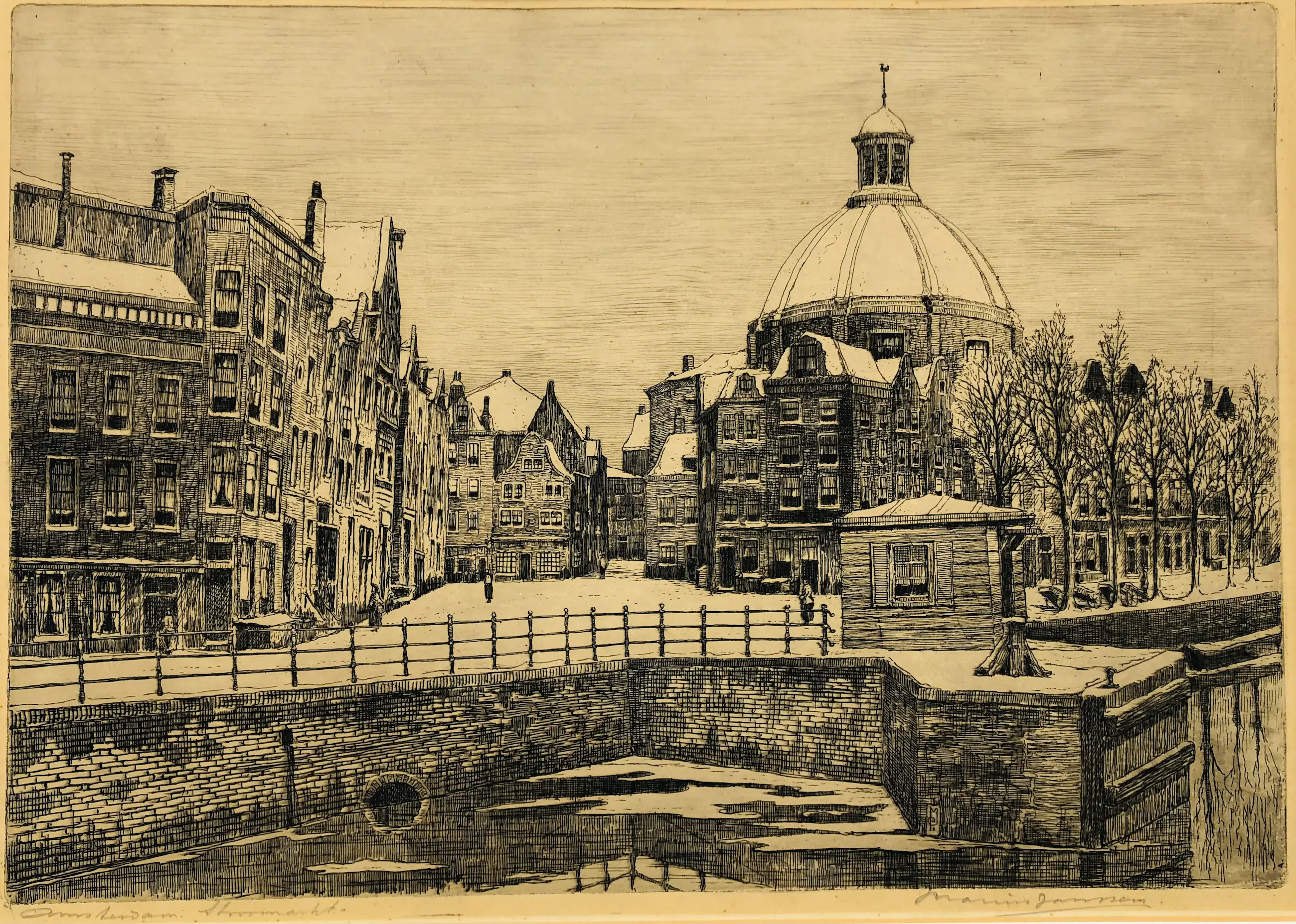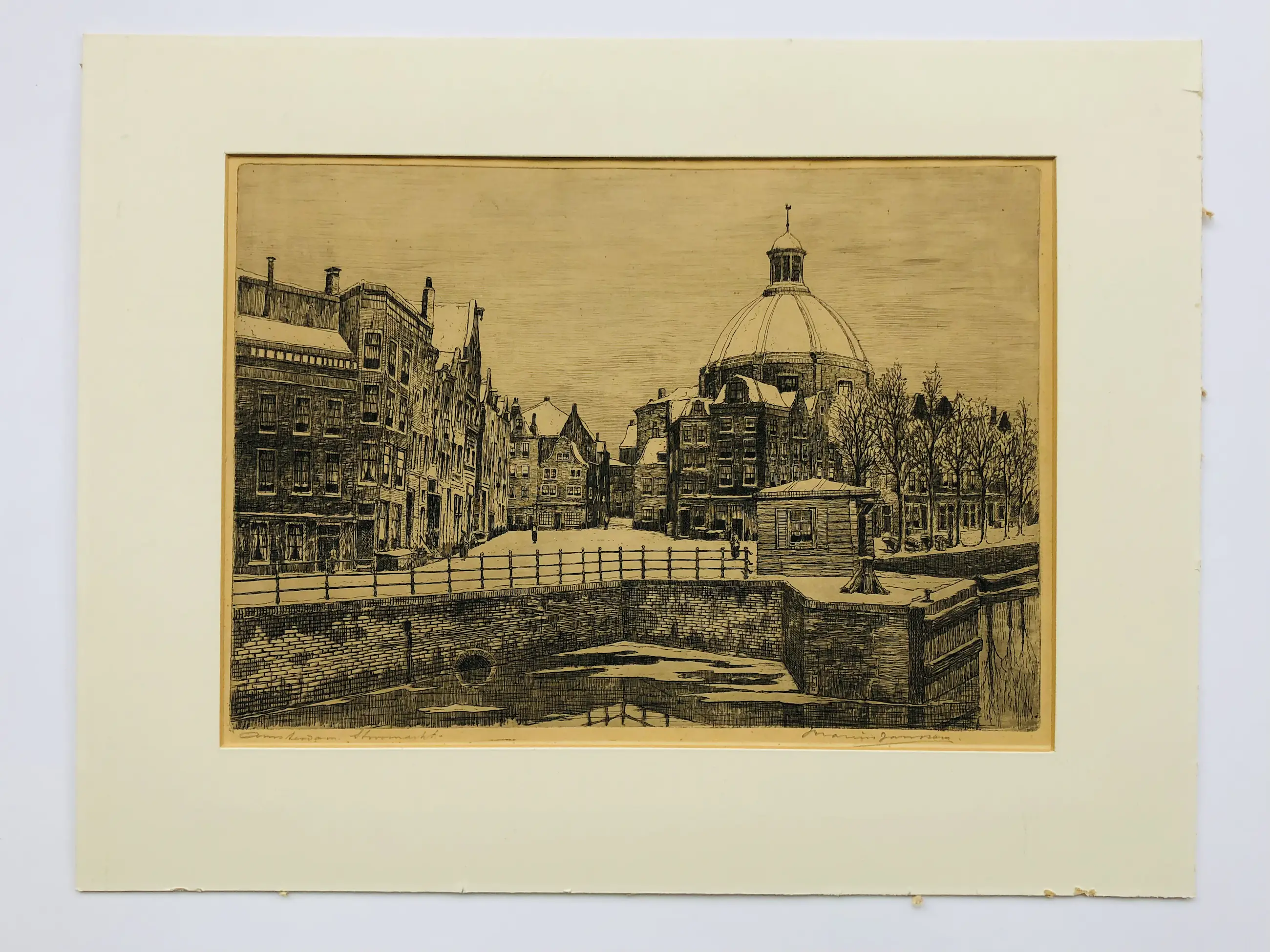Fraaie ets van Marius Johannes Janssen (1885-1957). Werk op leeftijd, is egaal verkleurd.