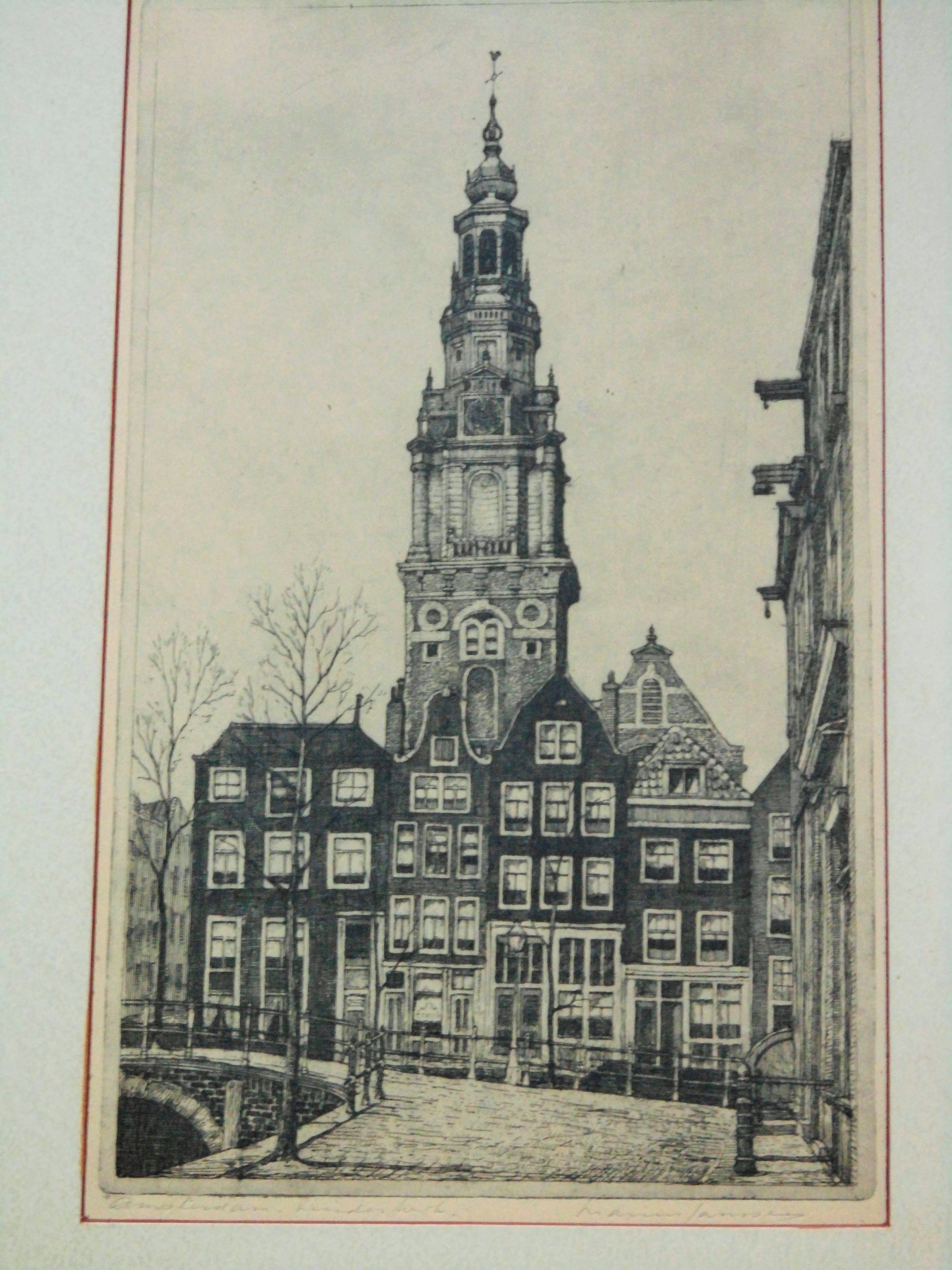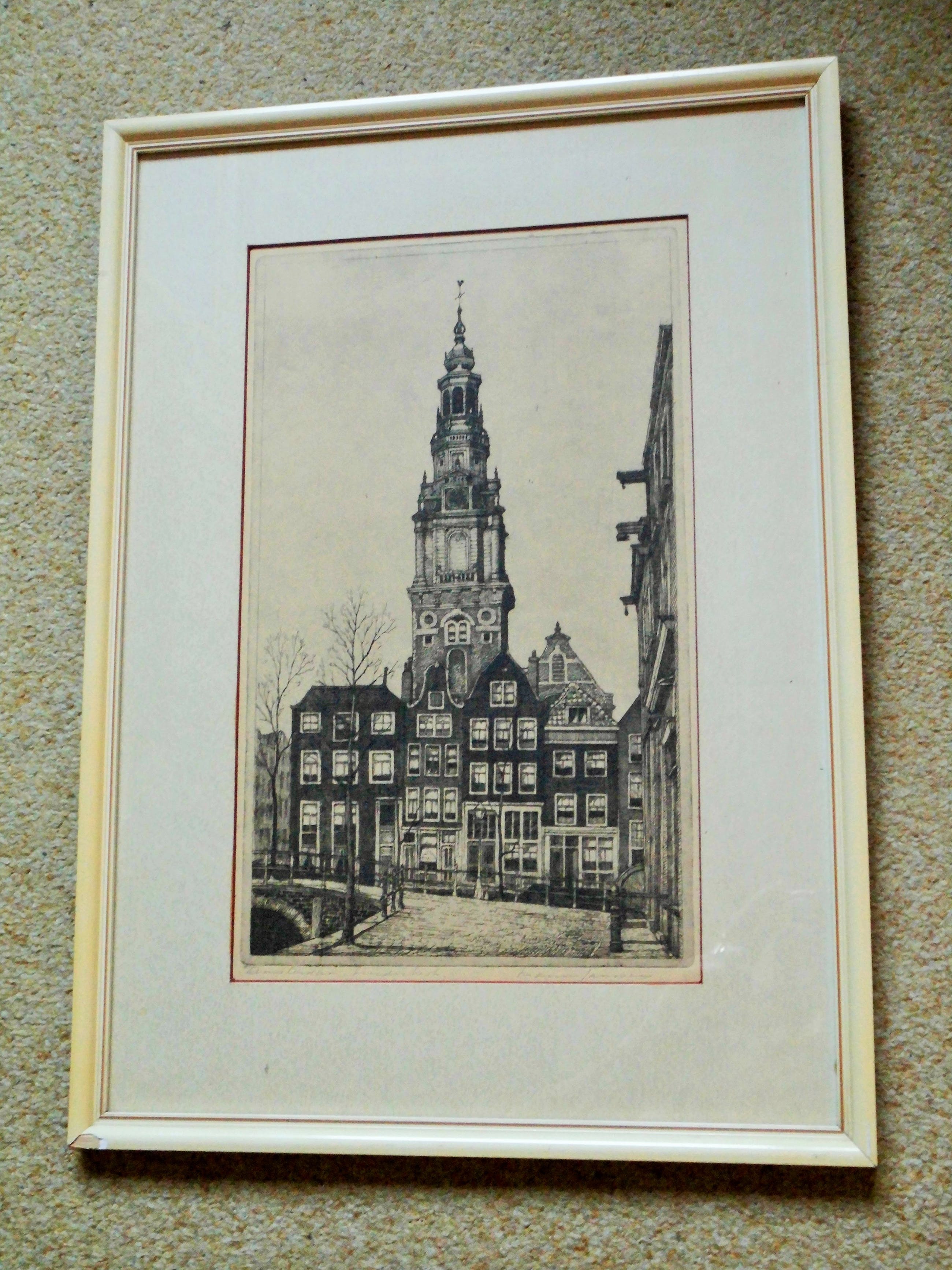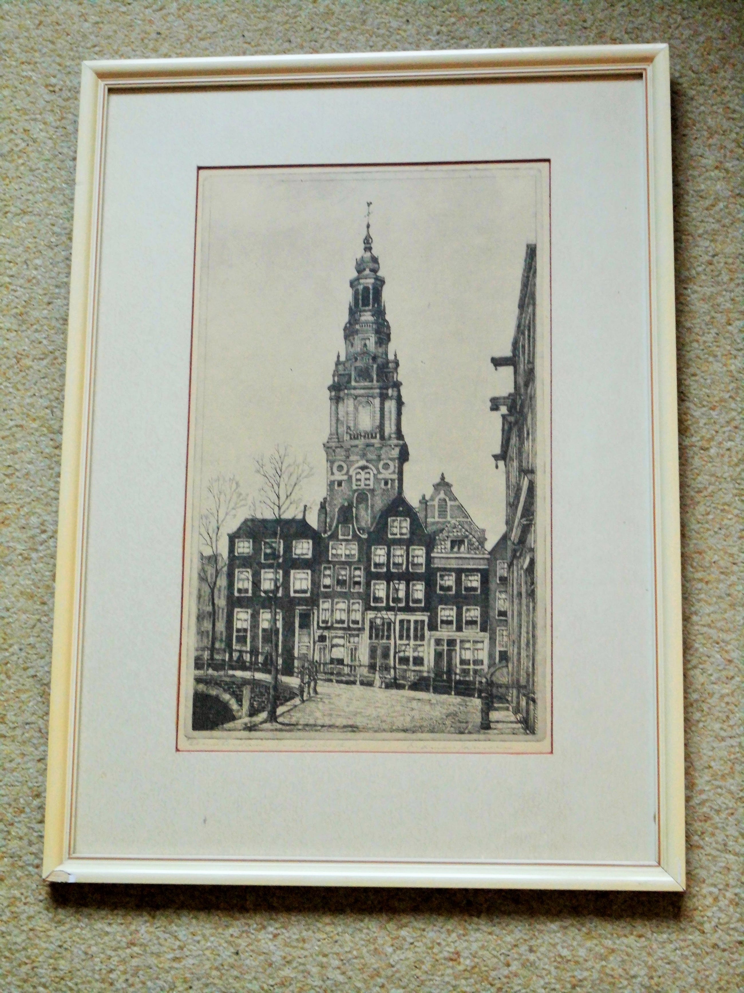 Goede Ets van Marius Janssen "Amsterdam Zuiderkerk" met oude bijpassende lijst met passe partout Lijst linksonderaan stukje af [zie foto] AFMETING lijst = 49 x 36 cm AFMETING ets = 35 x 21 cm Marius Janssen was schilder en etser. Geboren in 1885 te Den Haag, overleden in 1957 te Rotterdam. Janssen staat bekend om zijn stadsgezichten en wordt geroemd om zijn vele etsen van kerken, stadsgezichten en markante gebouwen van Nederlandse steden.
