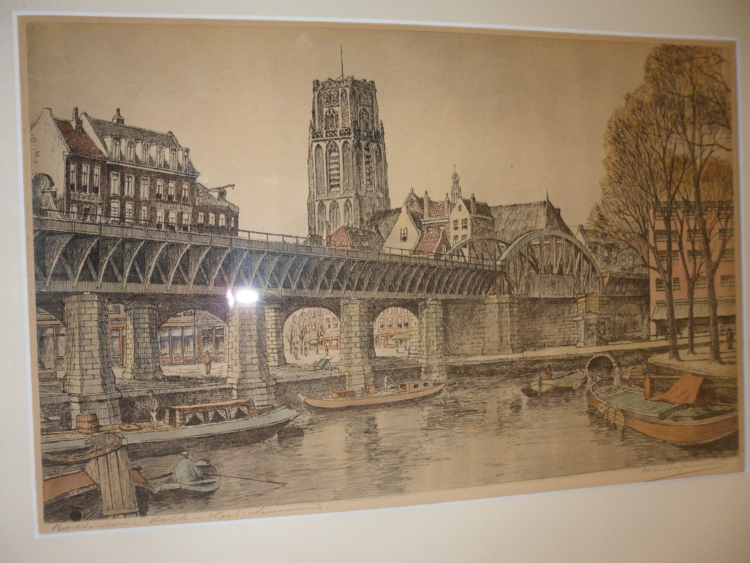 Grote ingekleurde ets van Marius Johannes Janssen Den Haag 1885-1957 Rotterdam)