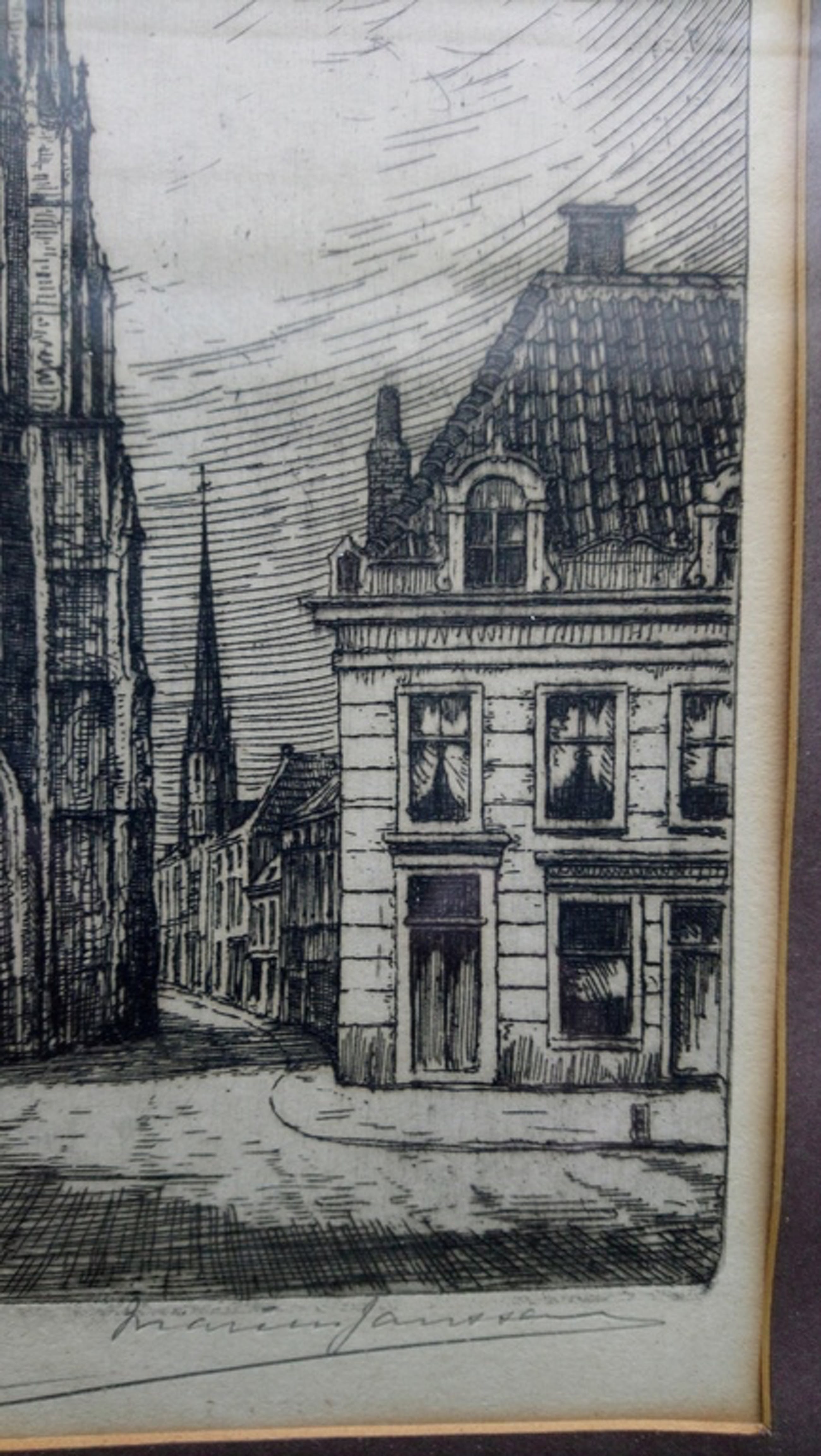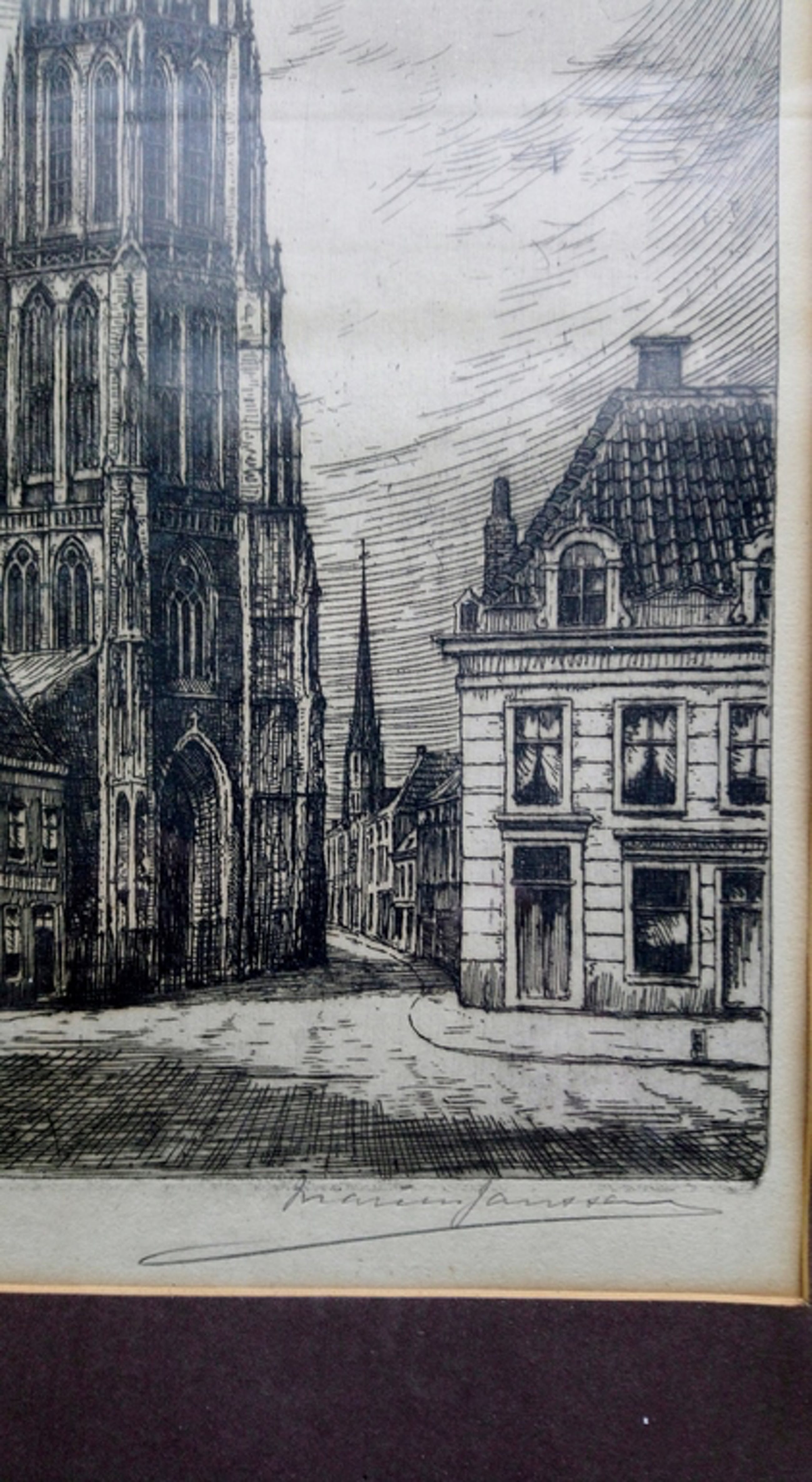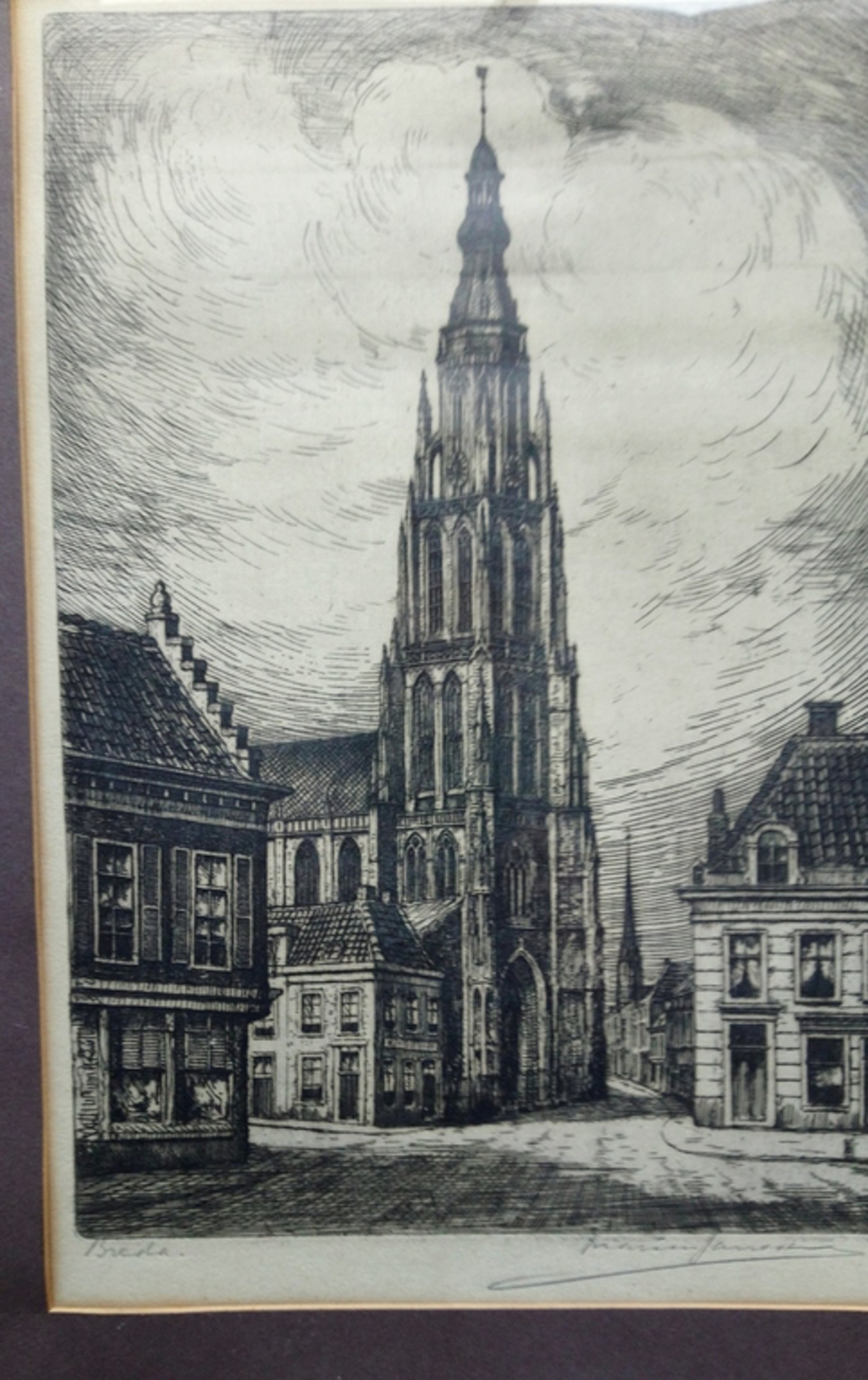 Met potlood op werk gesigneerd en ingelijst.