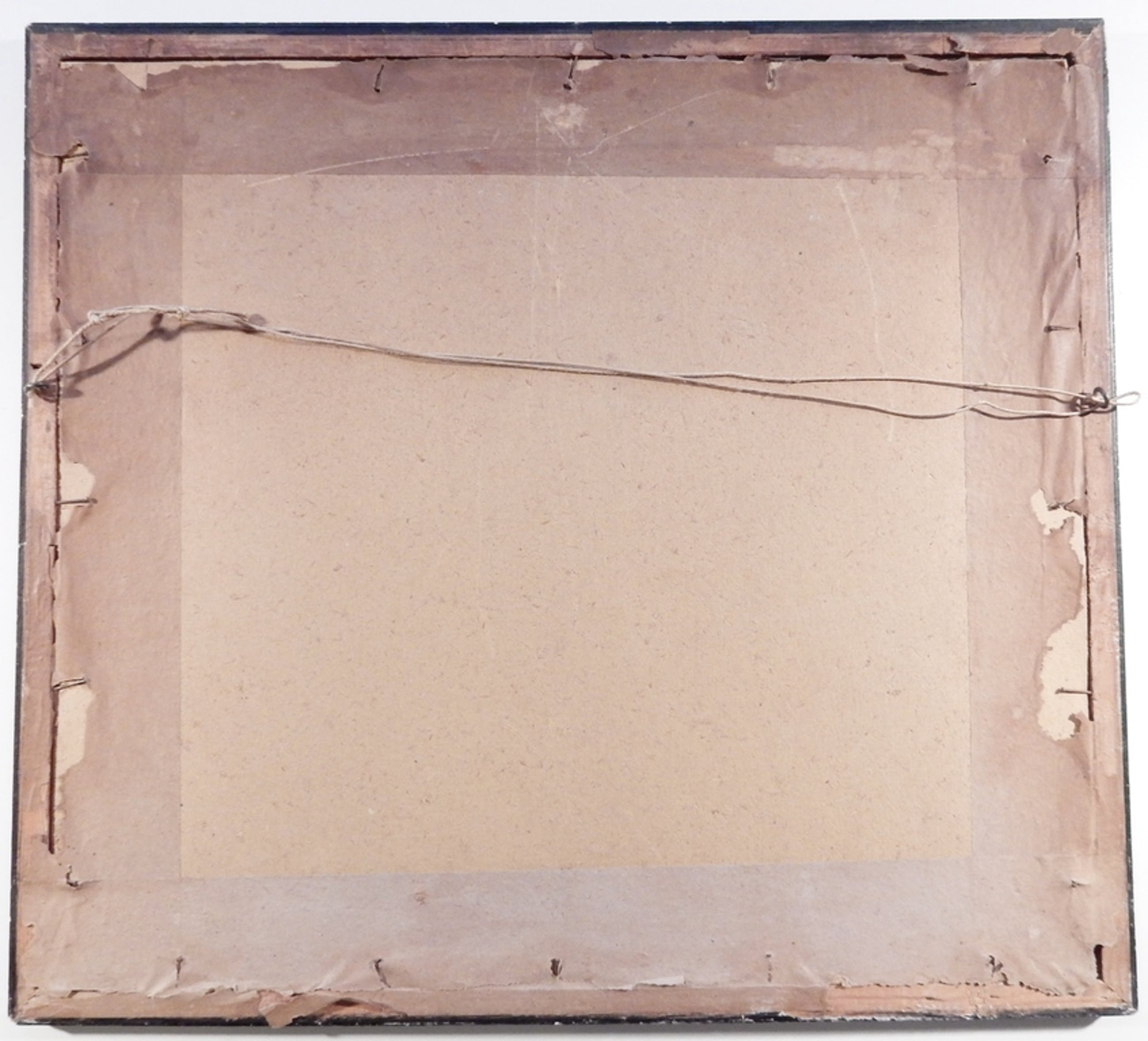 Gelijst in een oude lijst met passe-partout met houtfineer.