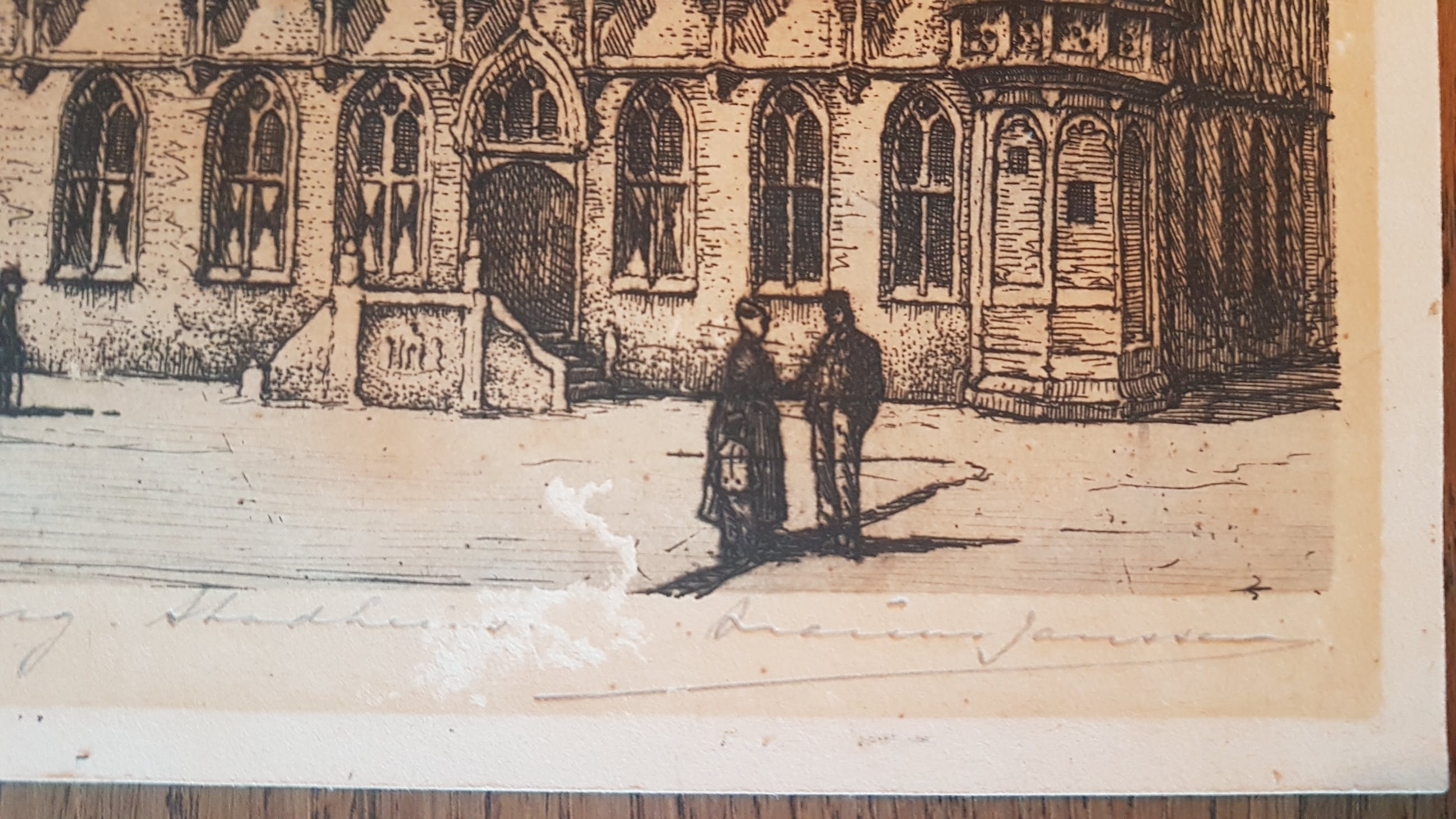 Ets gemaakt rond 1920 door de bekende etser Marius Johannes Janssen. Ondanks kleine beschadigingen, een erg mooie afbeelding.
