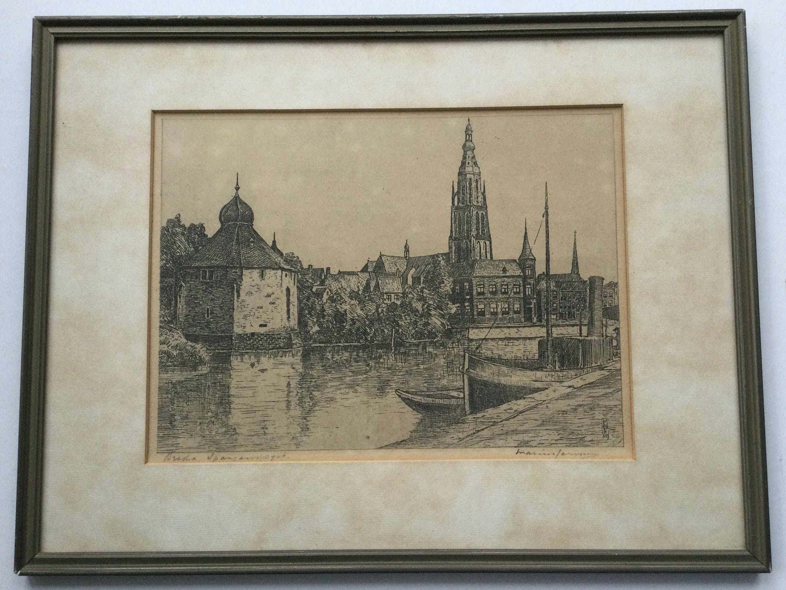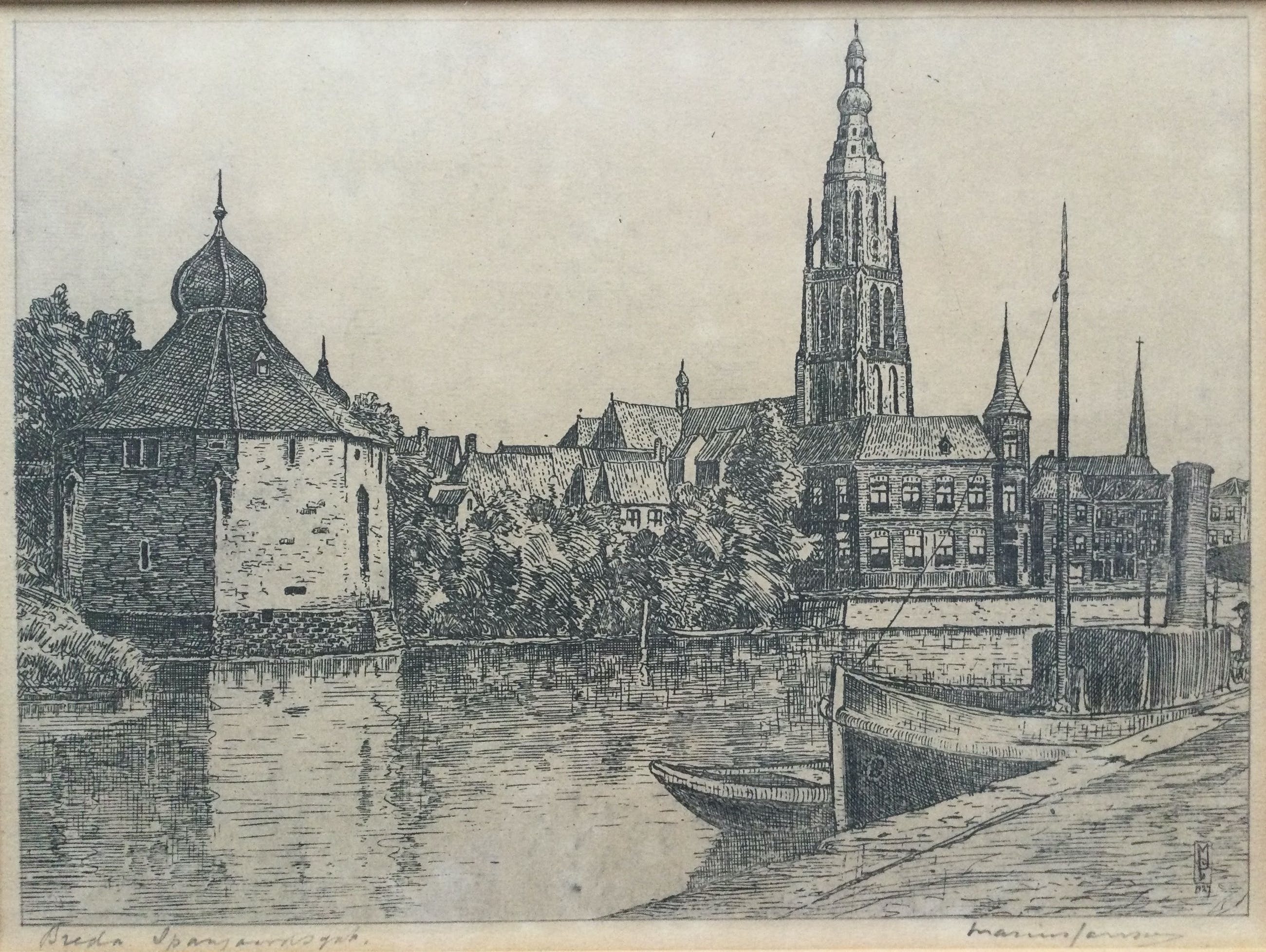 Deze ets geeft een gezicht op het Spanjaardsgat te Breda met rechts het oude postkantoor aan de haven en de Grote kerk. Van deze ets bestaan uiteenlopende versies waarbij de afbeelding groter of kleiner is