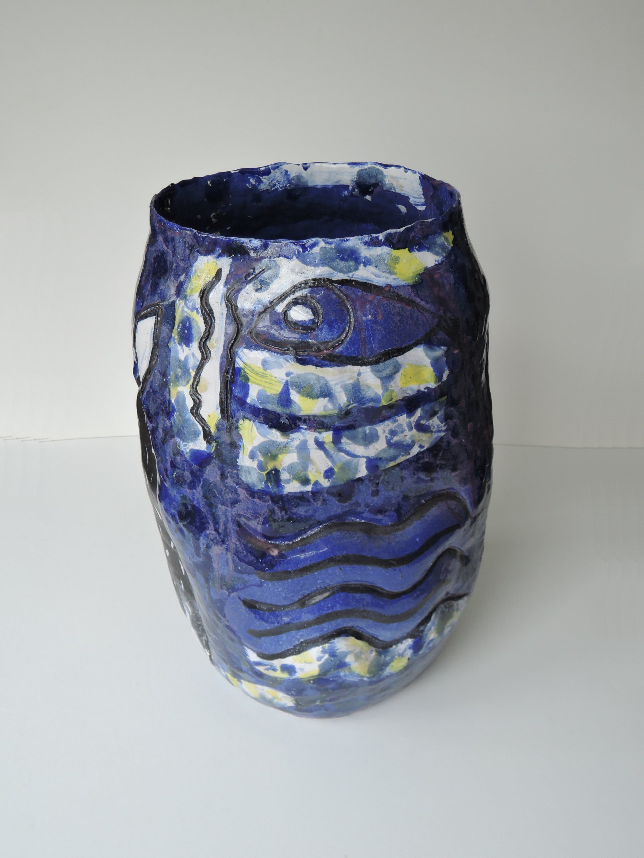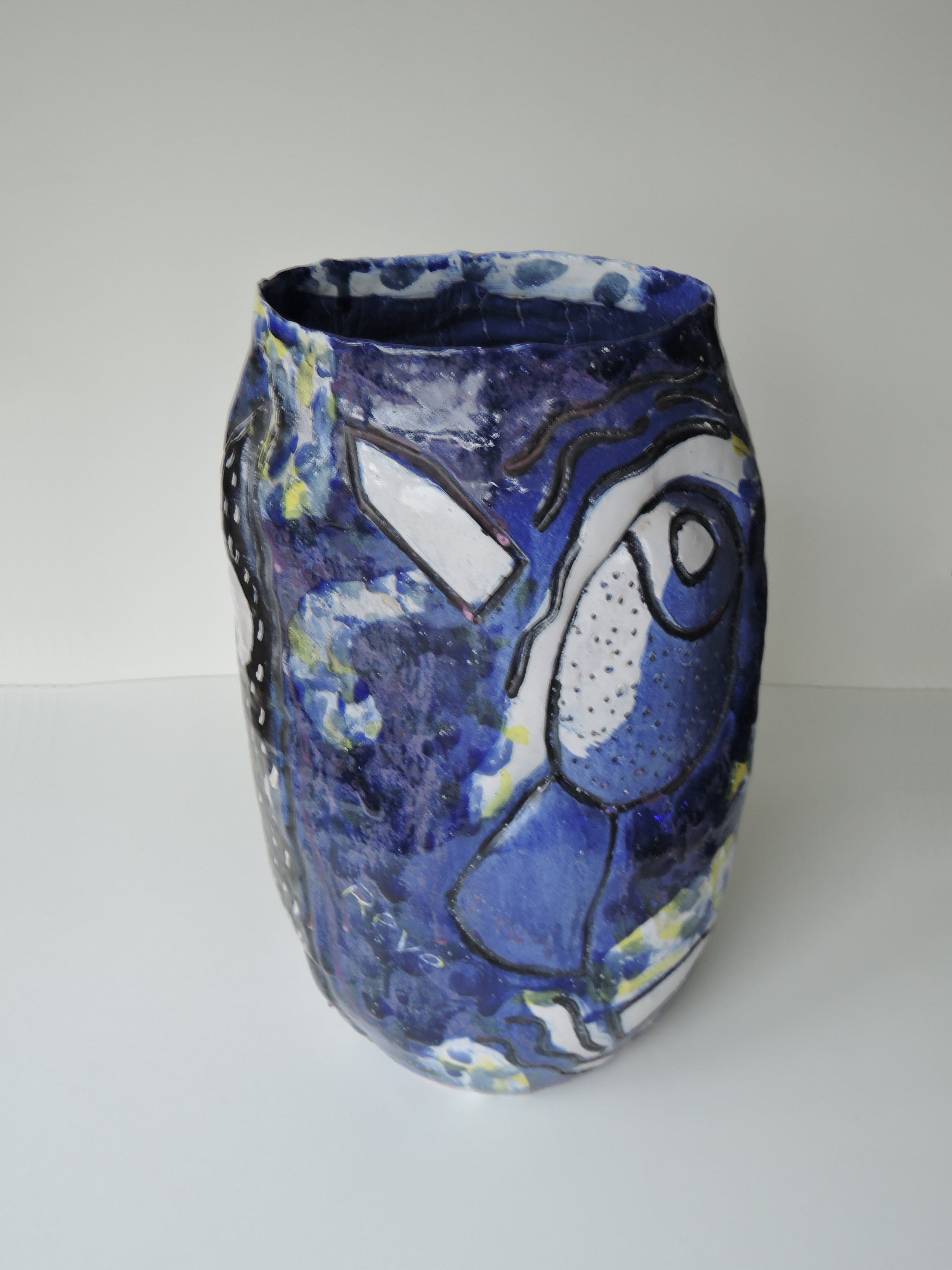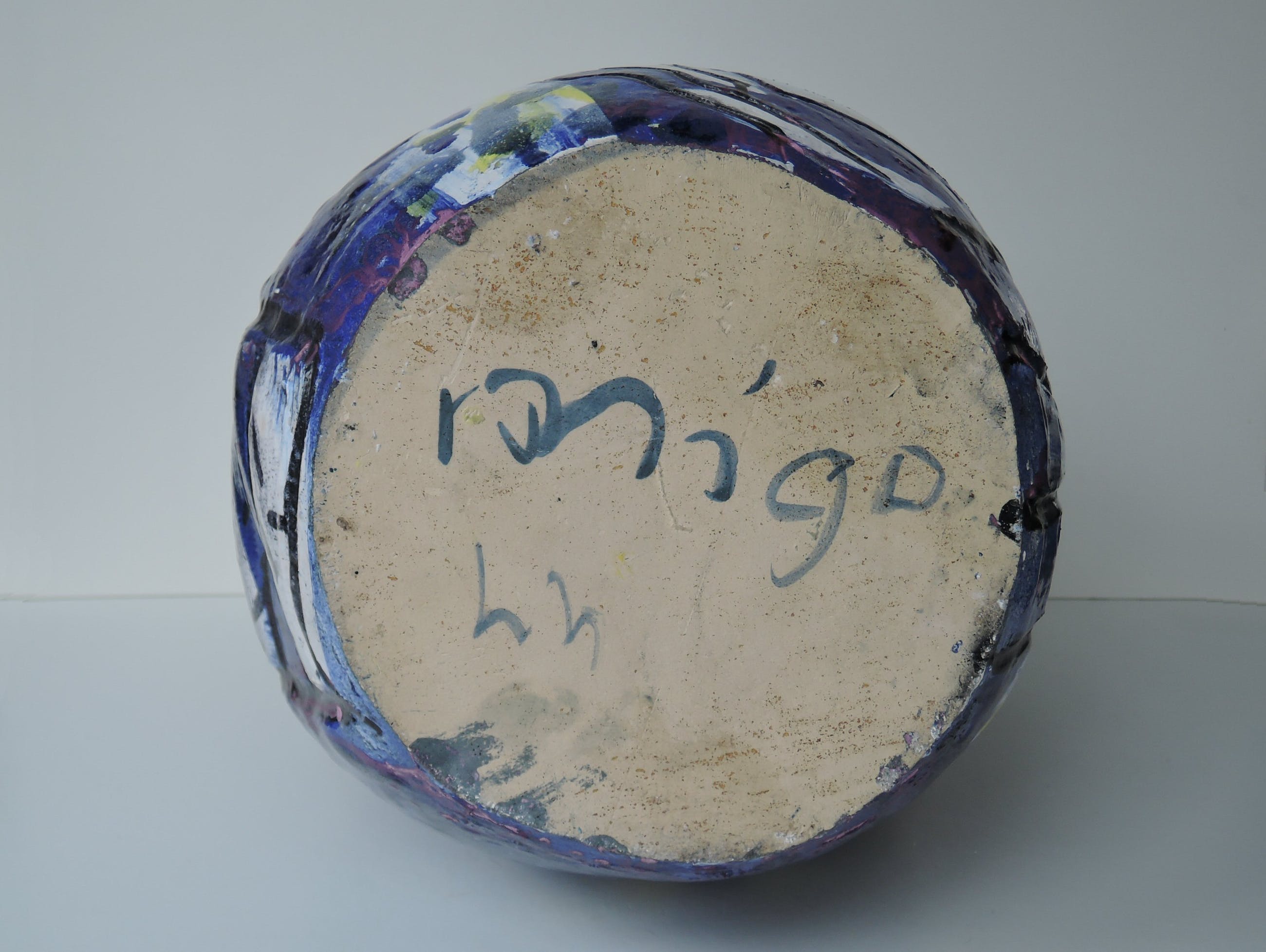 Een uniek, expressief, poëtisch, monumentaal werk van kunstenaar Marja Hooft uit 1990, geïnspireerd door het boek De Avonden van Gerard Reve. Zijn naam is onderdeel van de beschildering. Het werk is gesigneerd mh90. Beschildering en reliëf vormen samen een levendig en harmonieus geheel. Het object heeft prachtige kleuren: indigo, paars, lila, zwart, wit, geel en lichtblauw. Het werk weegt ca. 8 kg. Nadere informatie over Marja Hooft vindt u op haar website www.marjahooft.nl