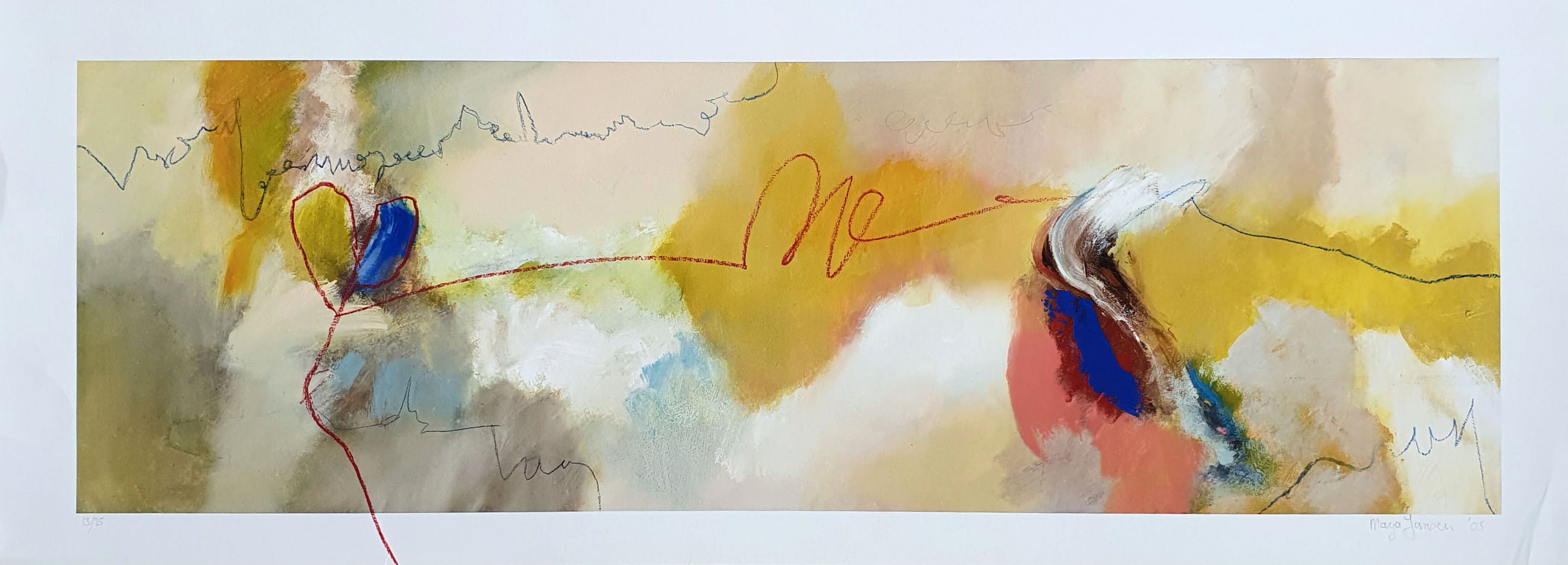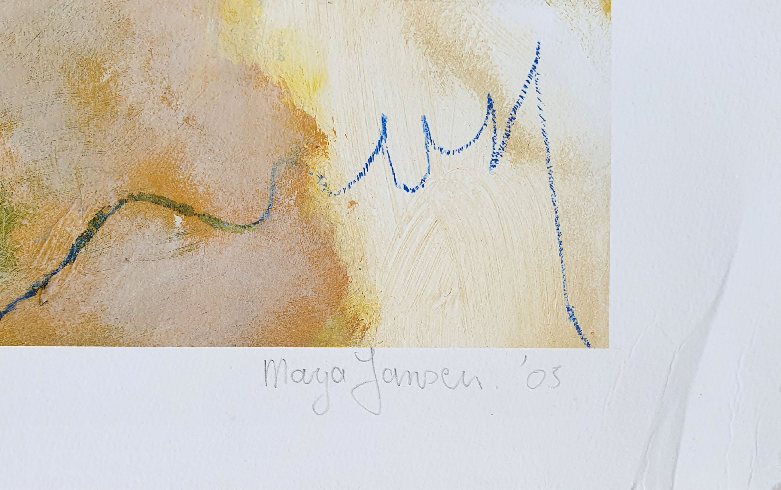 Fraaie zeefdruk van Marja Jansen. Het werk is genummerd (13/25) en handgesigneerd. De pigmentdruk is met de hand door de kunstenaar bewerkt.