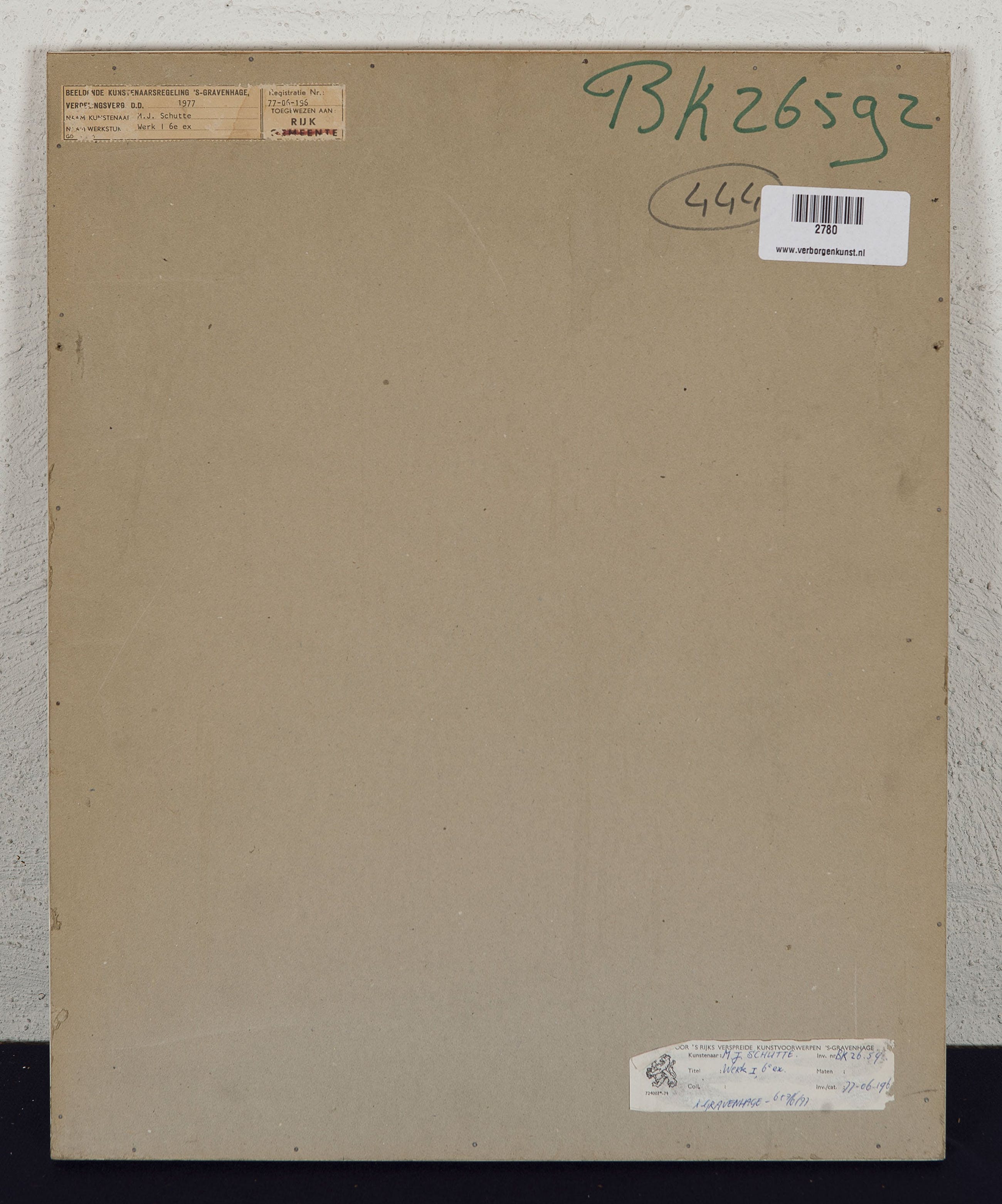 Herkomst: BKR Den Haag (Het kunstwerk is afgevoerd uit de rijkscollectie in 2018)