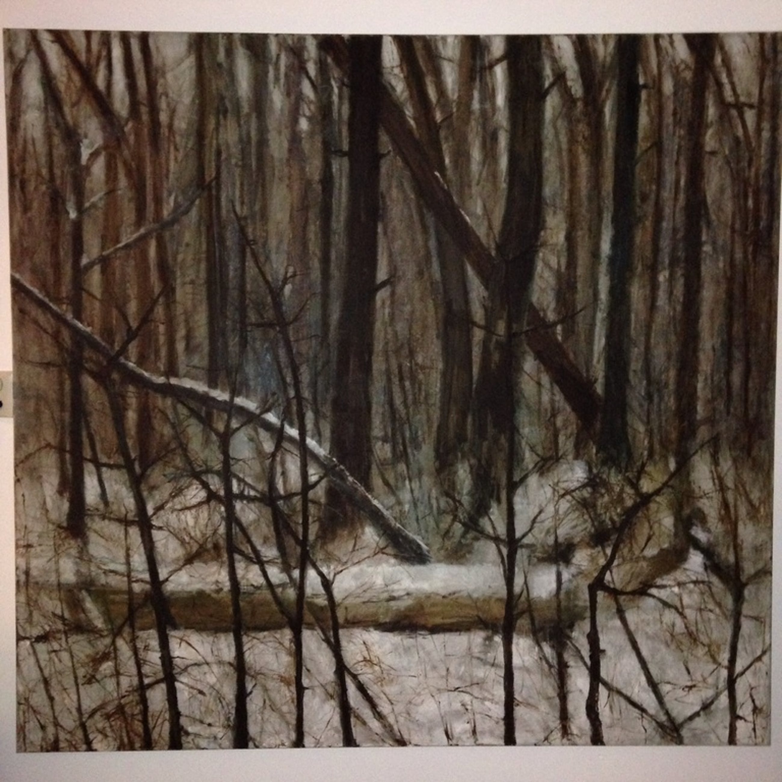 Doek van Marjan Huizing uit 1999. Afmeting 151 (h) bij 160 (b) cm. Marjan heeft op meerdere plekken geëxposeerd (Nederland en buitenland) en woont en werkt in Roden. Zie ook www.marjannancyhuizing.nl voor meer werk van haar hand.