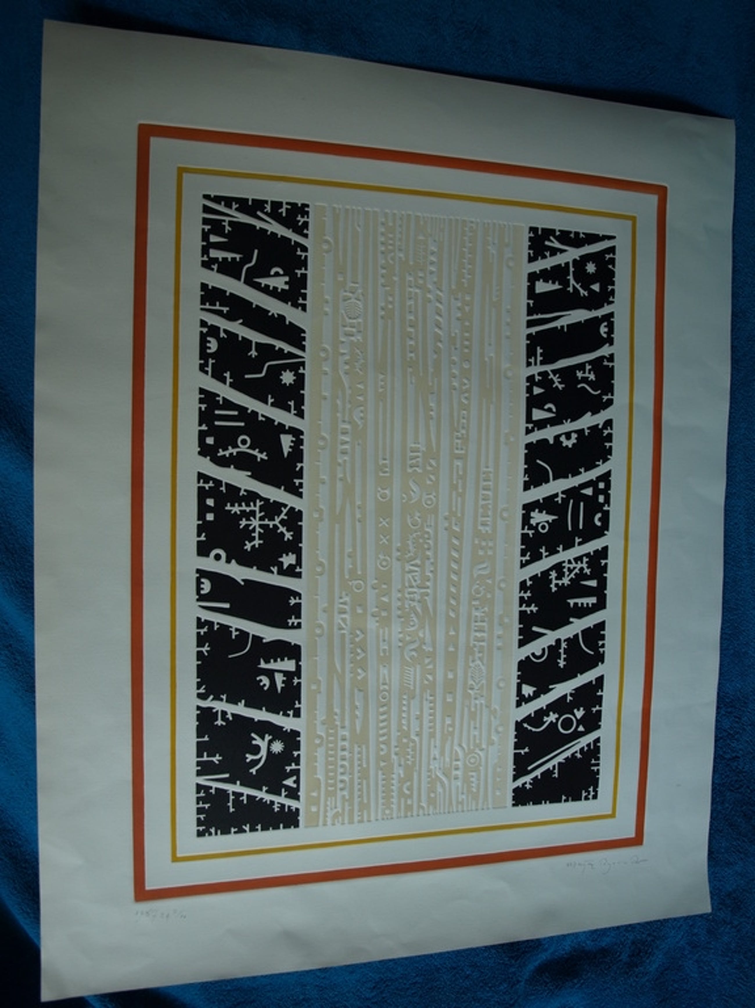 Een groot reliëfdruk-werk van Marjan Pogacnik (59 x 74,5 cm).