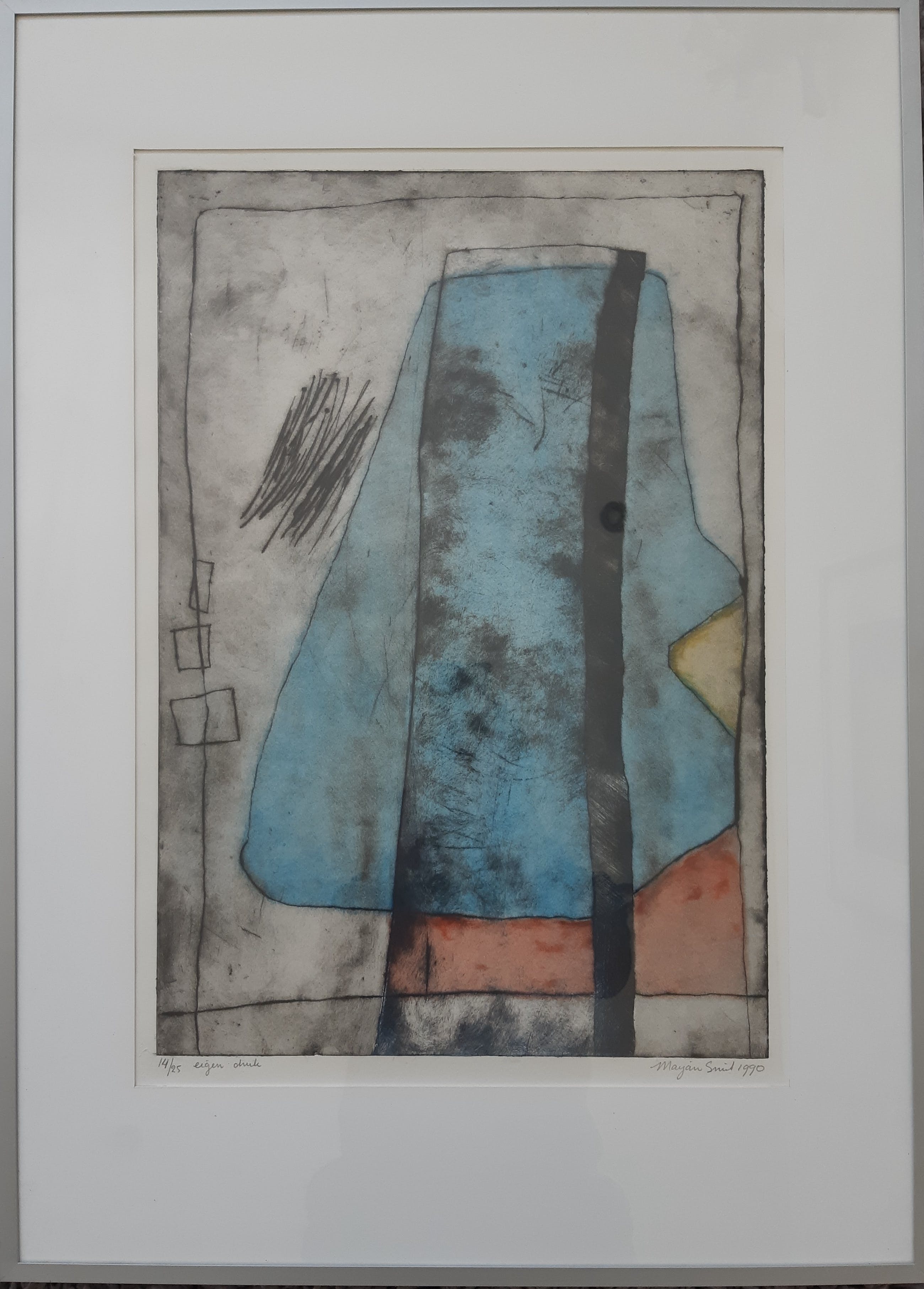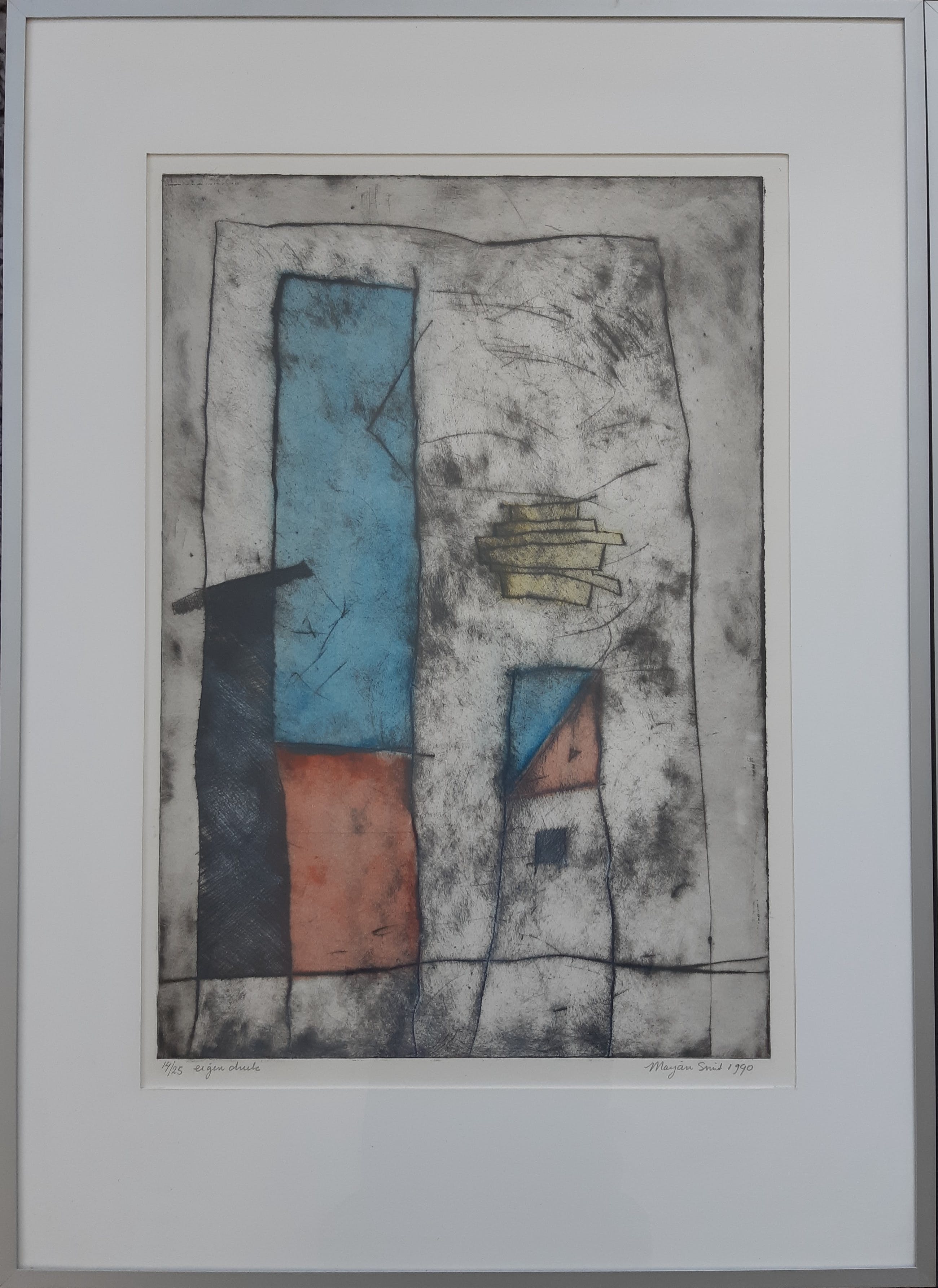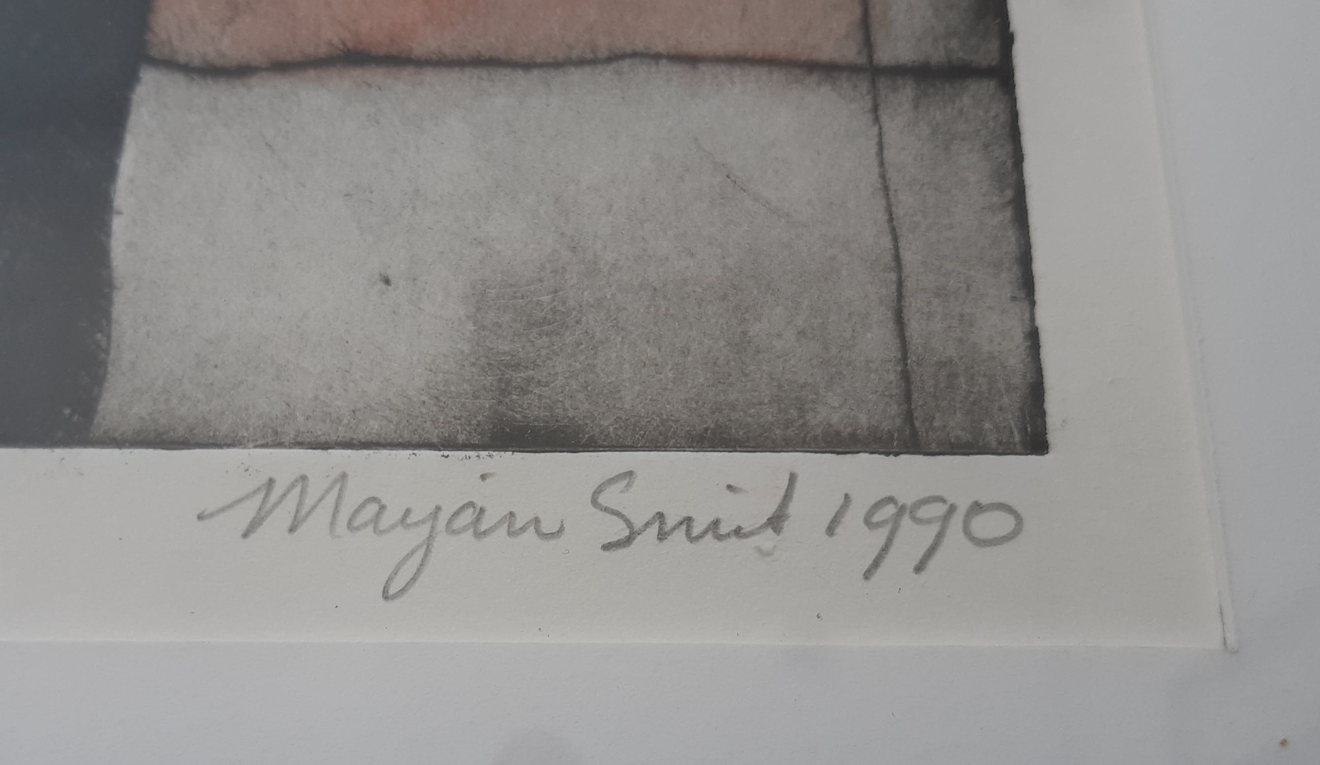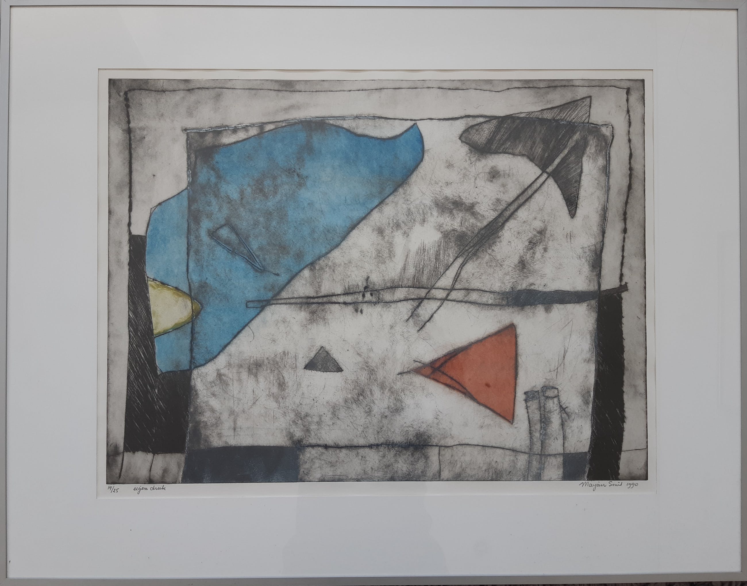 Drie kleurenetsen van Marjan Smit, samen een drieluik vormend. De etsen zijn alle met potlood gesigneerd, gedateerd en genummerd 14 / 25. De etsen zijn afzonderlijk ingelijst in Barth-lijsten van respectievelijk 71 x 51 cm (2 x) en 71 x 91 cm. De afbeeldingen meten 49 x 33 cm (2 x) en 49 x 65 cm. De conditie van het geheel is uitstekend.