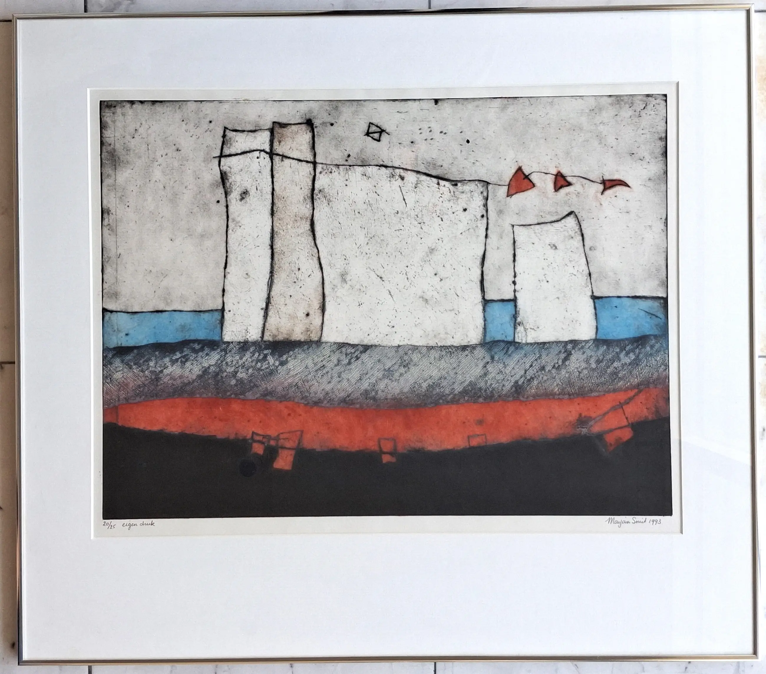 Grote kleurenets van Marjan Smit. Met potlood gesigneerd, gedateerd, genummerd en geannoteerd eigen druk. Ingelijst in aluminium lijst. Het geheel verkeert in nieuwstaat.