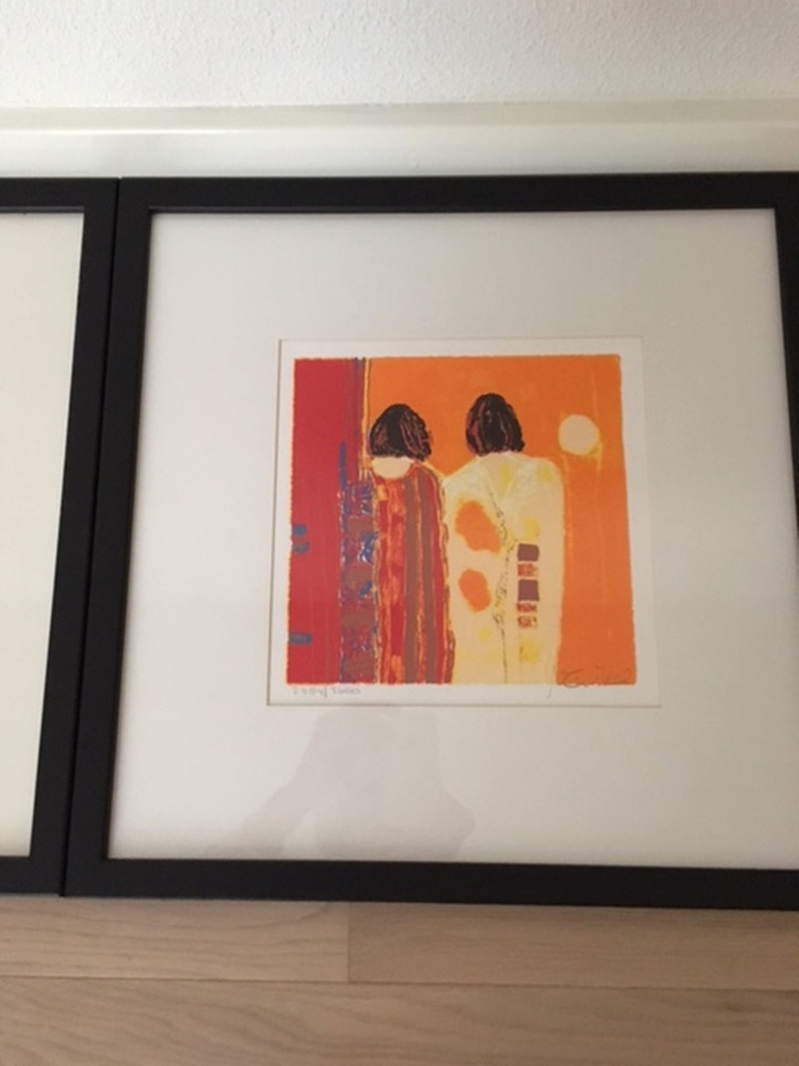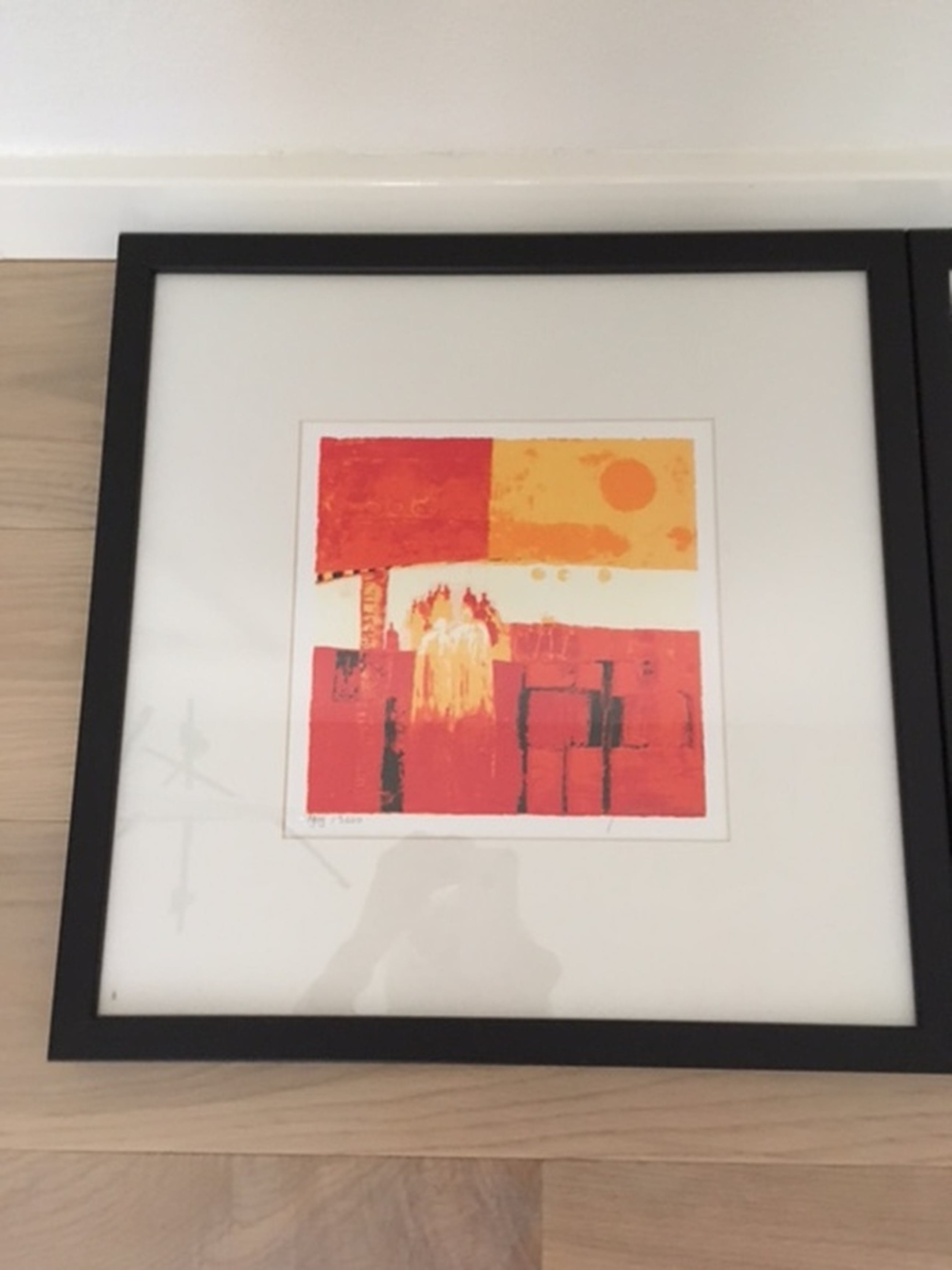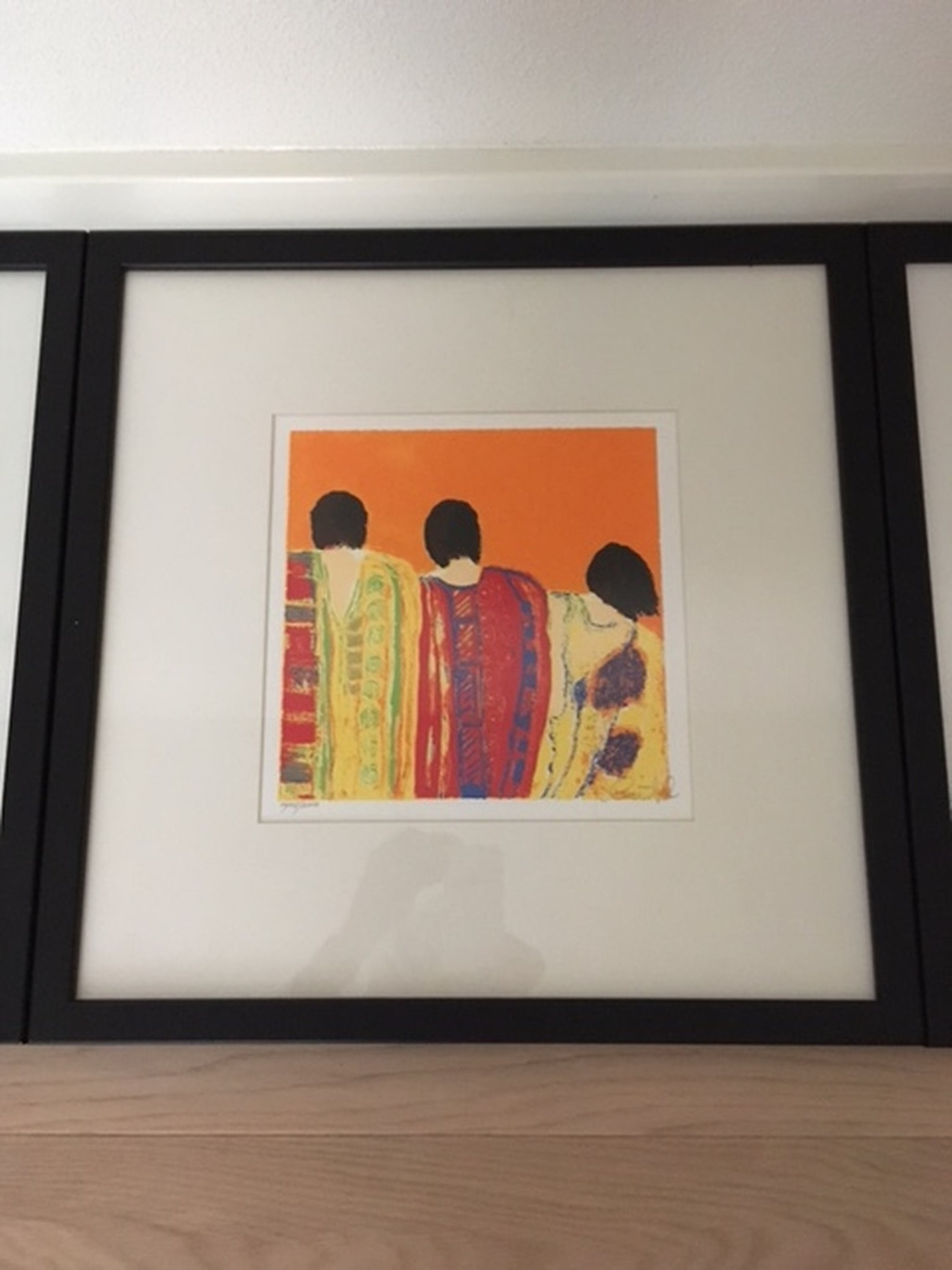 Drie grafieken, ingelijst, passe-partout, zwarte houten lijst, oplage 3000, genummerd en gesigneerd met potlood.