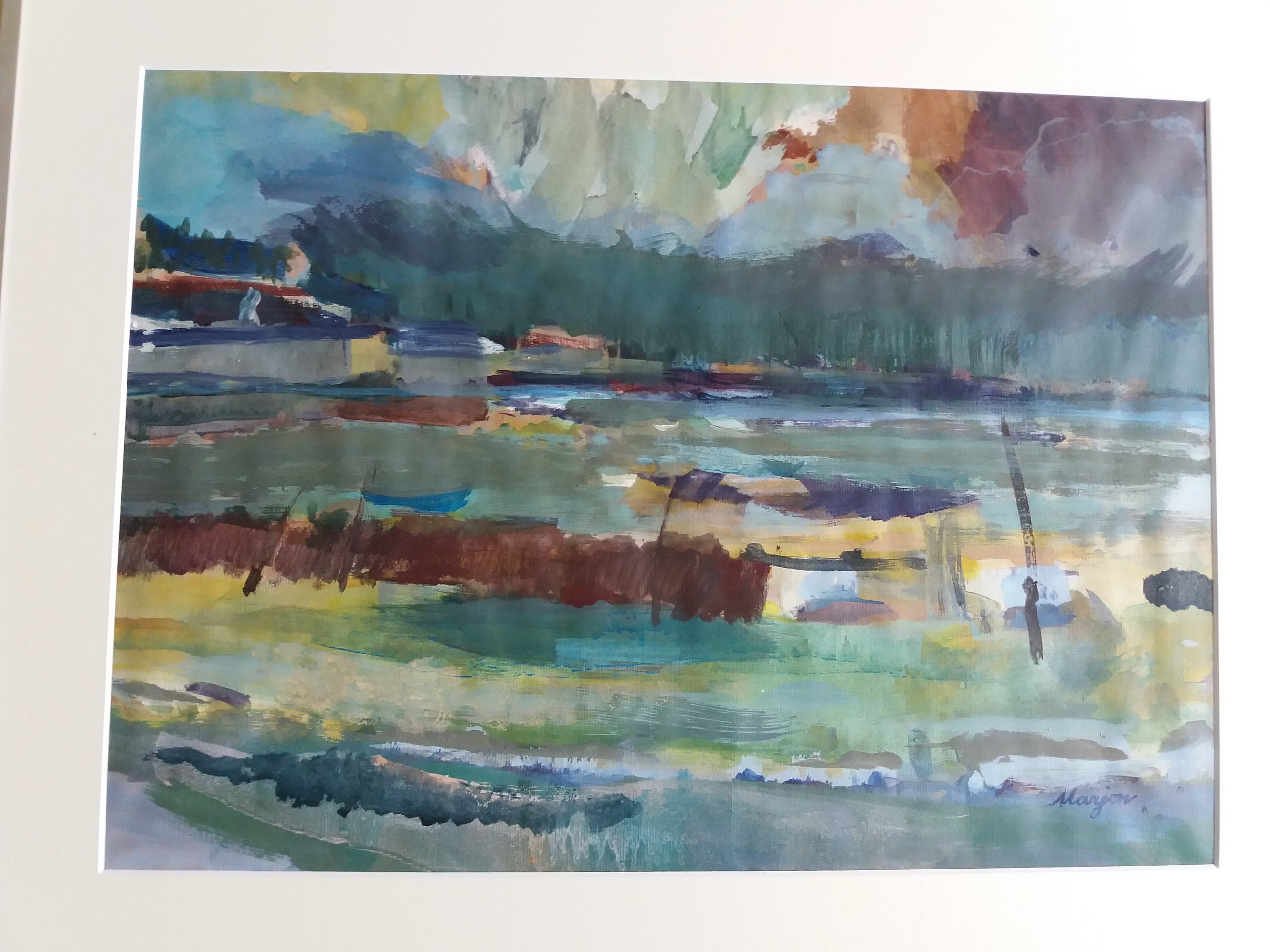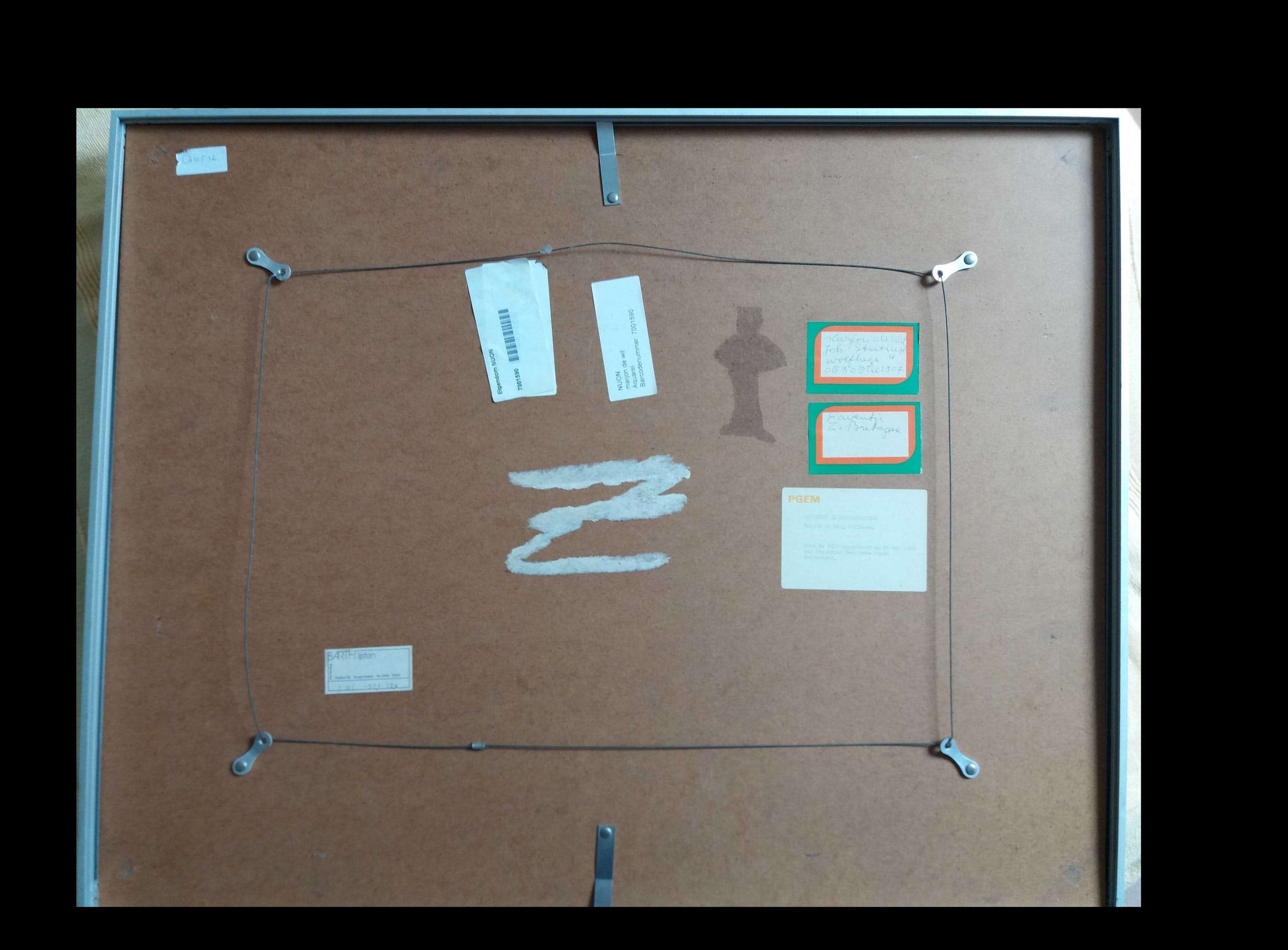 Het werk is in een nieuw passe-partout geplaatst (voor- en achterkant.