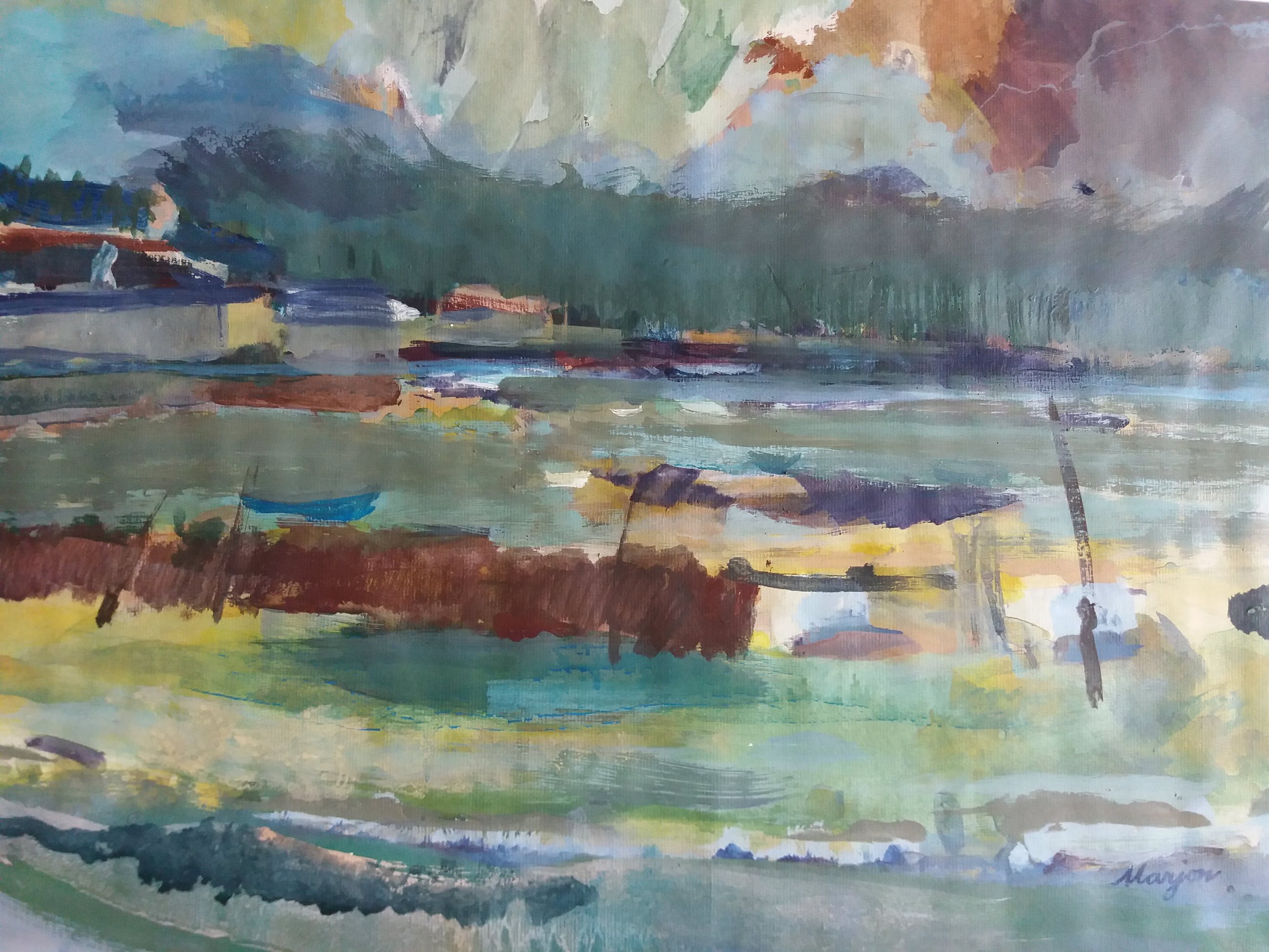 Kenmerkende gouache van de kust van Frankrijk. Datering geschat op 70-er jaren.