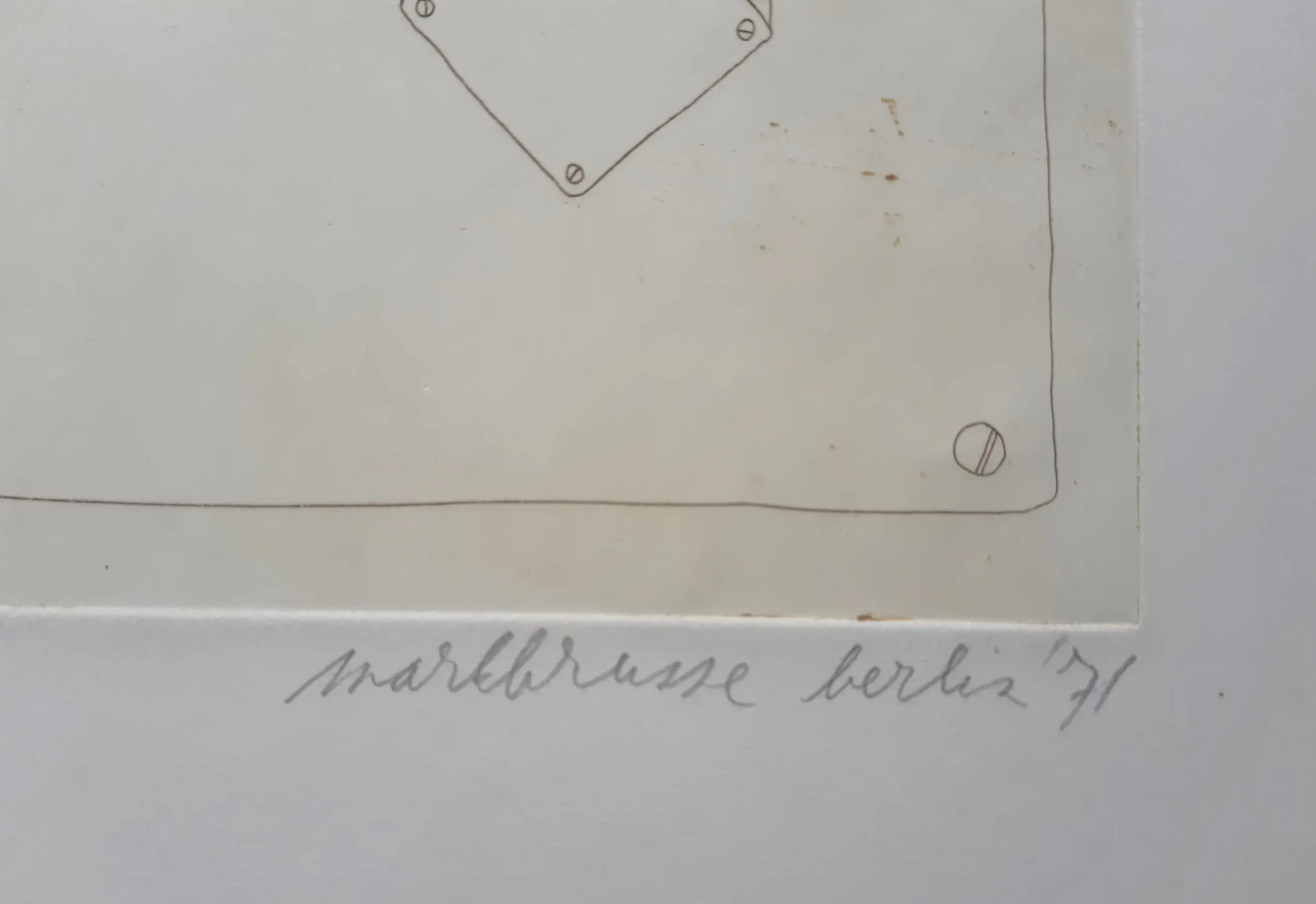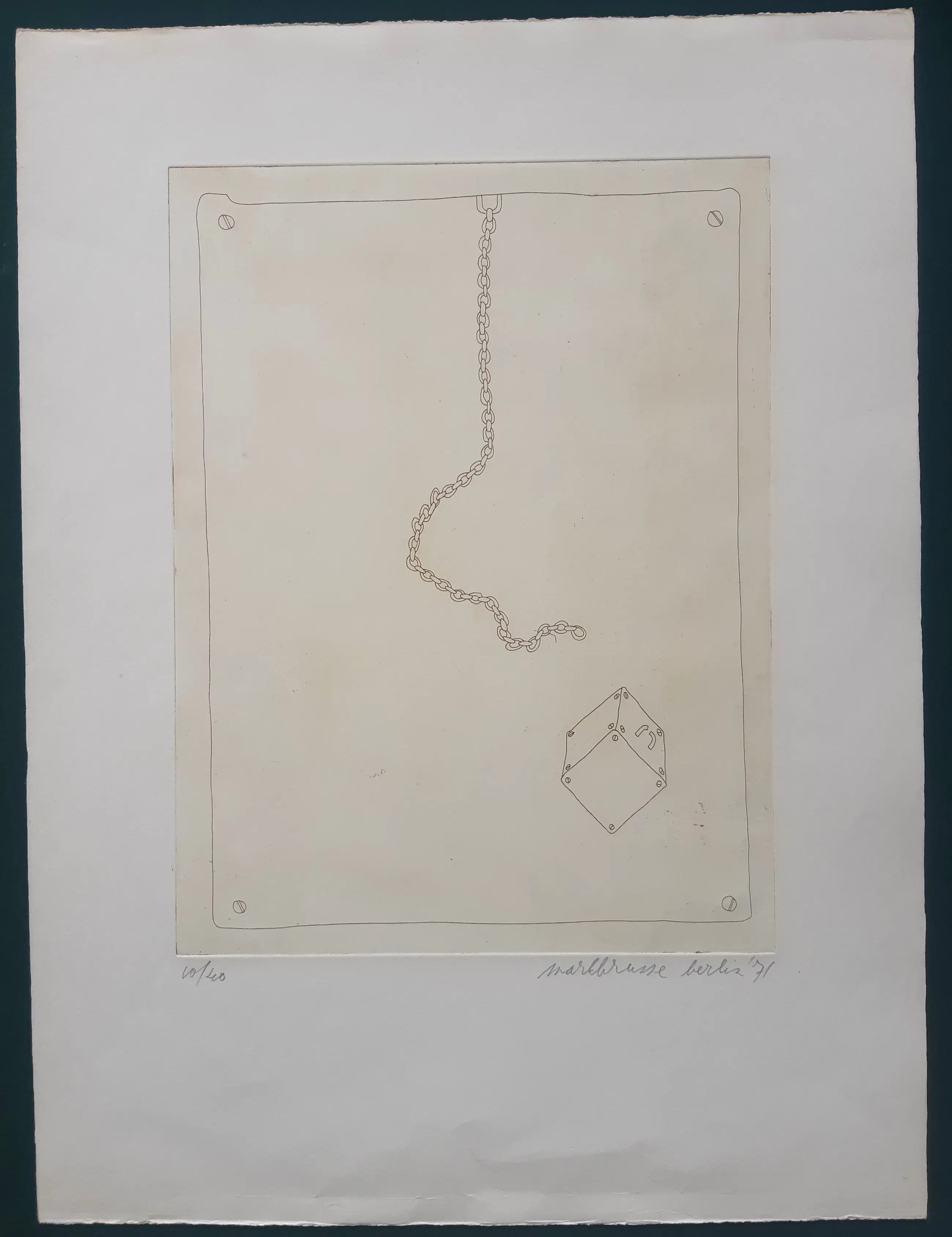 Ets van Mark Brusse, met potlood door de maker gesigneerd, genummerd en gedateerd. De afbeelding meet 42 x 32 cm en is in uitstekende conditie. In de baldrand onder lichte kreuk (zie foto).