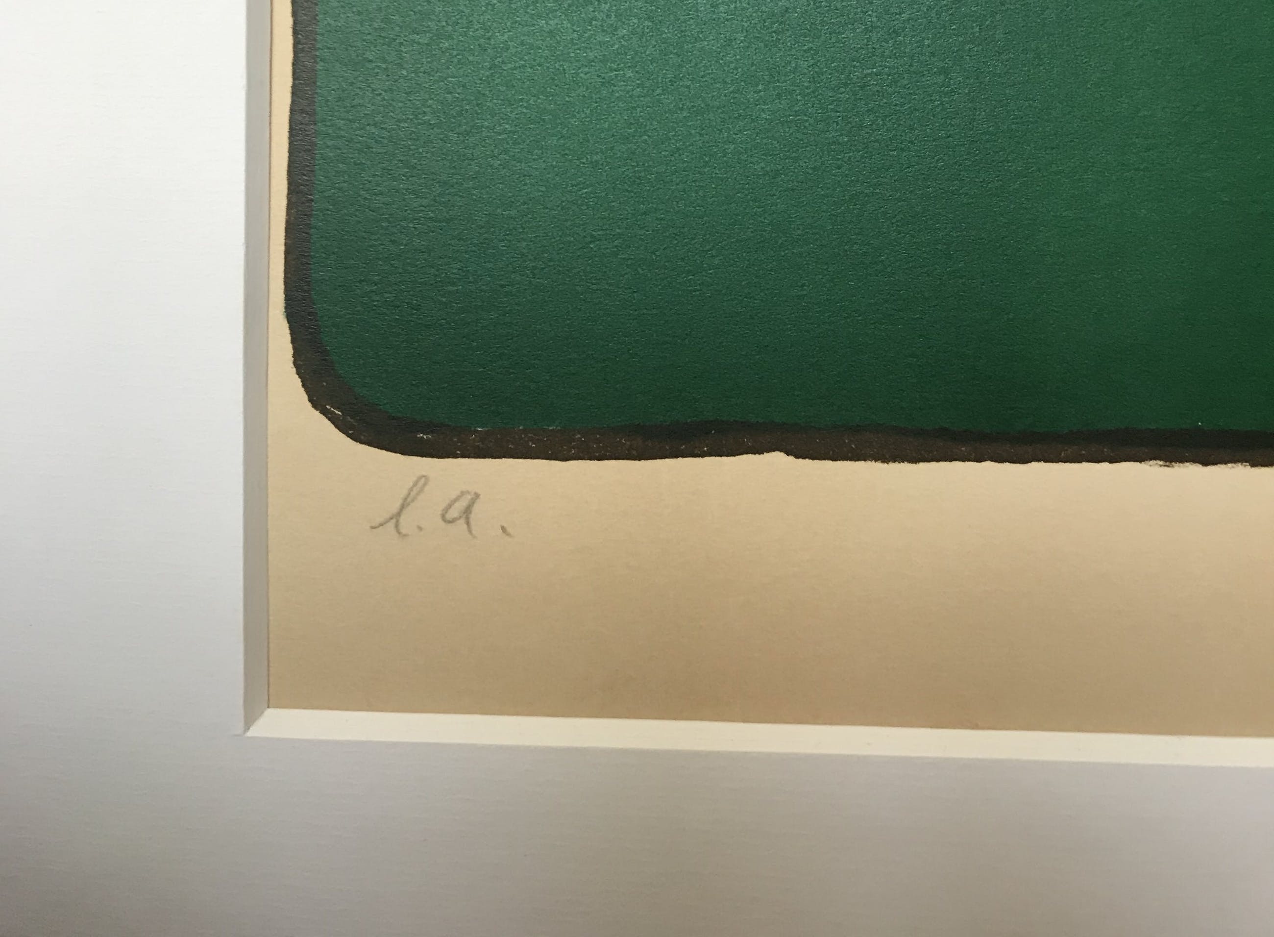Lithografie van Mark Brusse uit zijn ‘Berlijnse periode’. Zonder titel. Een ongenummerd E.A. (épreuve d’artiste) exemplaar in een zuurvrij passe partout.