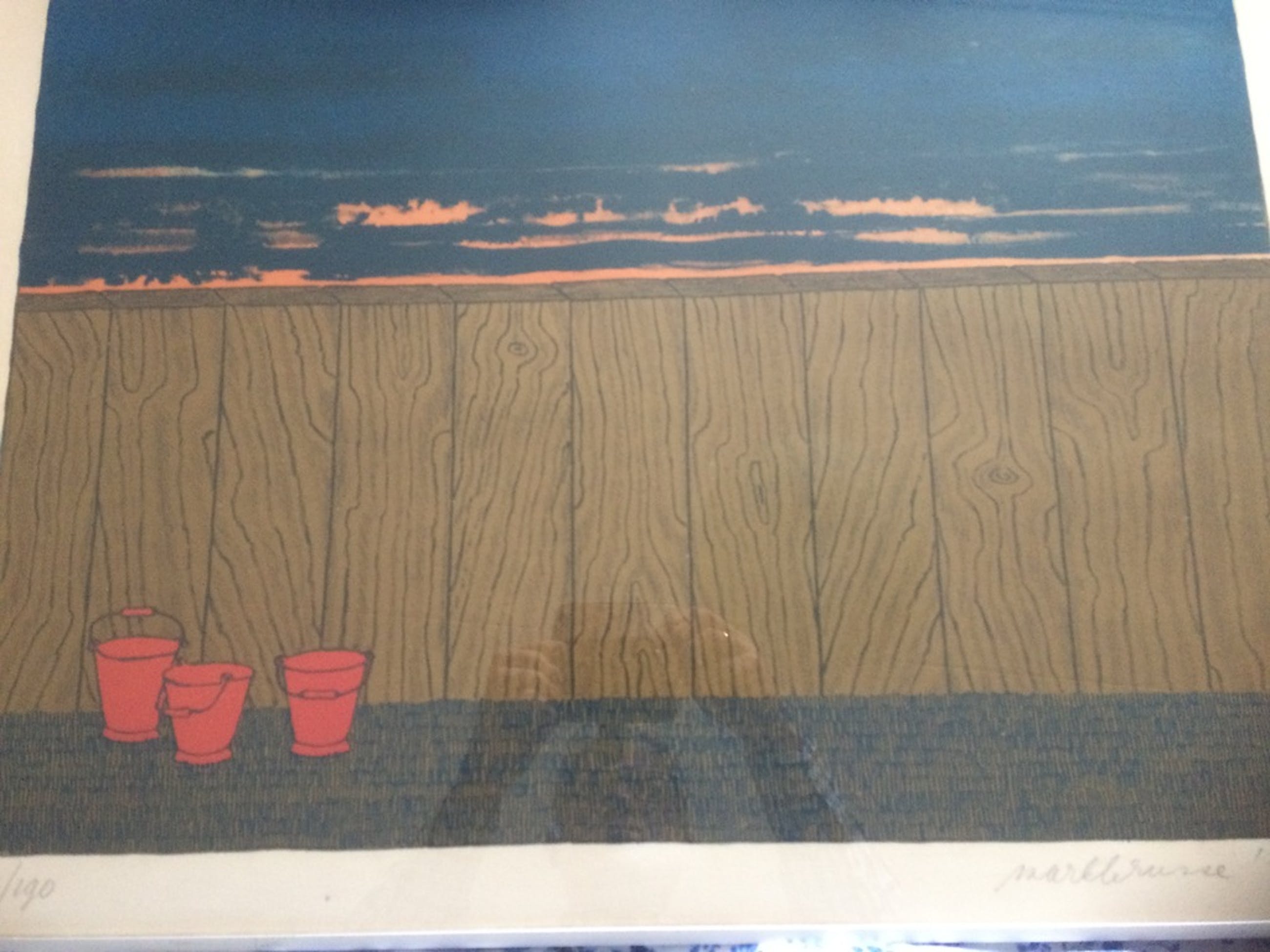litho 89/190 van mark brusse, drie emmers voor een schutting
