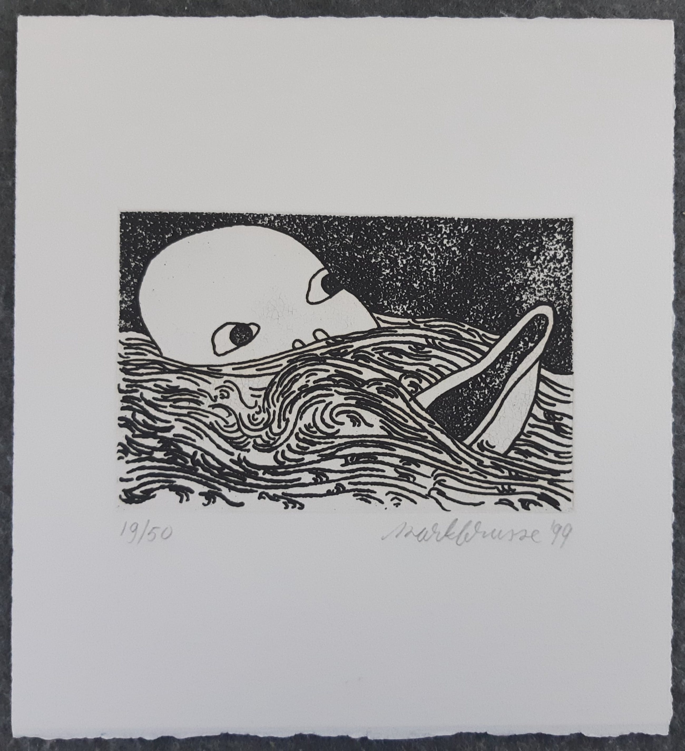 Ets van Mark Brusse op geschept papier. De afbeelding is 9,5 x 14,5 cm. Zie de laatste foto voor verdere informatie. Het werk kan zonder kosten worden opgehaald in Breda of op kosten van de koper aangetekend worden verzonden.