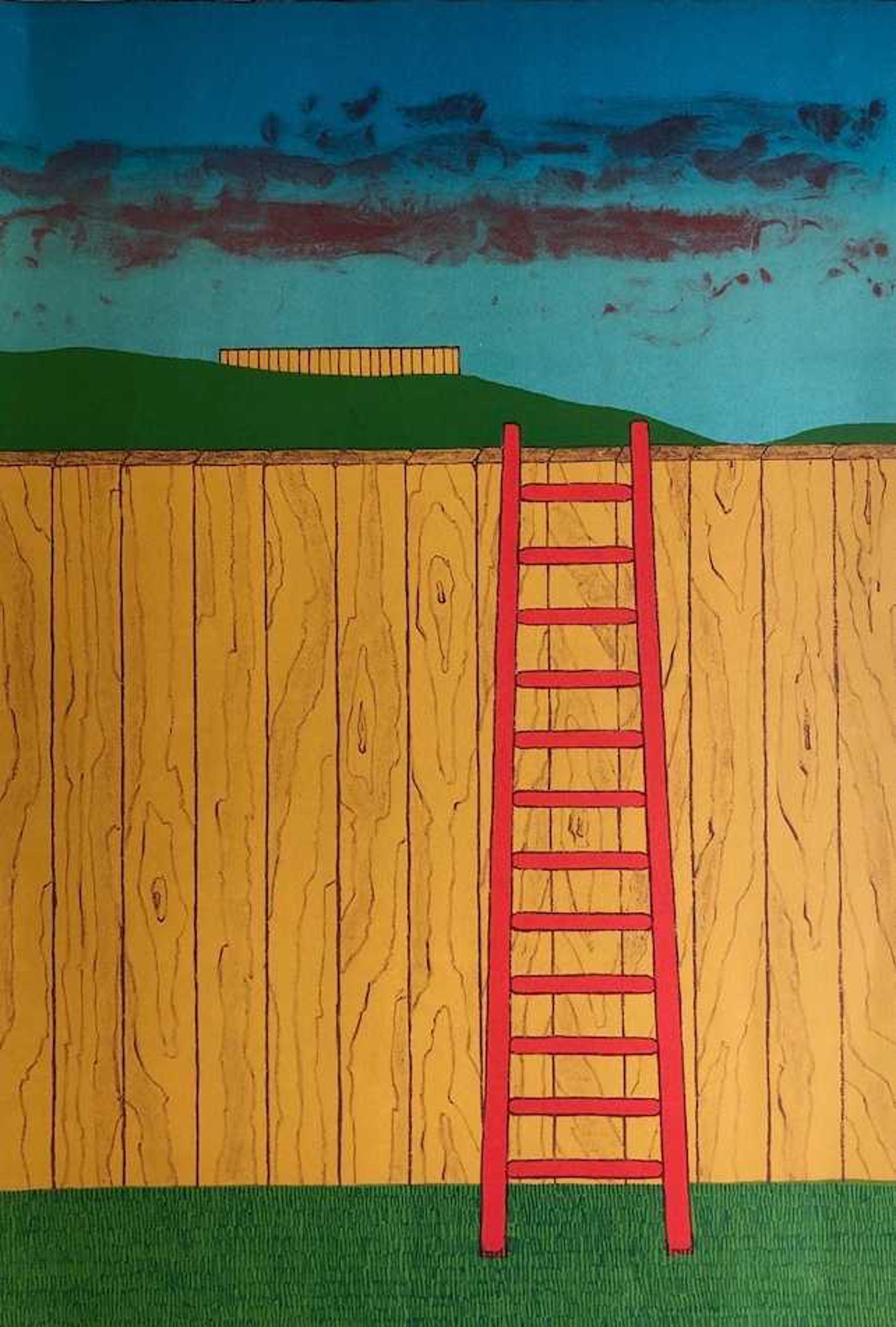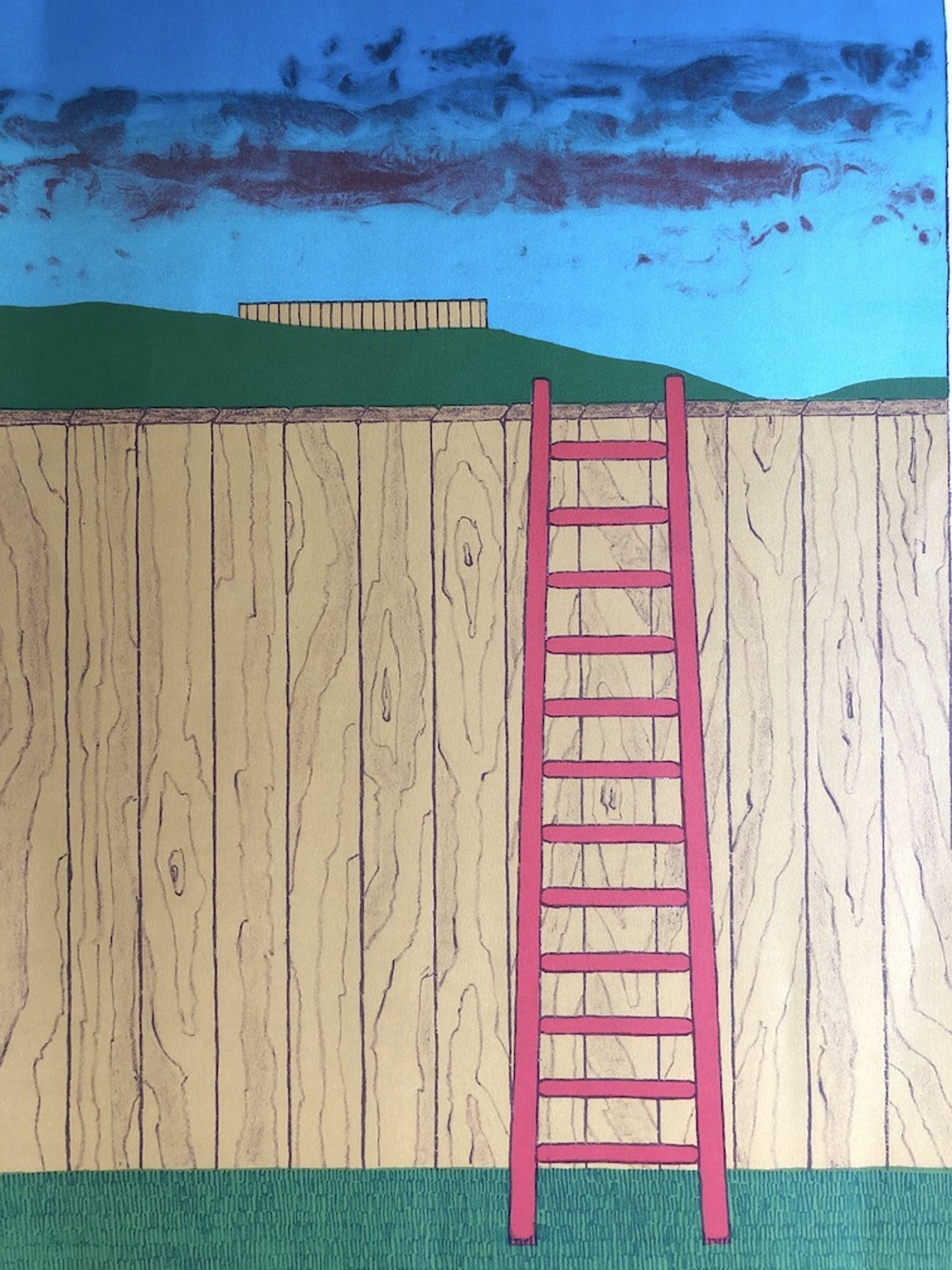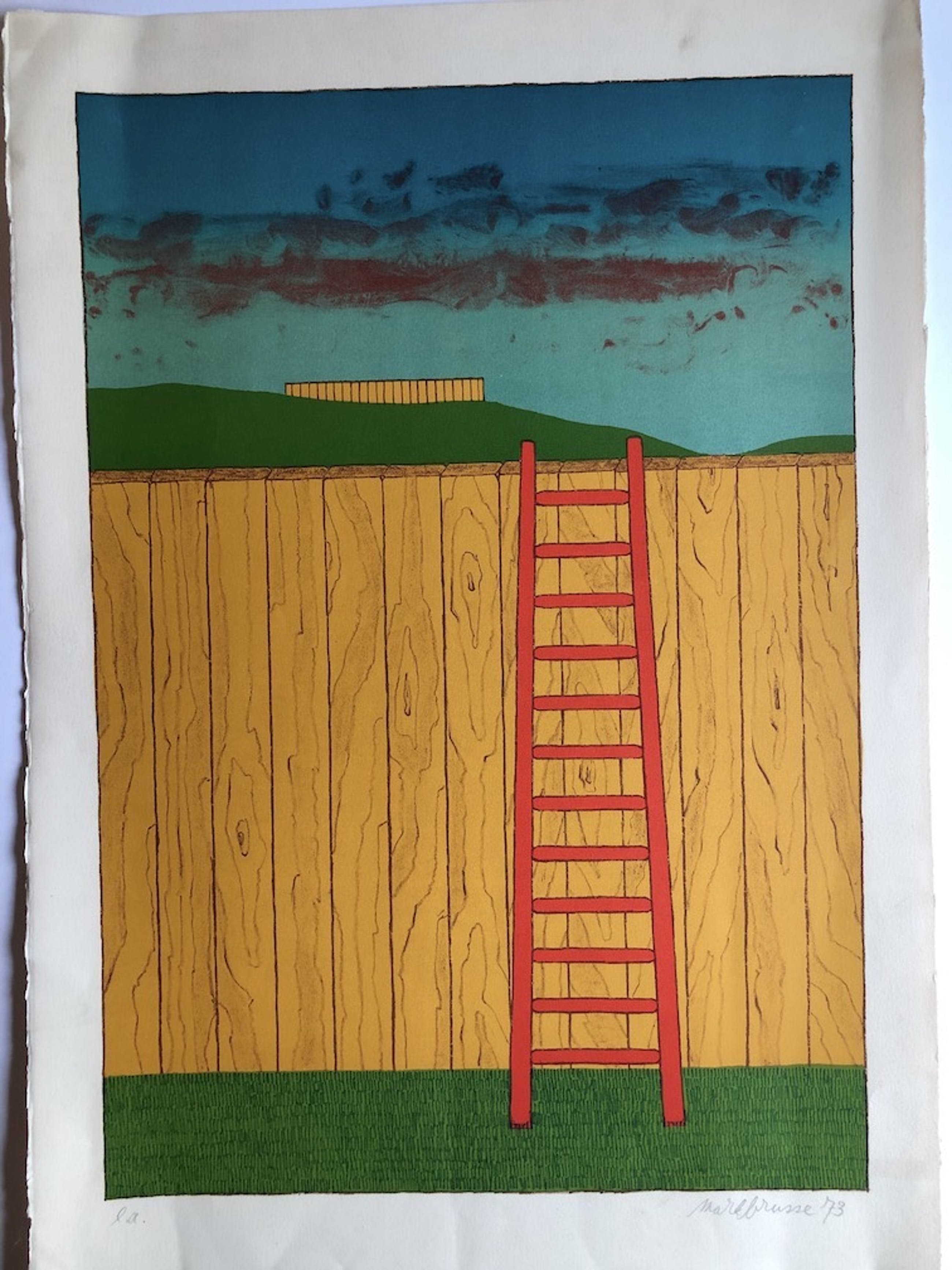AMS 6 Mark Brusse " Twee Schuttingen " Lithografie e.a. 1973 76 x 53 cm Licht vergeeld