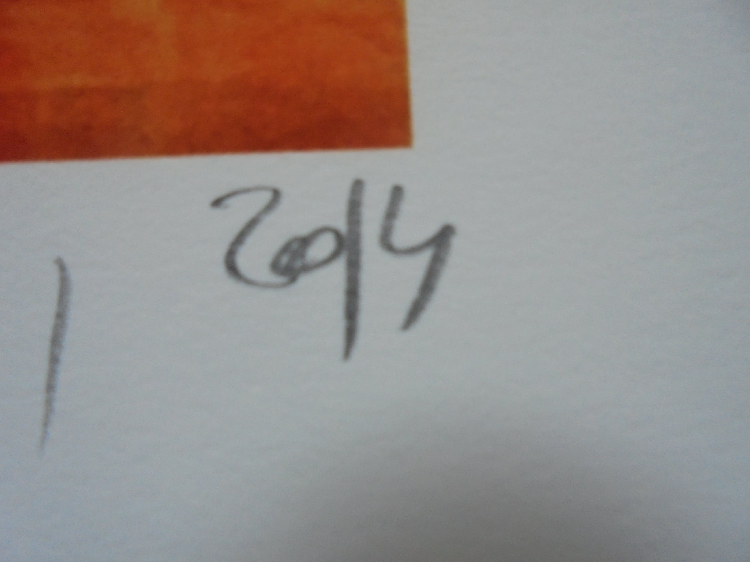 Het werk is in goede staat, steeds plat bewaard in een lade, nooit ingelijst.Er zijn wat gebruikssporen links en rechts op het witte, niet-bedrukte gedeelte (zie foto's).Deze worden volledig verborgen door een passe-partout.
