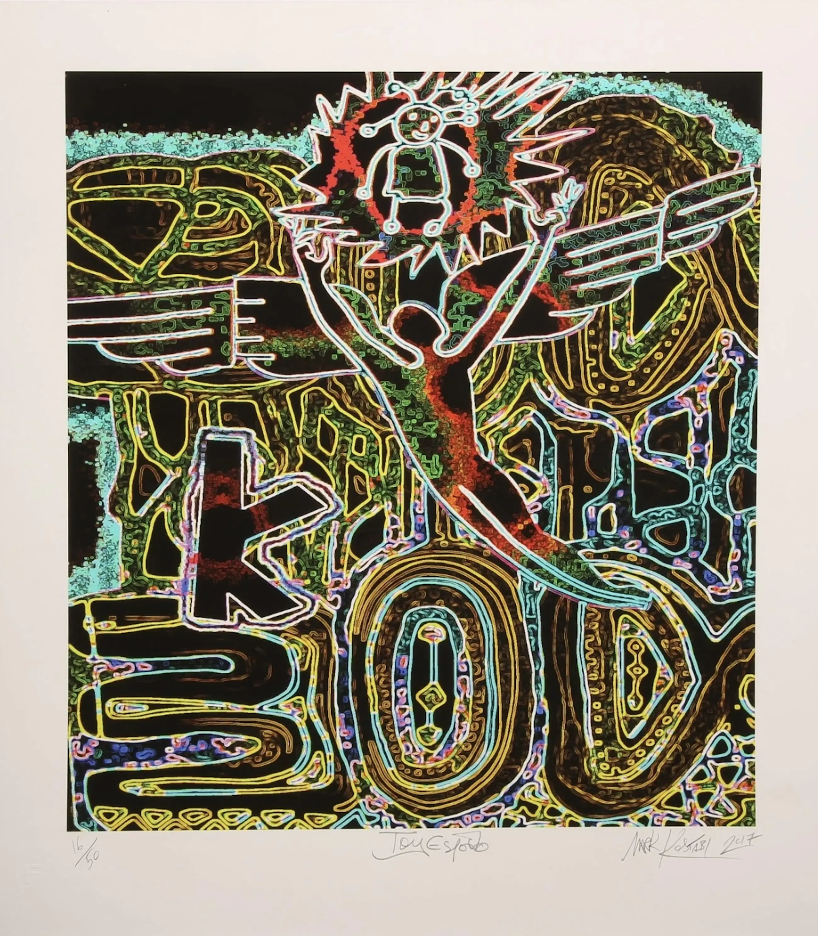 Mark Kostabi & Tony Esposito: “Devine Ecstacy”. Handgesigneerd en genummerd, hier 2/50. Gicleé op Hahnemühle Velvet handgeschept papier.